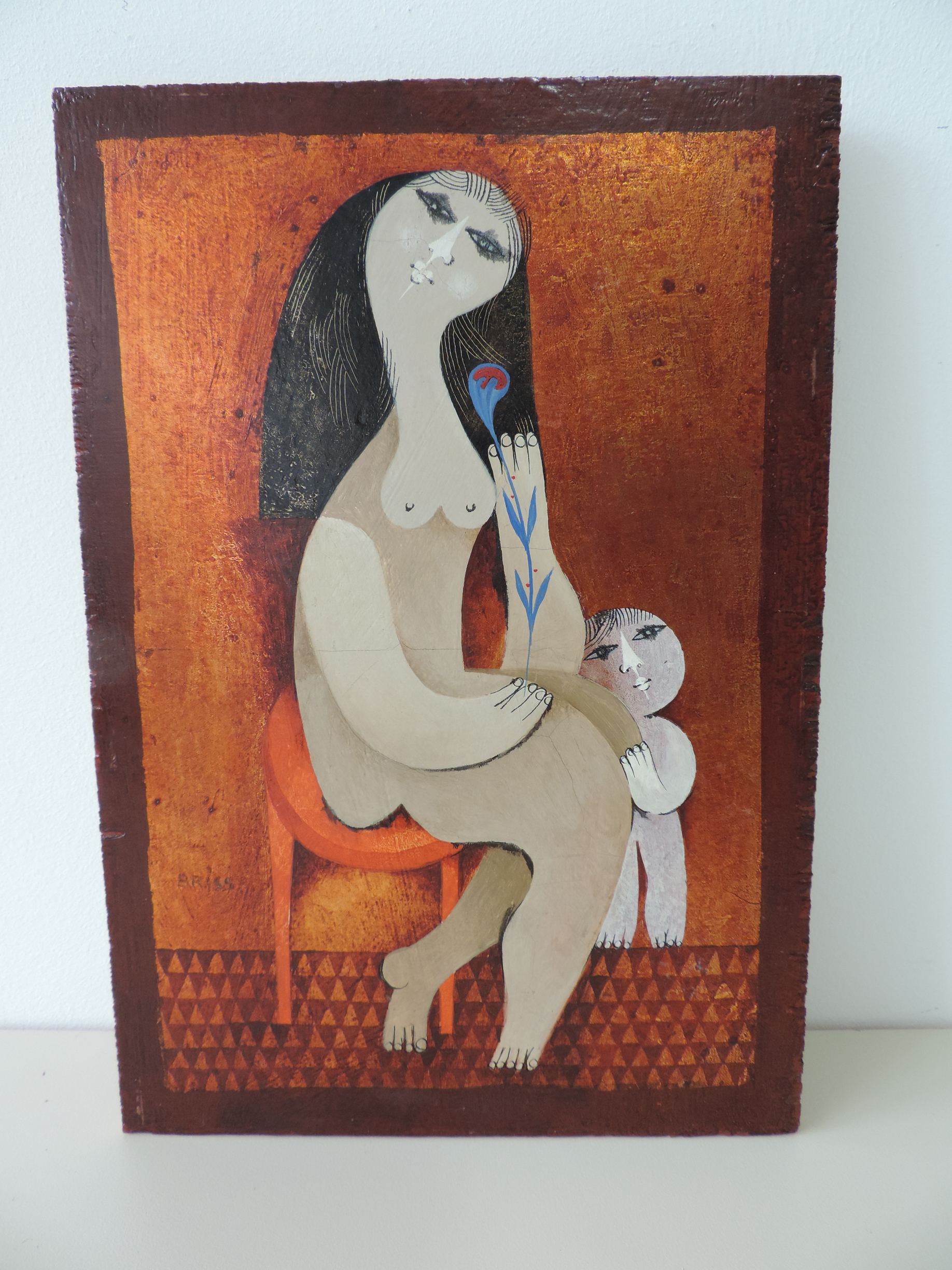 "Le tabouret rouge". Öl auf Sperrholz. Unten links signiert. Verso betitelt, nummeriert 549 sowie Etikett der Galerie Romanet, Paris. 35x24 cm.