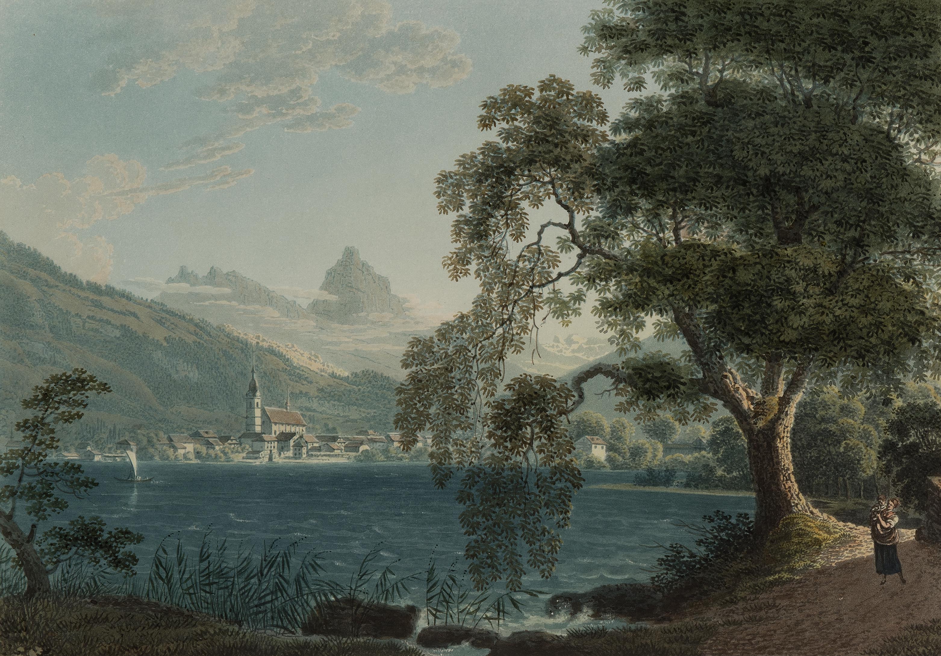"Vue d'Arth". Altkol. Aquatinta von F. Hegi, hrsg. v. Orell Füssli & Co., um 1819. 19,2x27,4 cm. Gerahmt.
