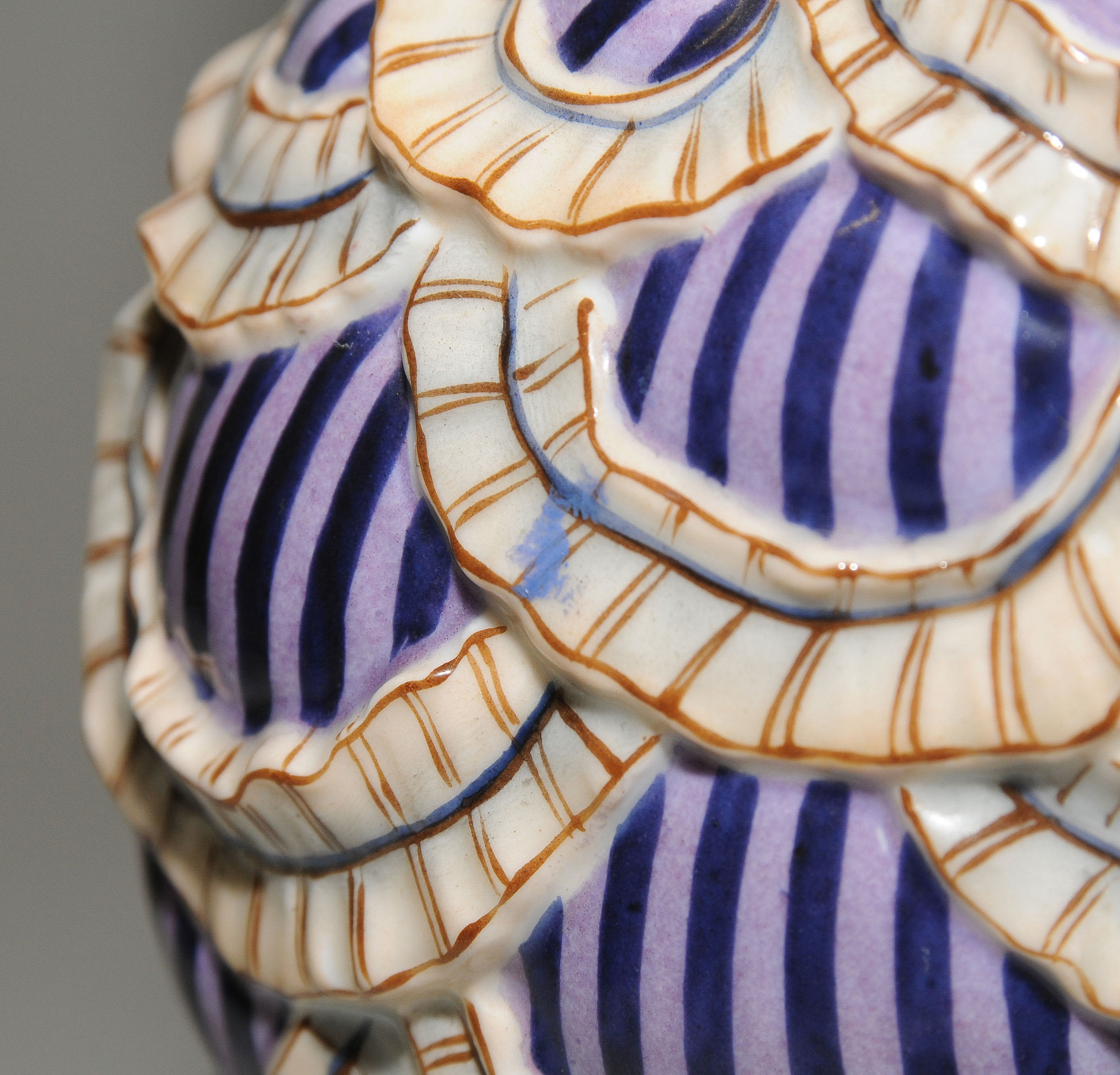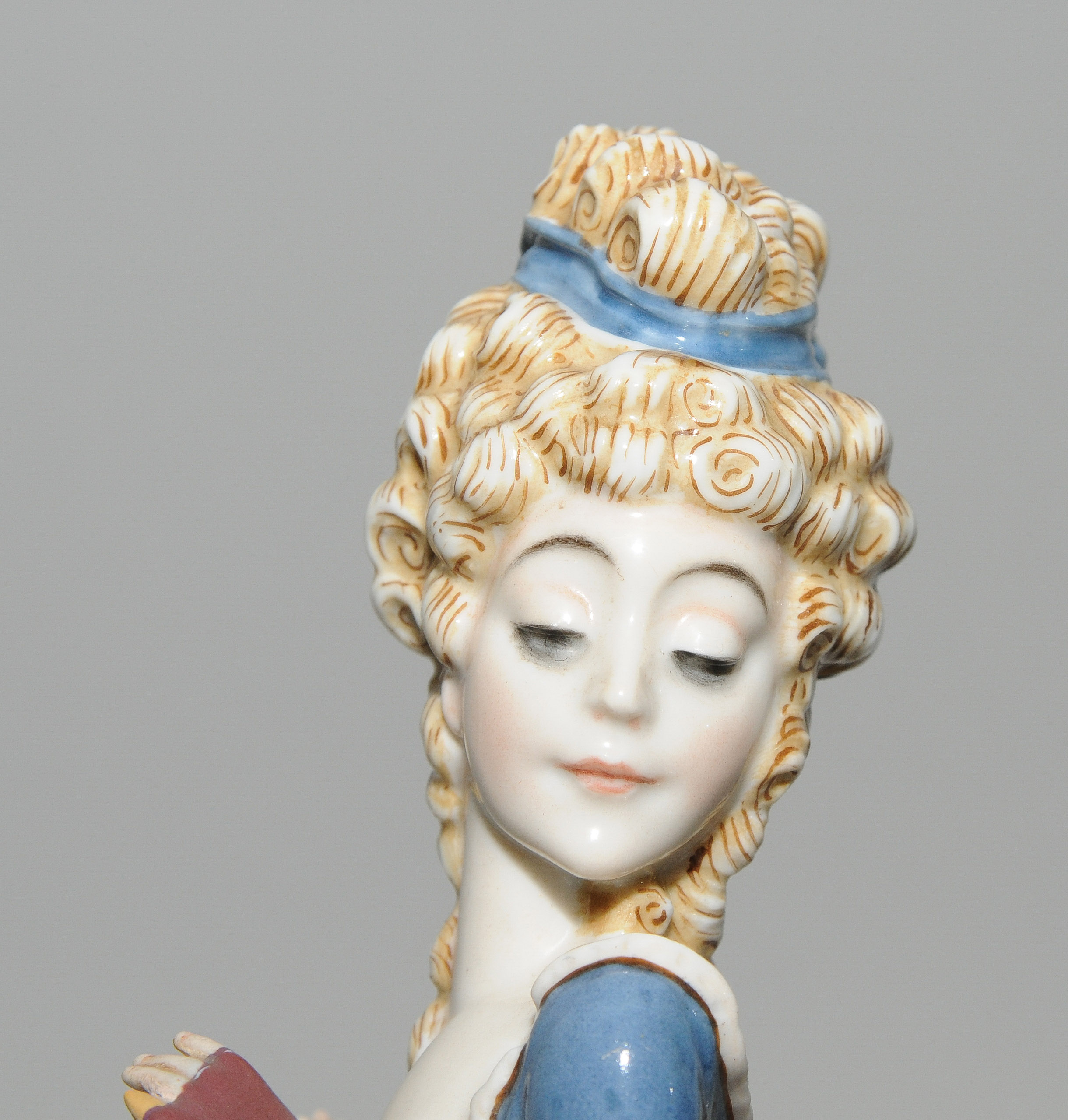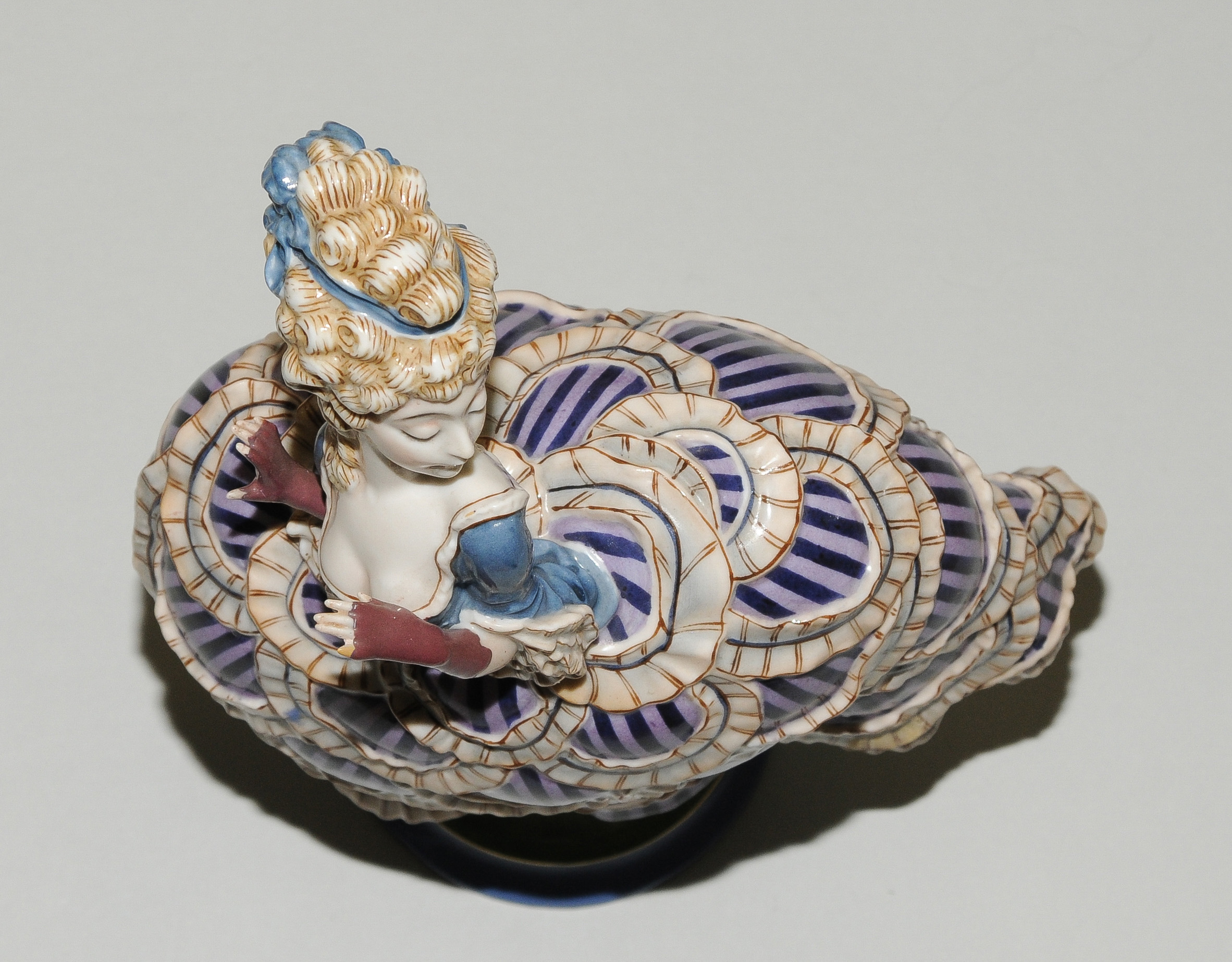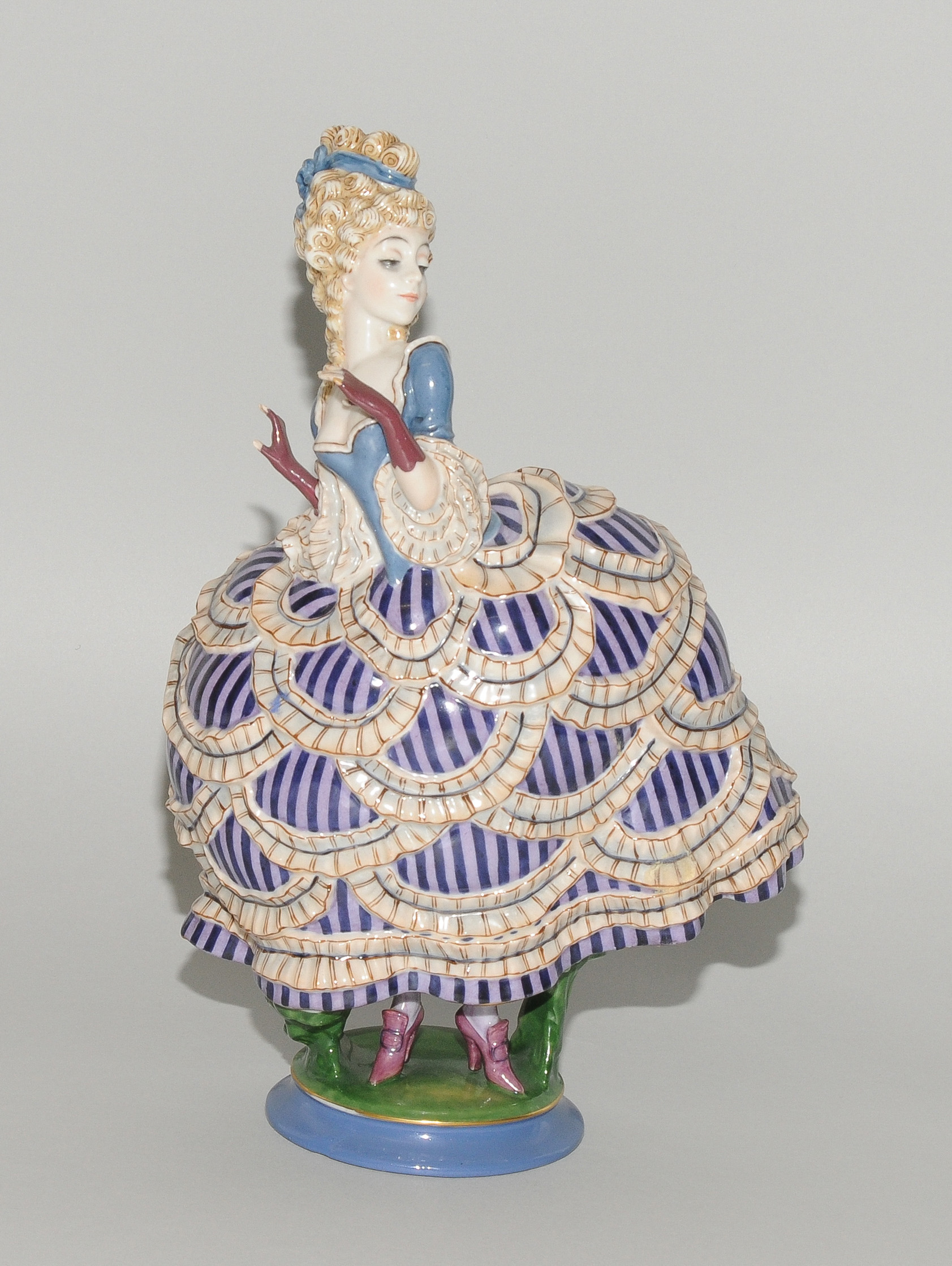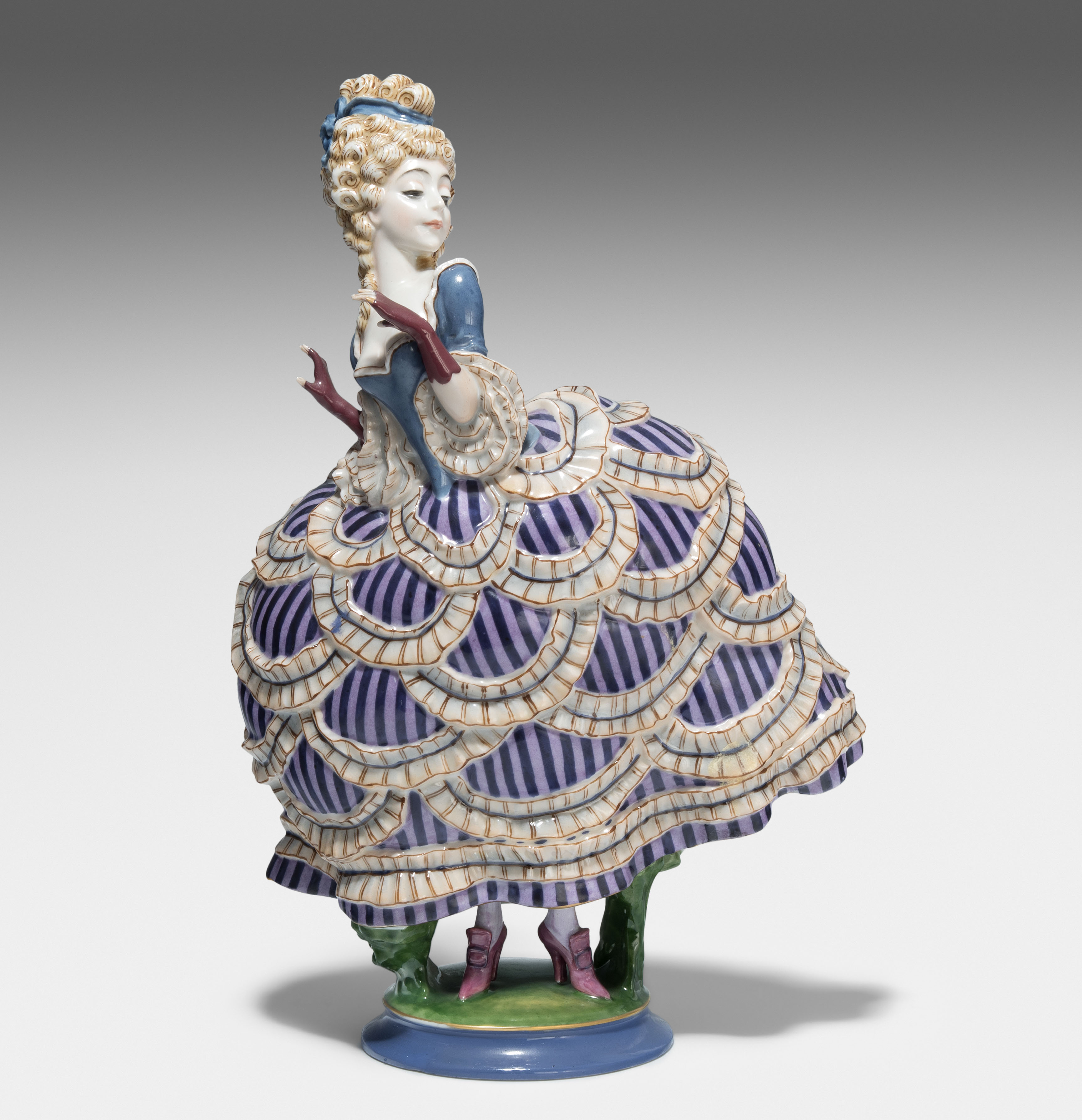 Um 1921. Kunstabteilung Werk Selb. "Pikiert". Modell von Constantin Holzer-Defanti 1921. Porzellan, Aufglasurbemalung. Bezeichnet: Grüner Firmenstempel, Malersignatur ... Schneider. H 27 cm.