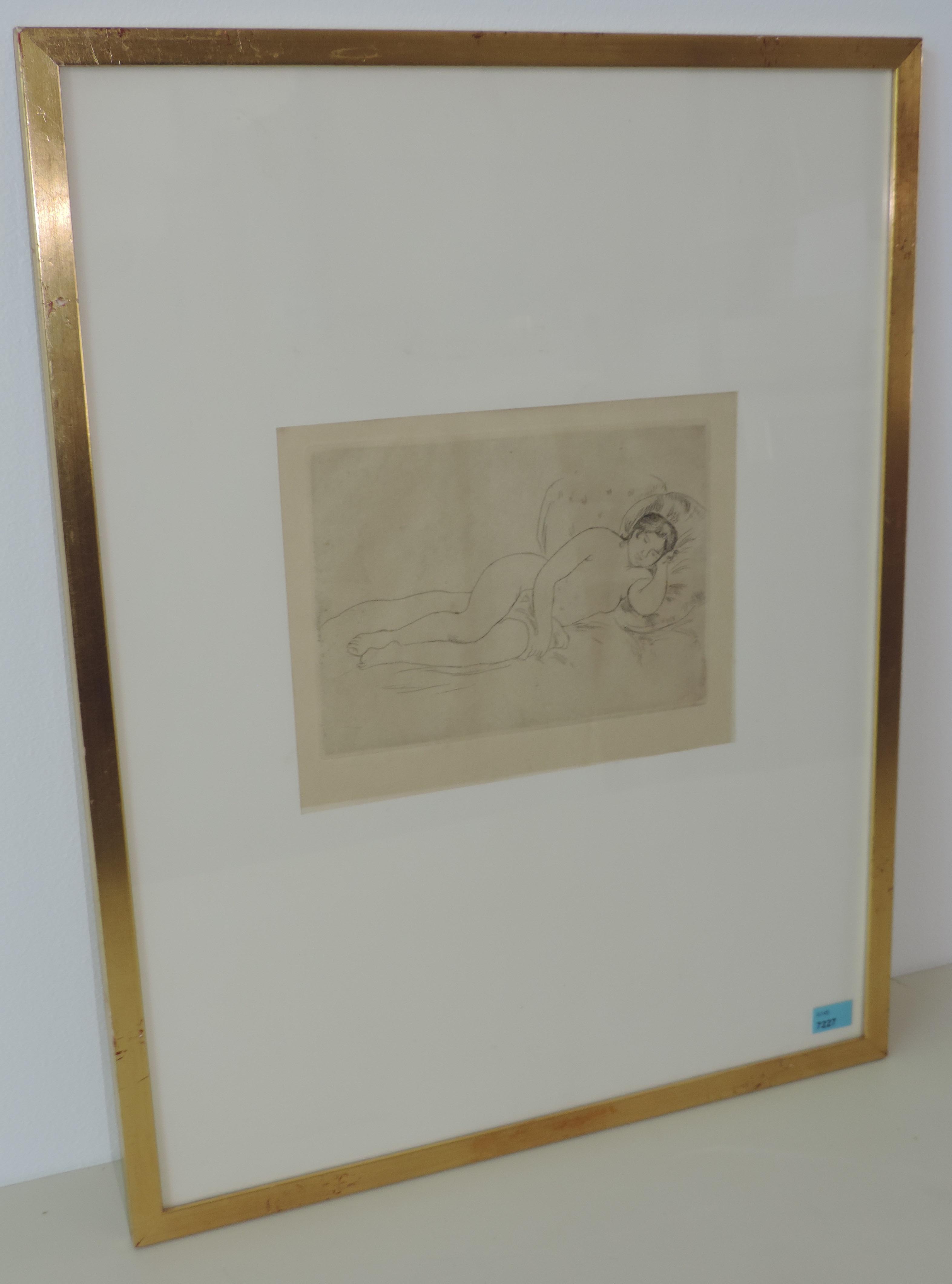 "Femme nue couchée (tournée à droite), 2e planche". ca. 1906. Radierung. Plattengrösse 13,9x19,6 cm. Gerahmt.