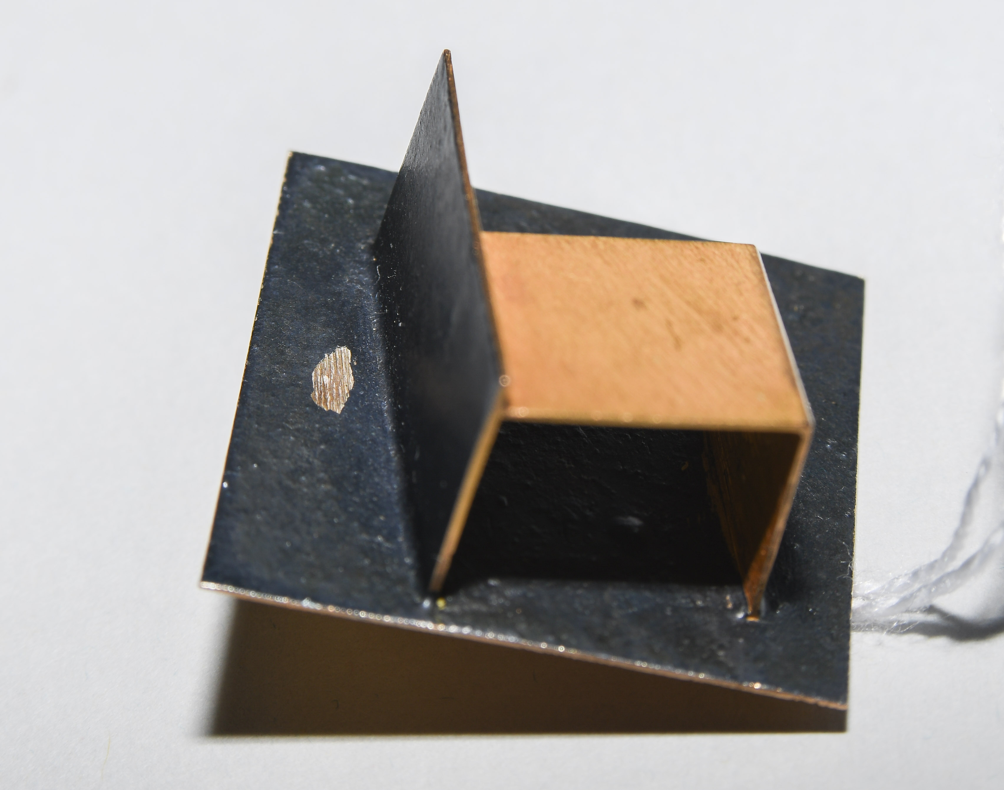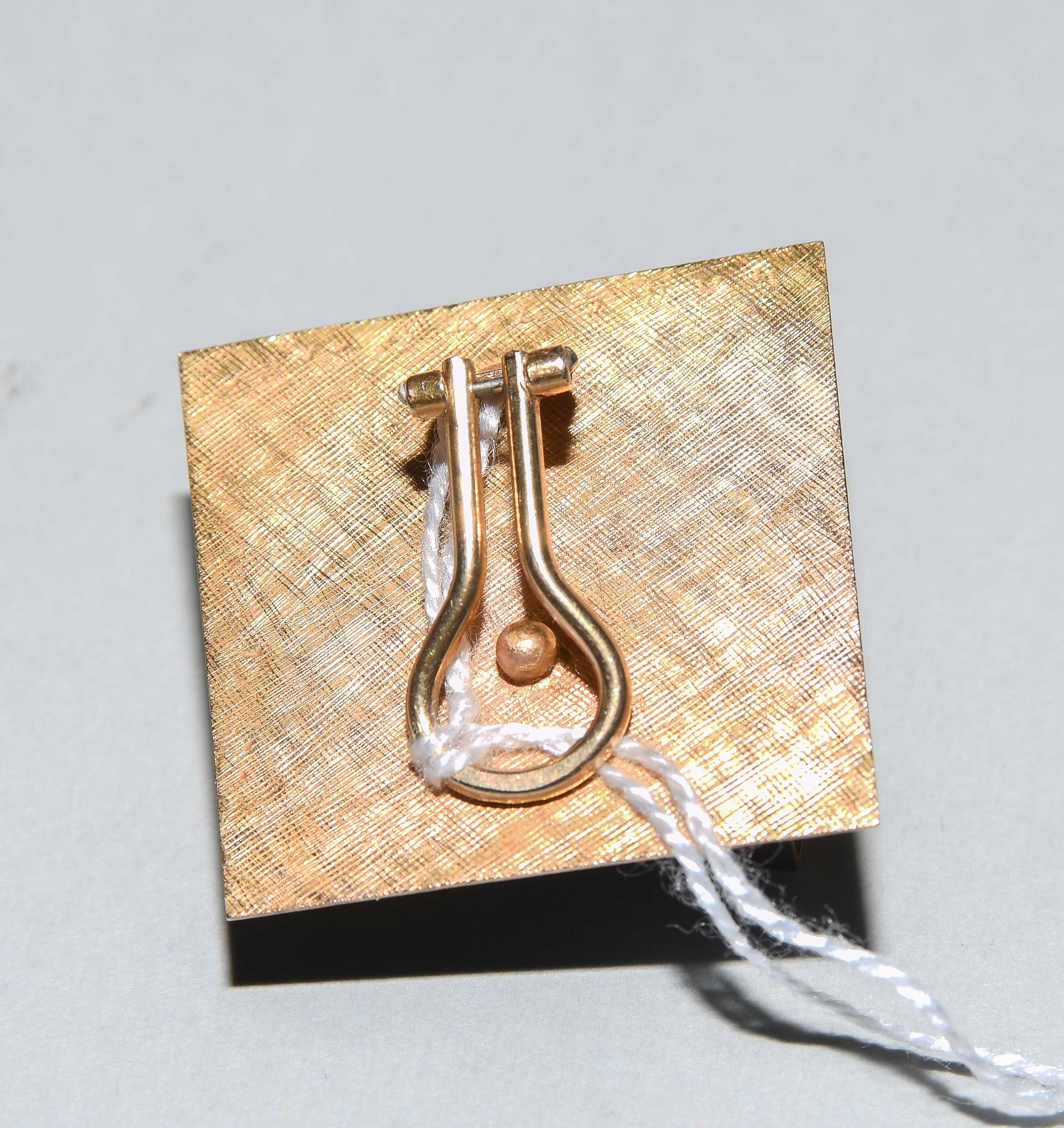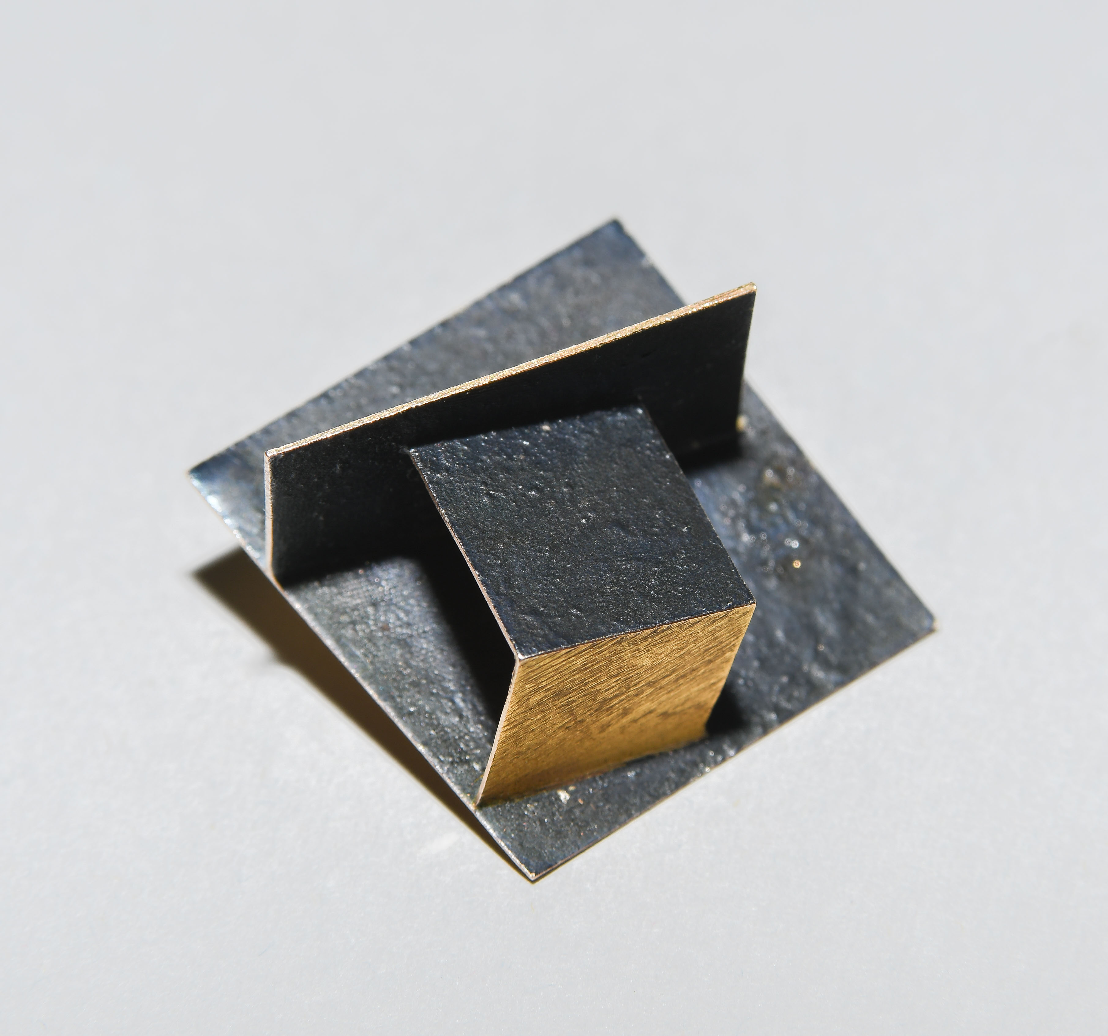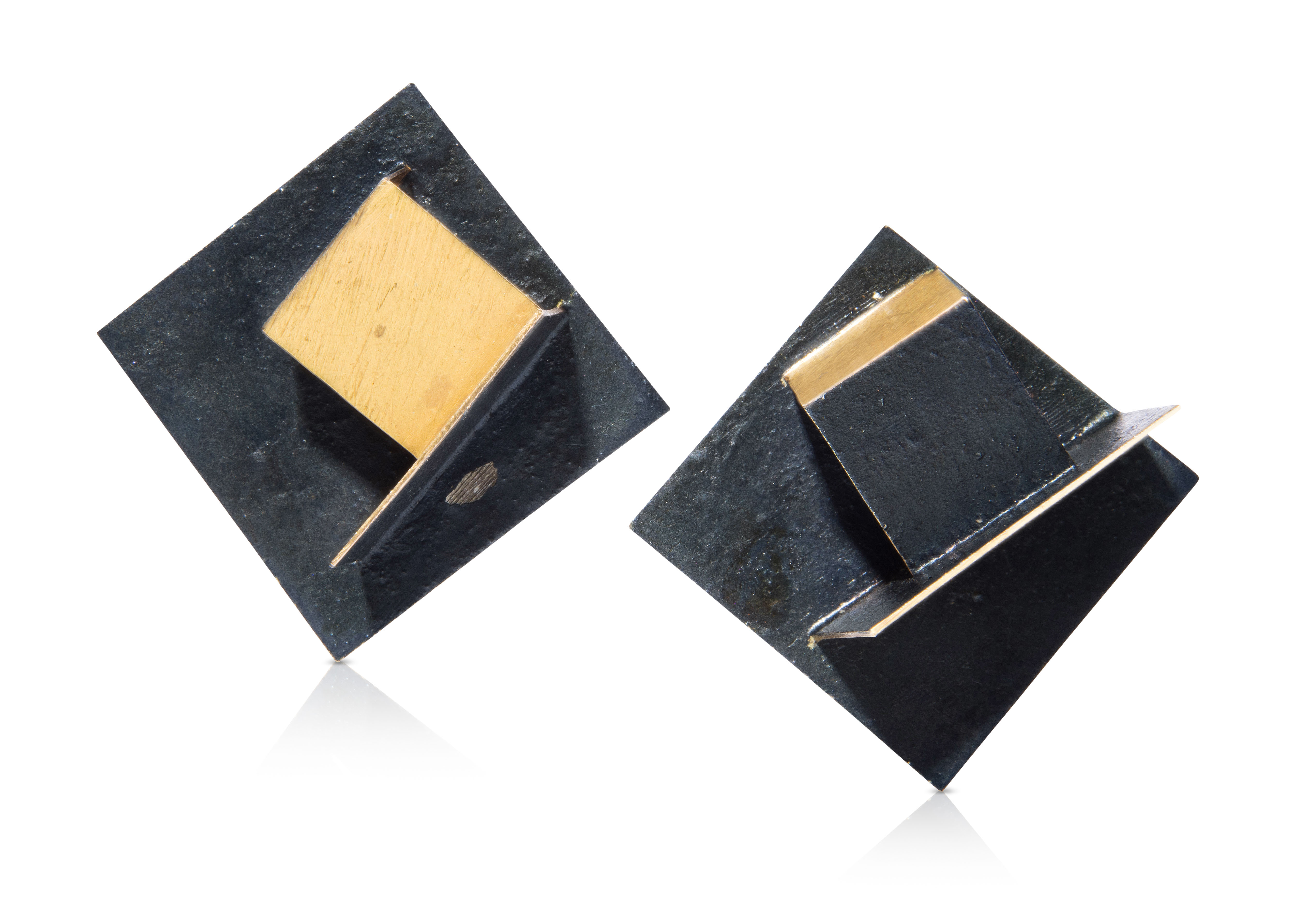 (geb. 1947 in Padua) Arquà Petrarca, um 1990. Signiert. 750 Gold. Geometrisch aufgebaut, mit Niello und fein mattierten Goldflächen. 2,5x2,5 cm, 17,4 g.