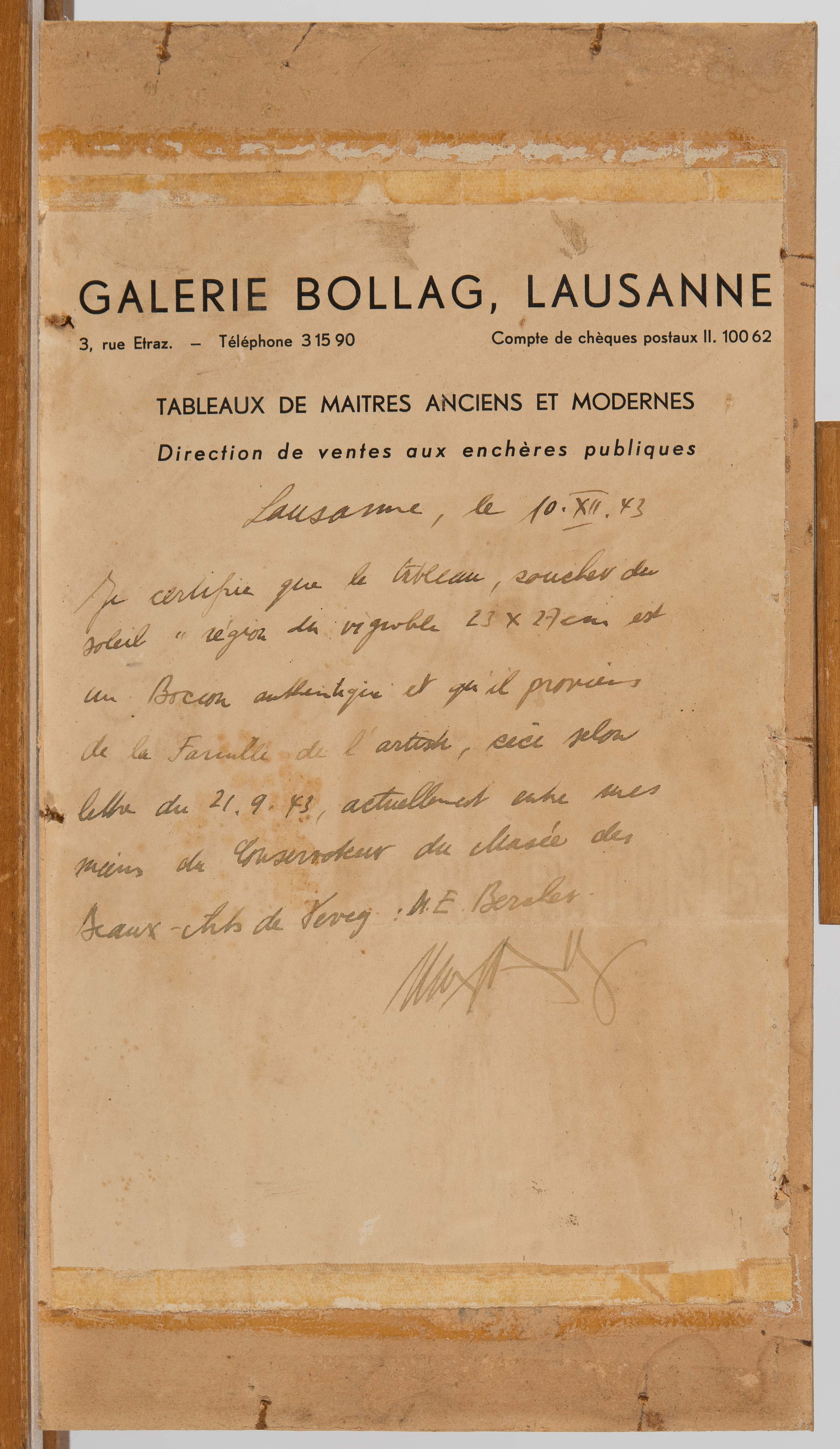 Michel Reymondin bestätigt mit seinem Gutachten vom 19. Mai 2017, dass er das vorliegende Gemälde unter der No. 1116 in den Werkkatalog aufnimmt.