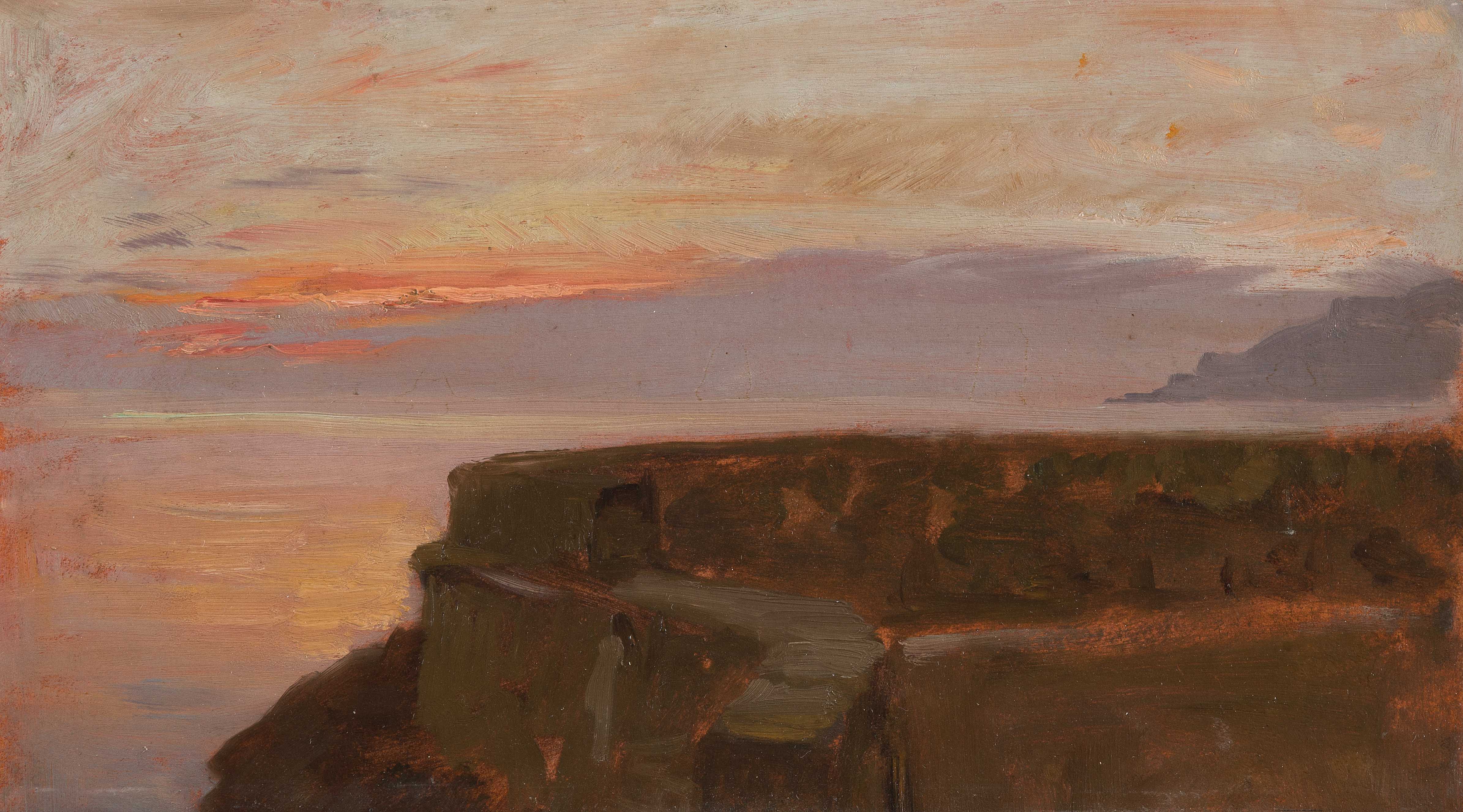 "Coucher de soleil sur le Léman", 1884. Ölstudie auf Papier über Karton. 15,7x27,8 cm.