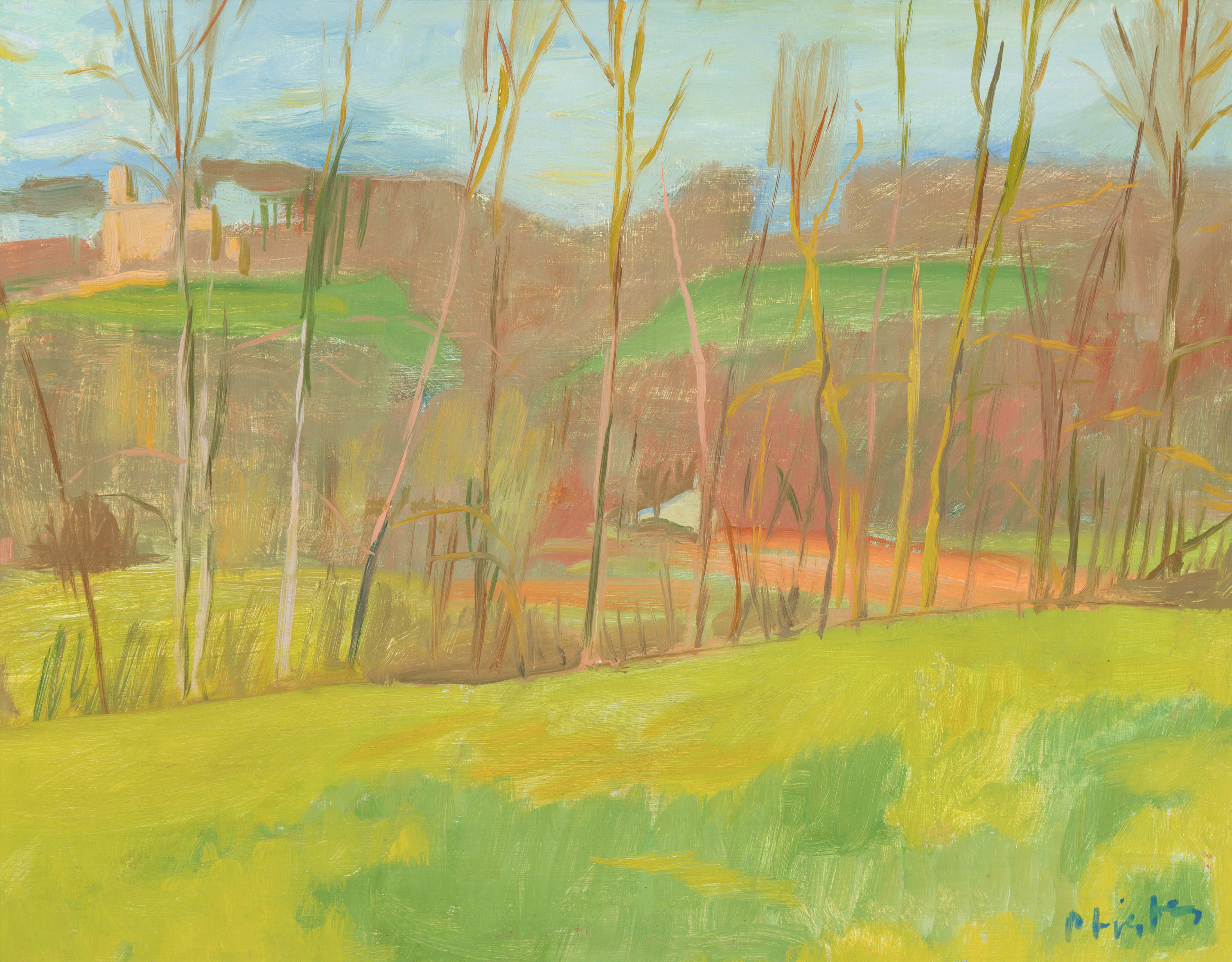 Vorfühling bei Küsnacht. Öl auf Hartfaserplatte. Unten rechts signiert. 36,5x47 cm.