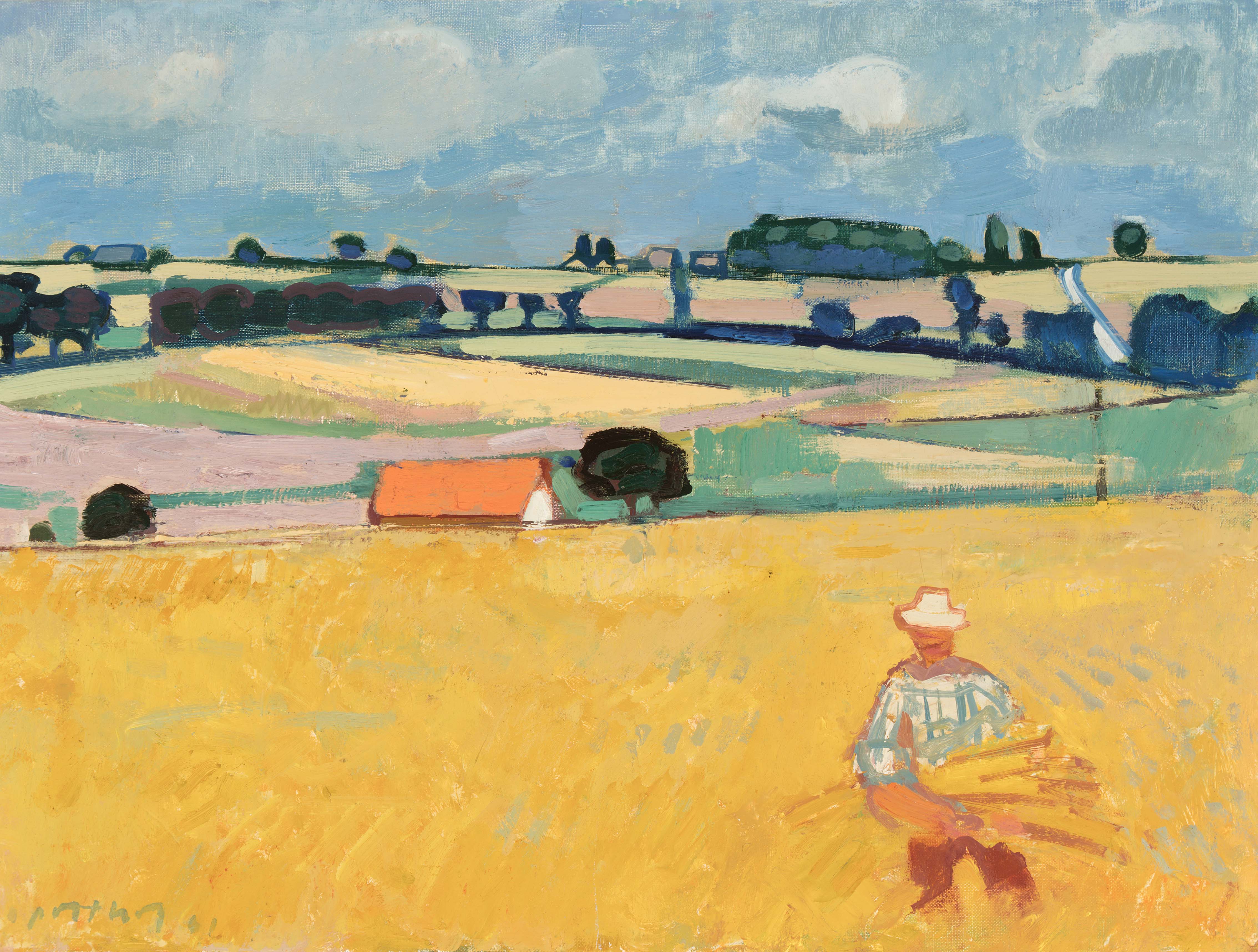 "Sommer im Waadtland", 1961. Öl auf Leinwand. Unten links signiert und datiert, verso auf Keilrahmen bezeichnet. 45x61 cm.