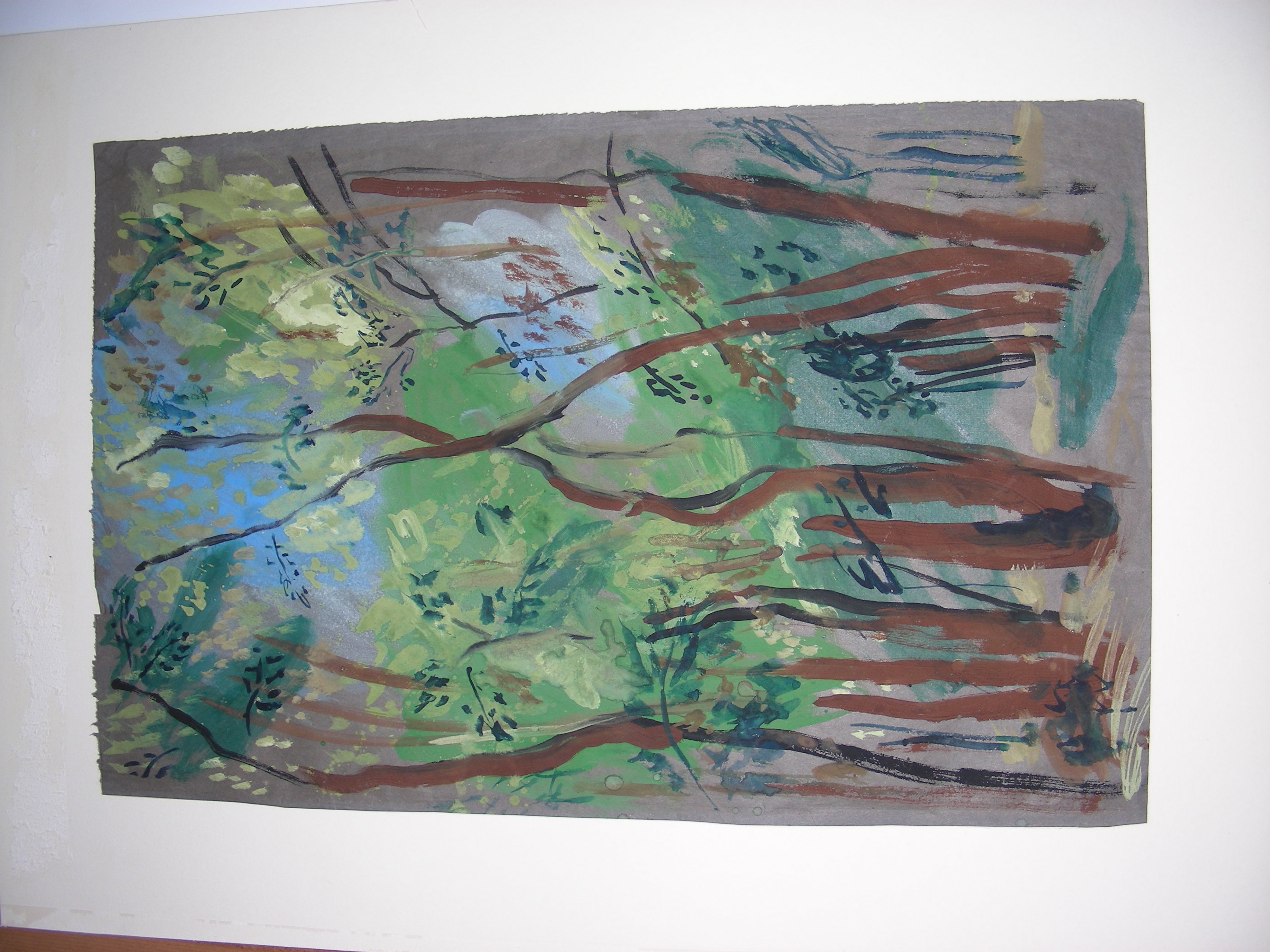 Luxemburgische Gärten in Paris. Gouache auf dunklem Papier. Verso mit Stempelsignatur und nummeriert: "169". Blattgrösse 49,7x32,2 cm. Gerahmt. -Blatt mit Knittern und leichtem Farbverlust. Ränder und Ecken leicht bestossen. Verso am rechten Rand an Rückkarton montiert.