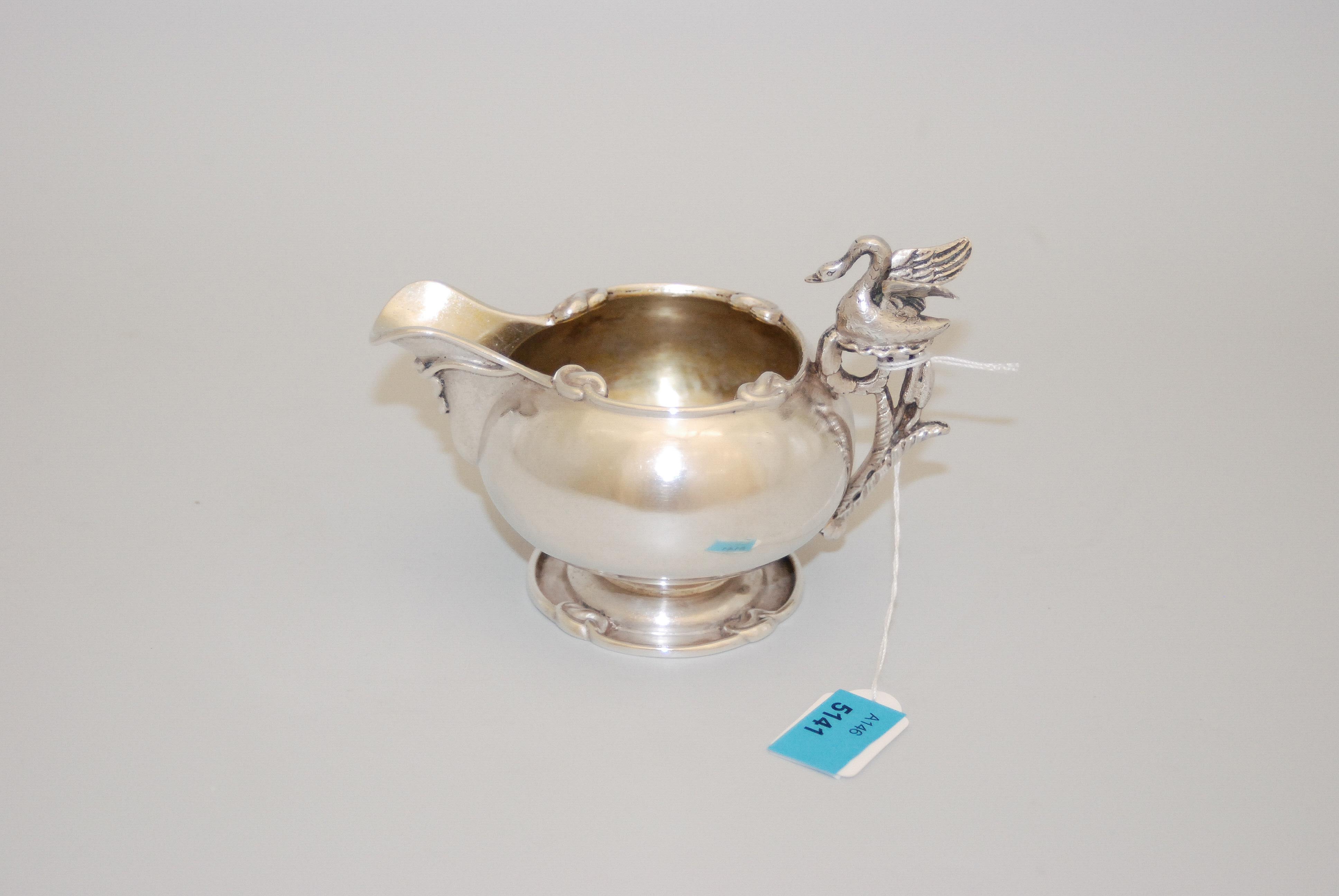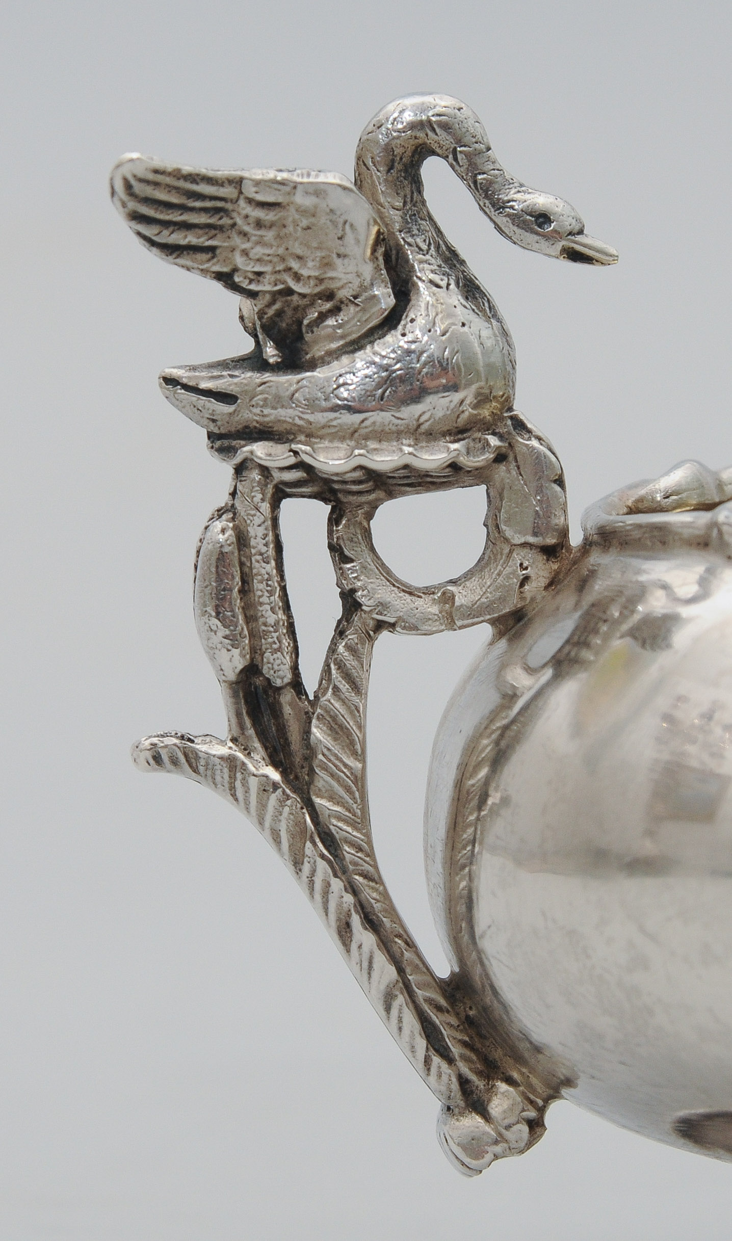 Polen, um 1900. Silber. Meistermarke Karol Filip Malcz. Bauchige Form über eingezogenem Fuss, Henkel mit Schwanen-Dekor. Gemarkt, Feingehalt 875. H 8 cm, ca. 158 g.