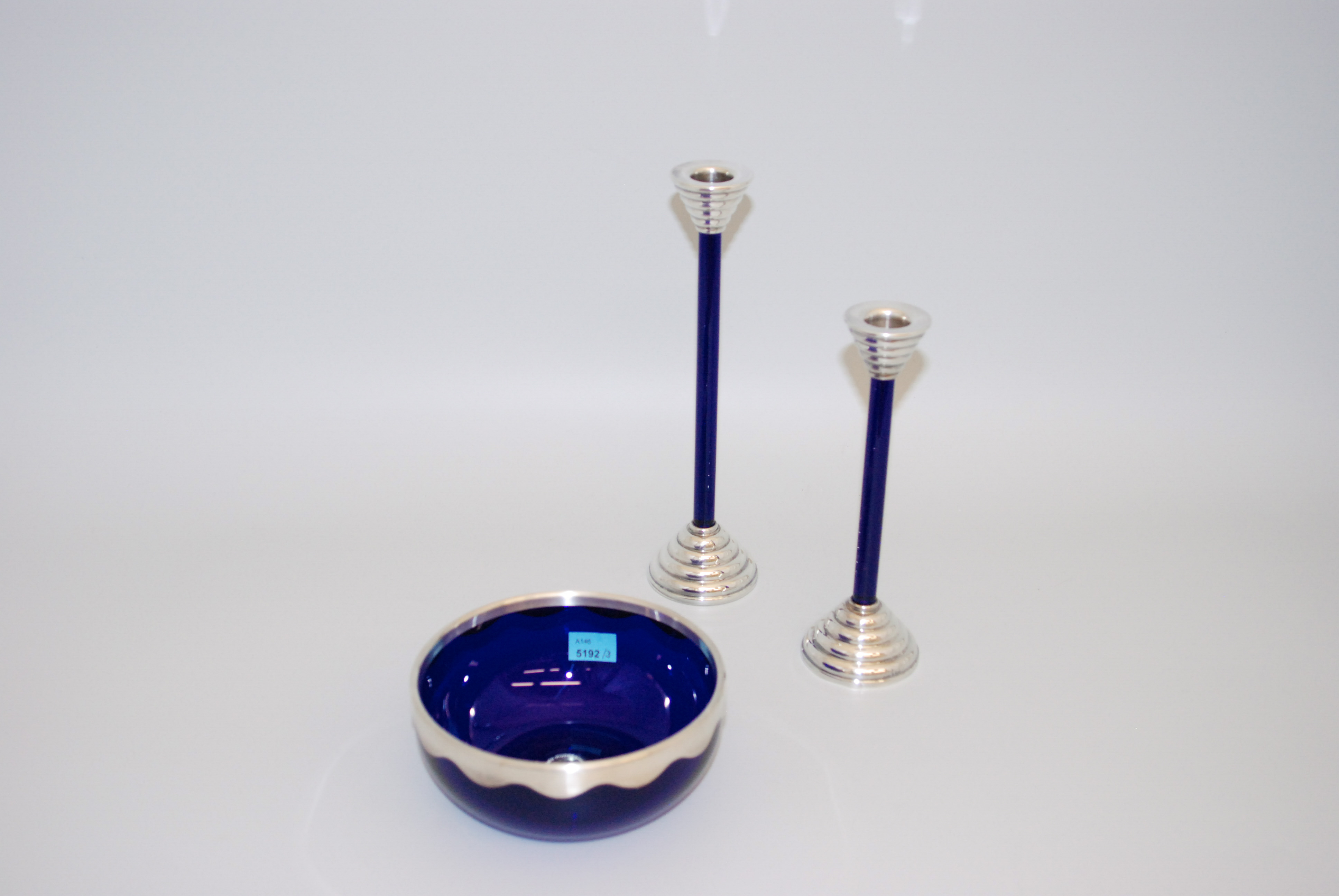 Italien/Murano, 20.Jh. Cleto munari. Blaues Glas mit Silbermontierung. Gemarkt, Feingehalt 925. D 15, H 25 und 25 cm.