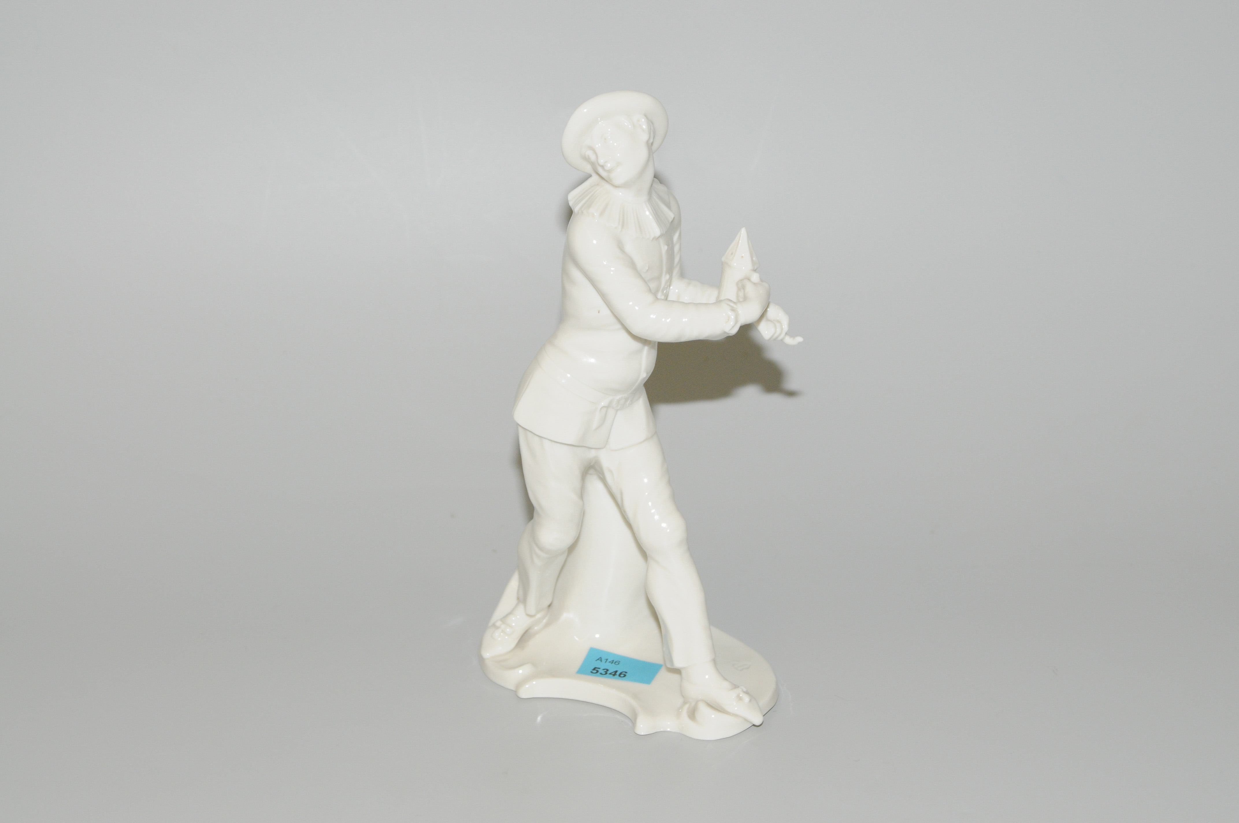 Nymphenburg, 20.Jh. Modell von Franz Anton Bustelli. Porzellan weiss, glasiert. Pierrot aus der Commedia dell`arte. Modell-Nummer 54. Prägemarke "Rautenschild". H 17,5 cm.