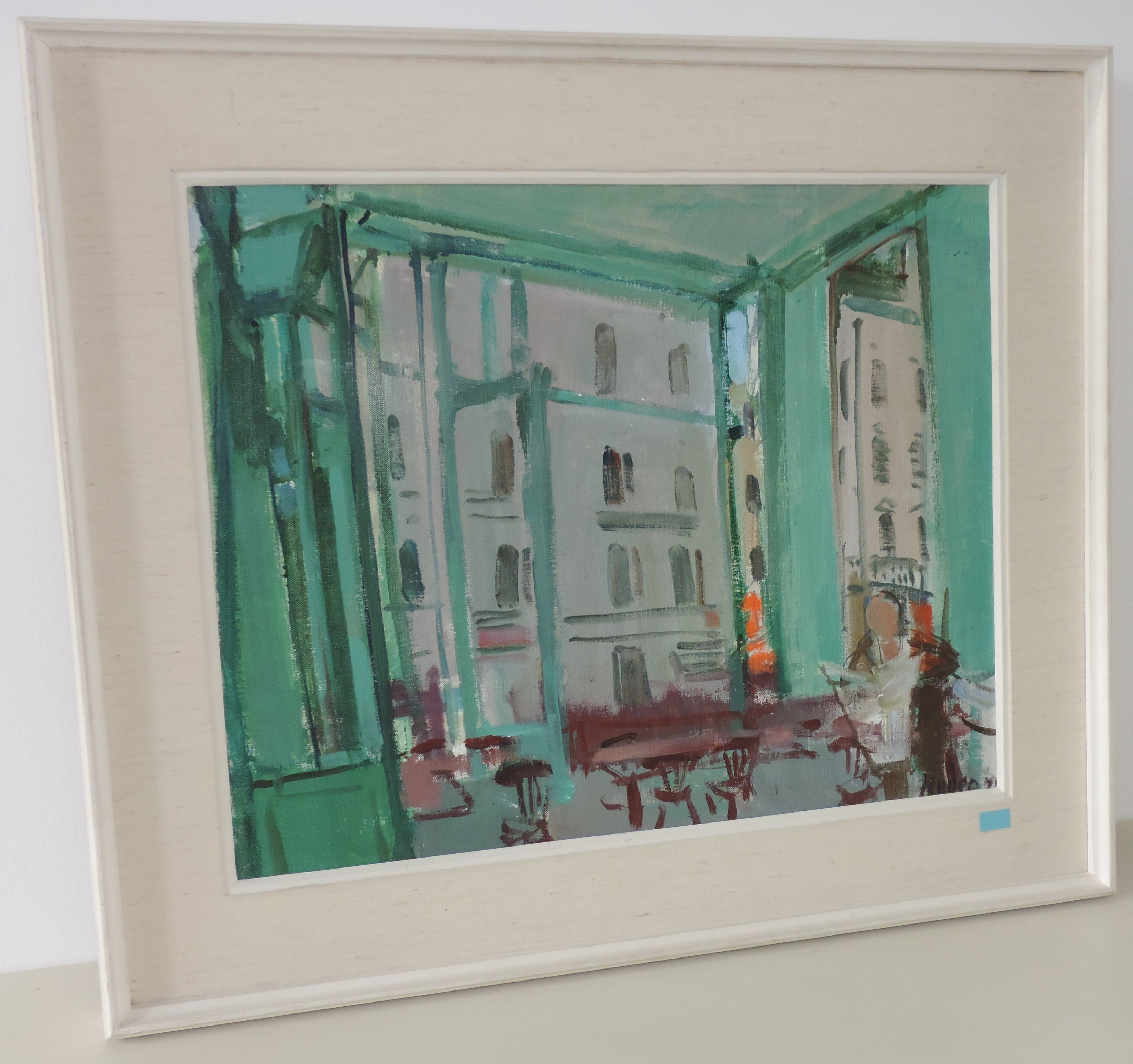 Pariser Bistro, 197(8?). Öl auf Leinwand. Unten rechts signiert und schwer lesbar datiert. 46x55 cm.