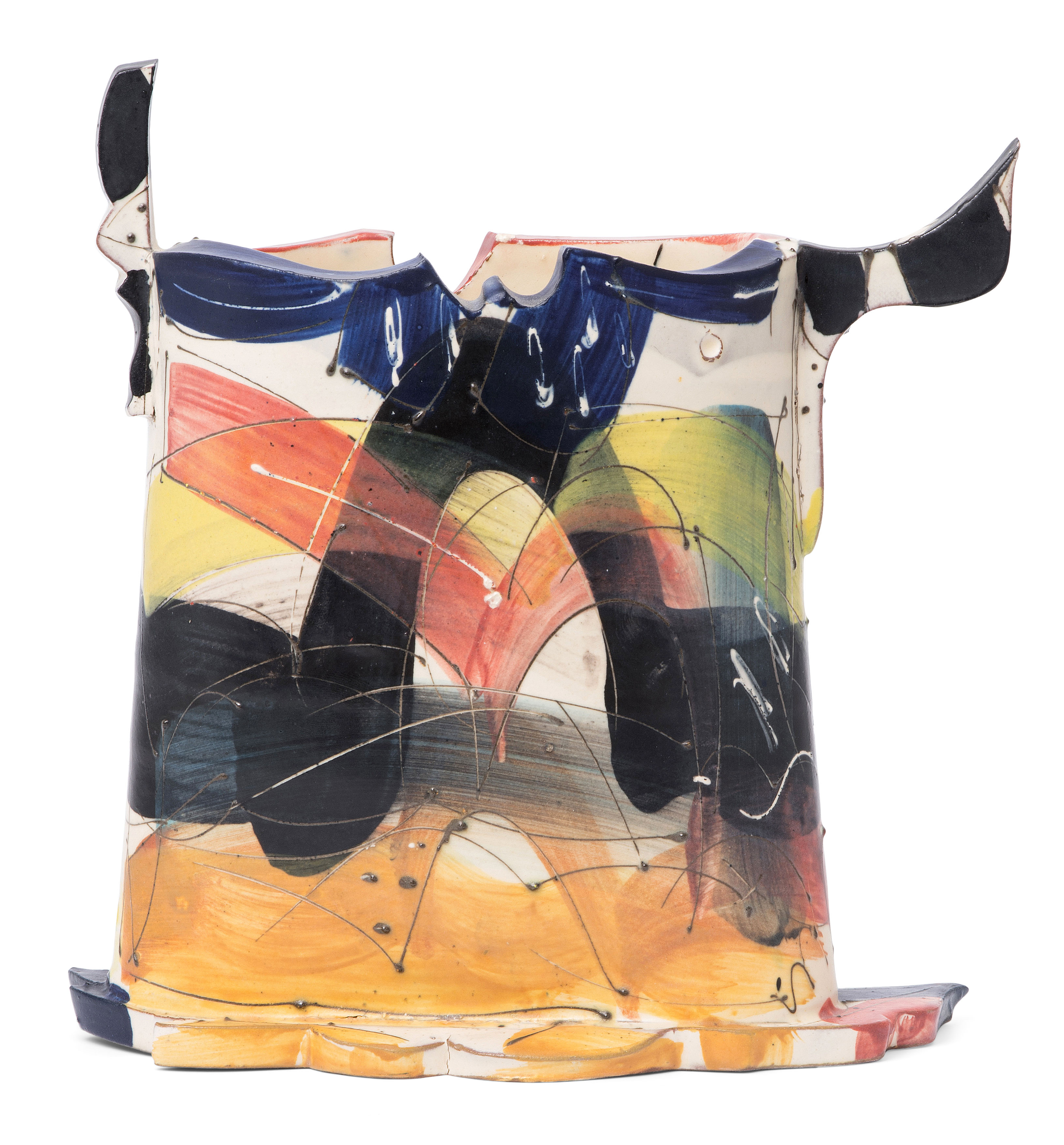 Keramik, bemalt. Bezeichnet: Dm. H 23 cm.