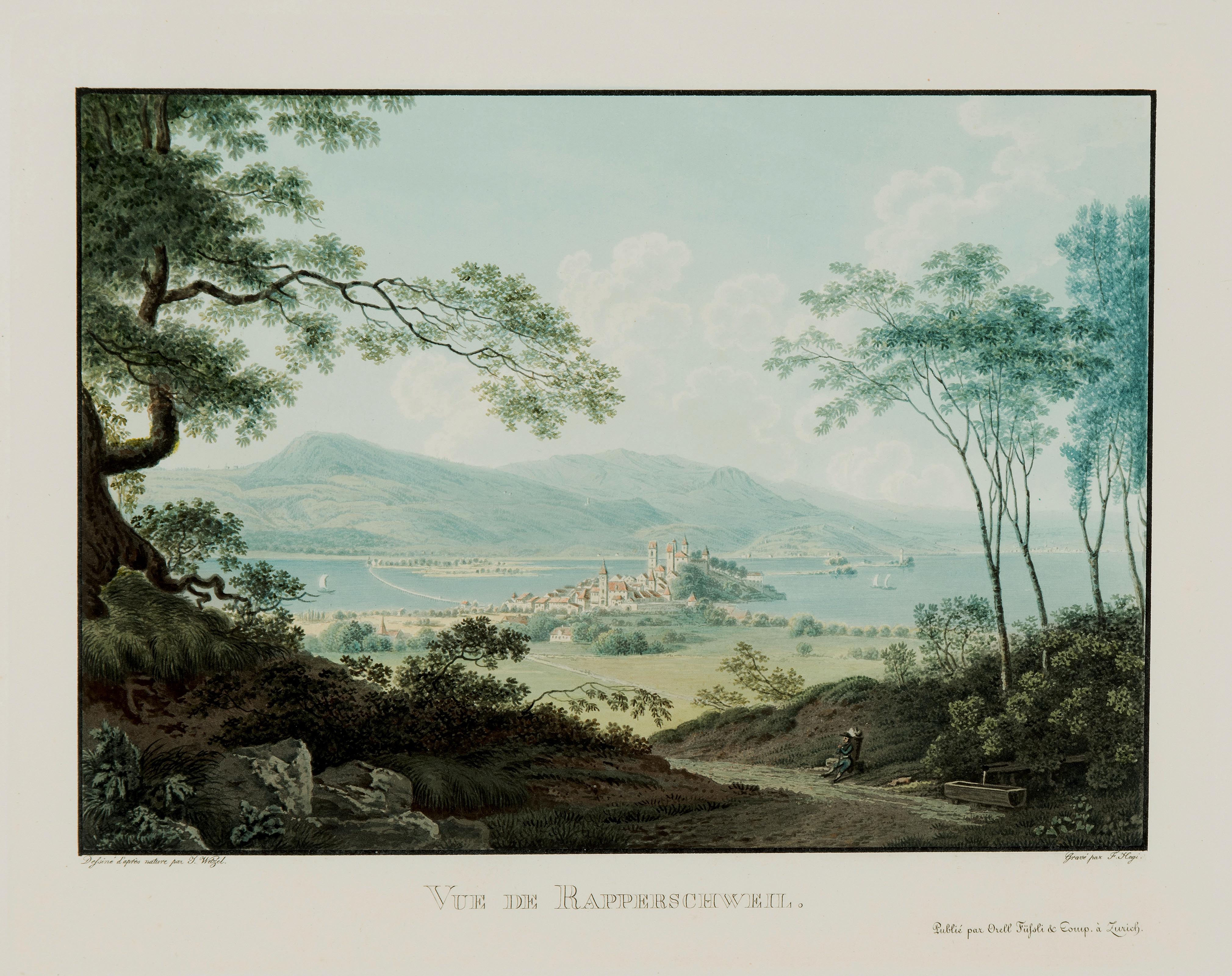"Vue de Rapperschweil". Altkol. Aquatinta von F. Hegi. Hrsg. v. Orell Füssli & Comp., 1819. 19,3x27,6 cm. Gerahmt.
