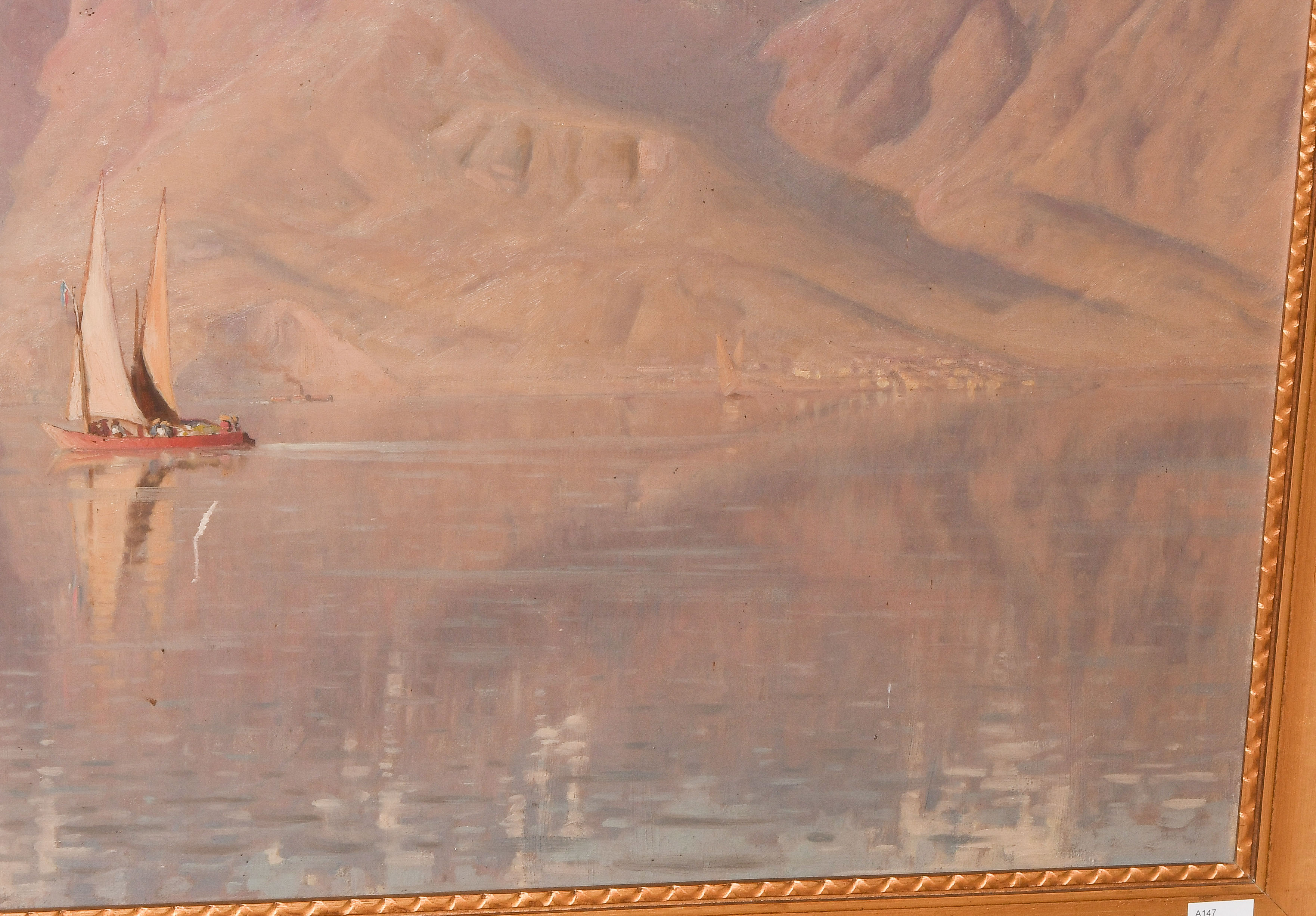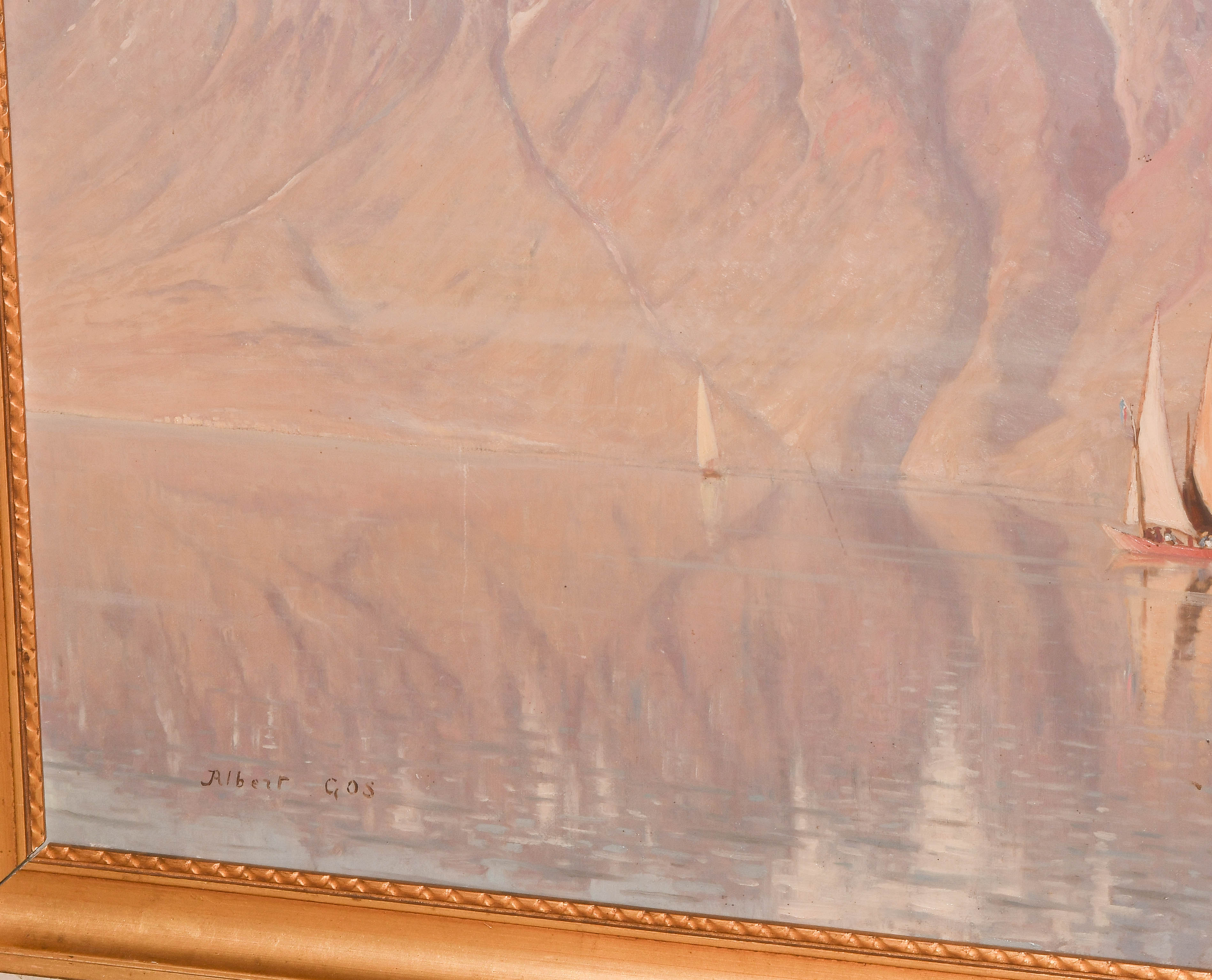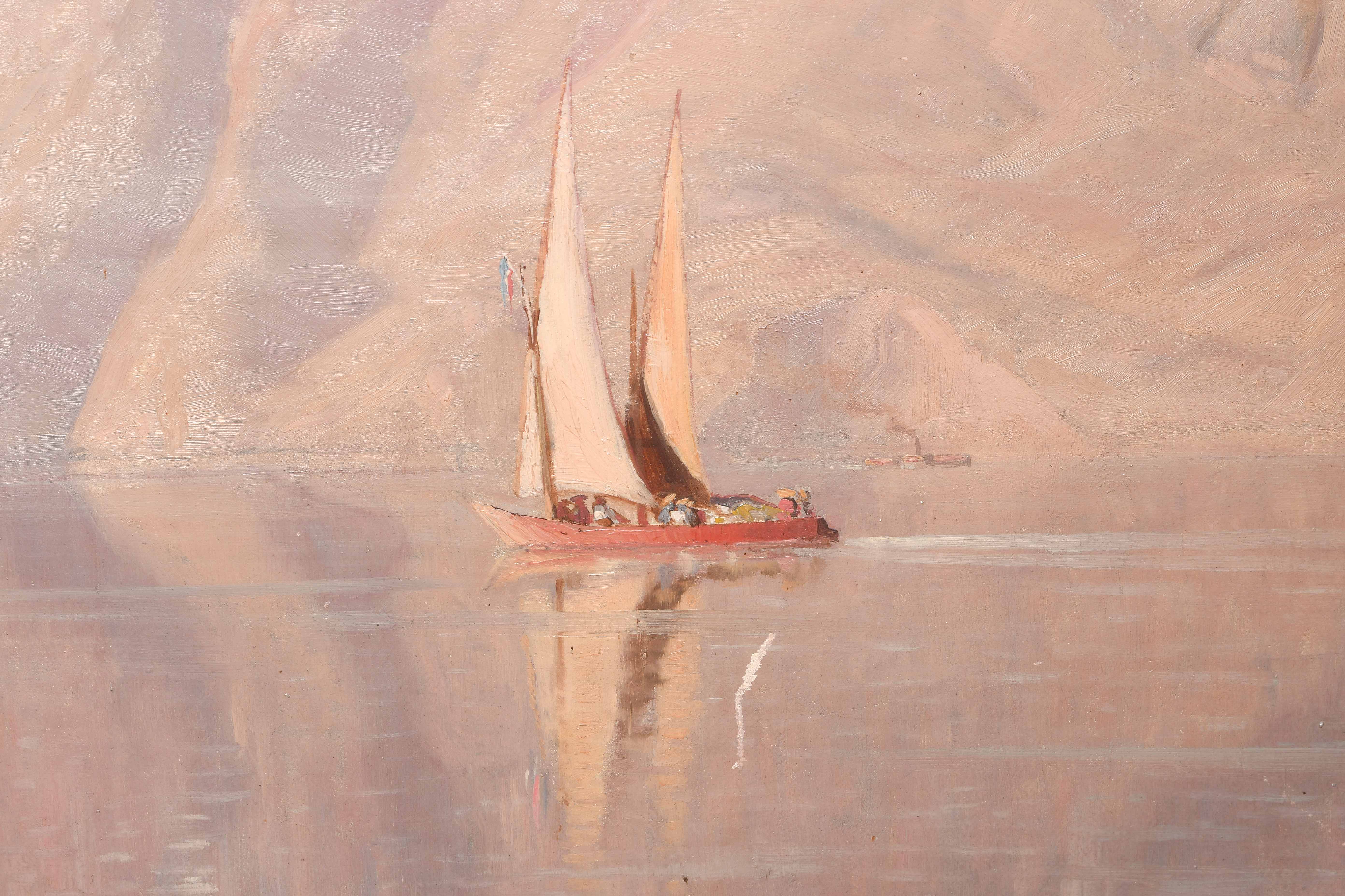Der Genfersee mit dem Mont Grammont. Öl auf Leinwand. Unten links signiert. 65x88 cm. -Einige Kratzspuren.