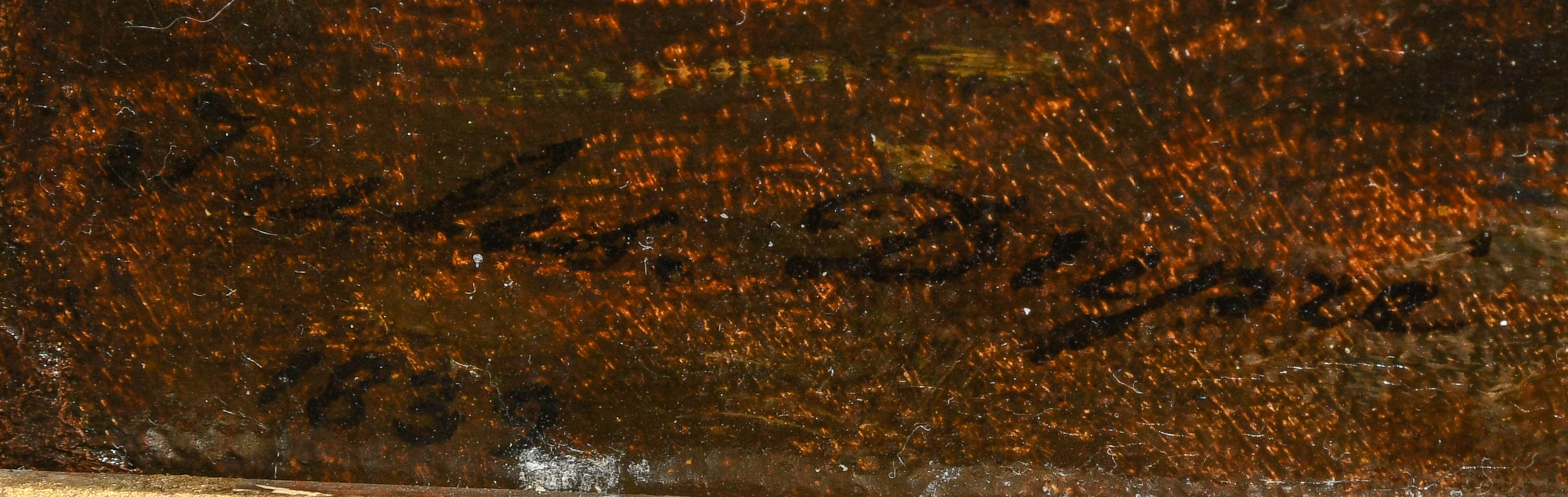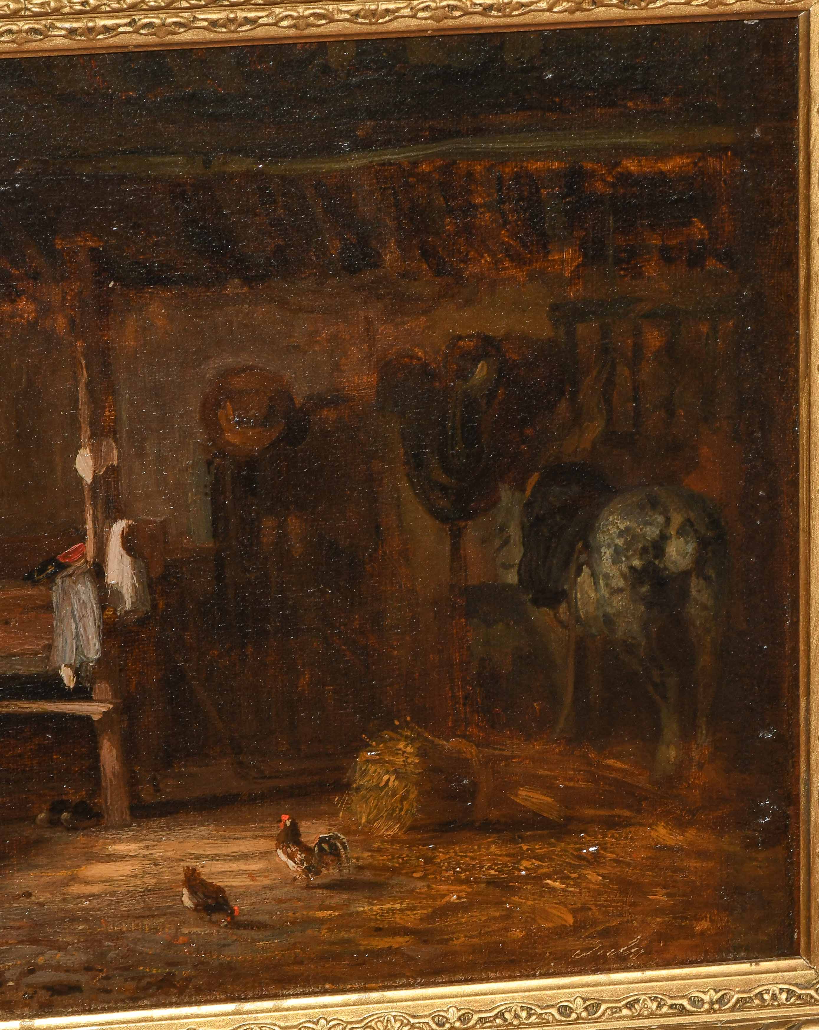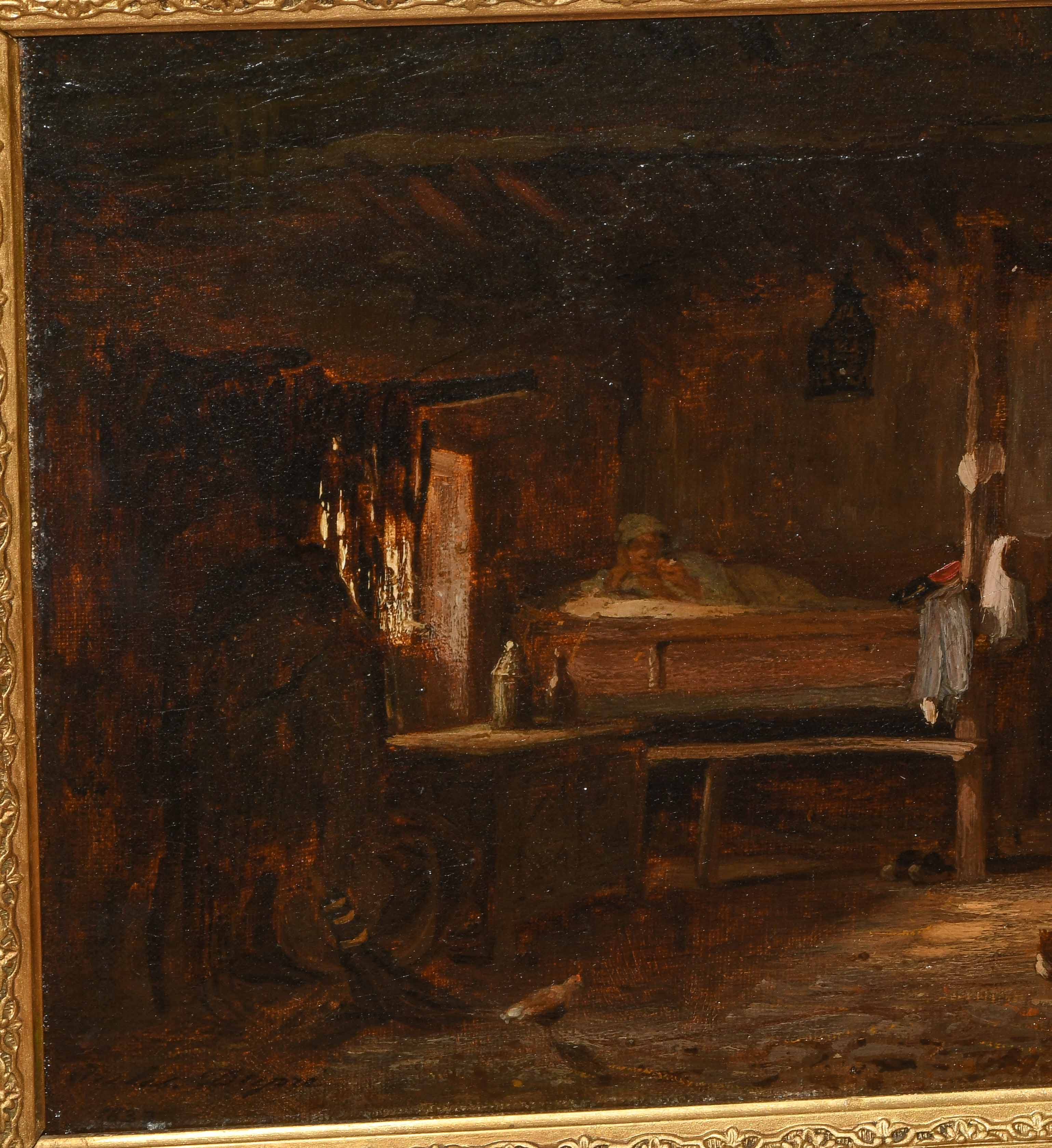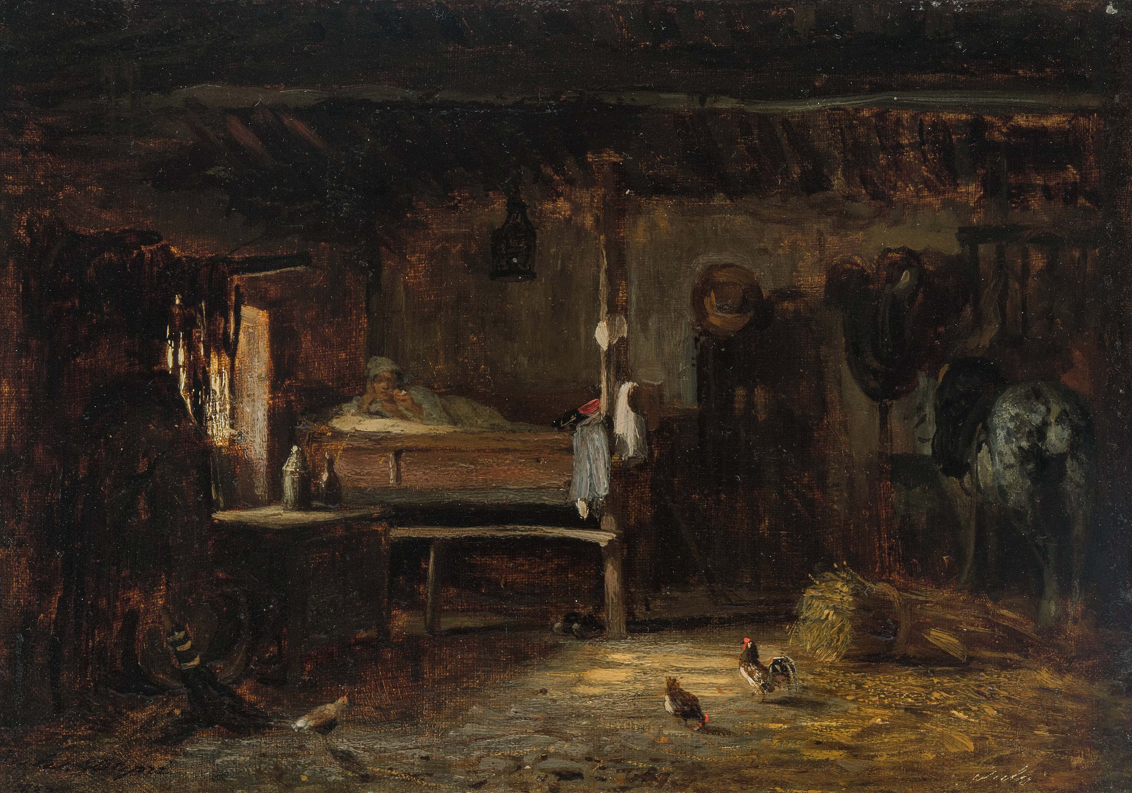 Interieur eines Bauernhofes. 1839. Öl auf Leinwand über Holz. Unten links signiert und datiert. 29x41 cm.