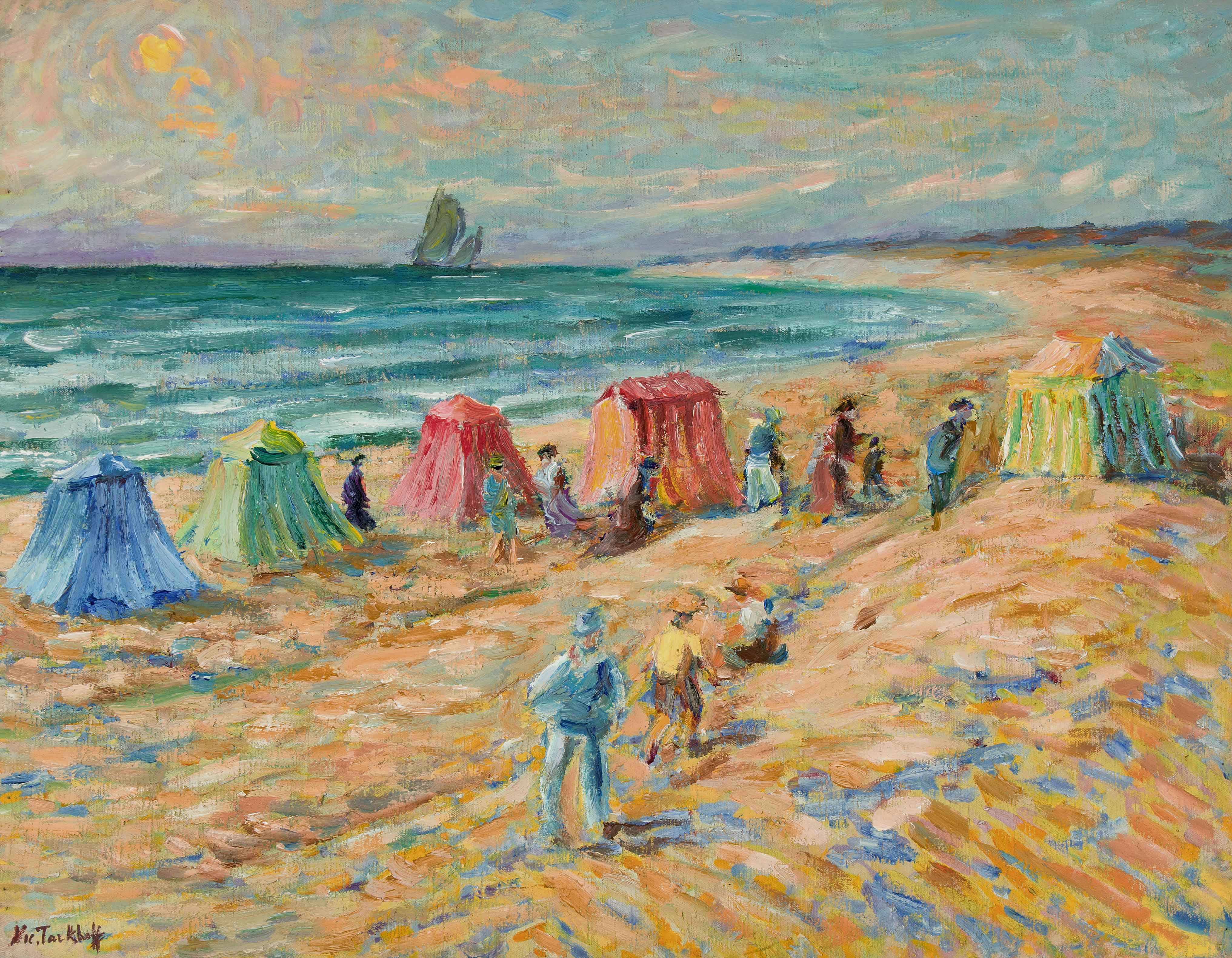 "Plage animée à Soulac". Wohl um 1906/08. Öl auf Leinwand. Unten links signiert. Verso auf Etikett nummeriert 156 und betitelt. 50x65 cm.