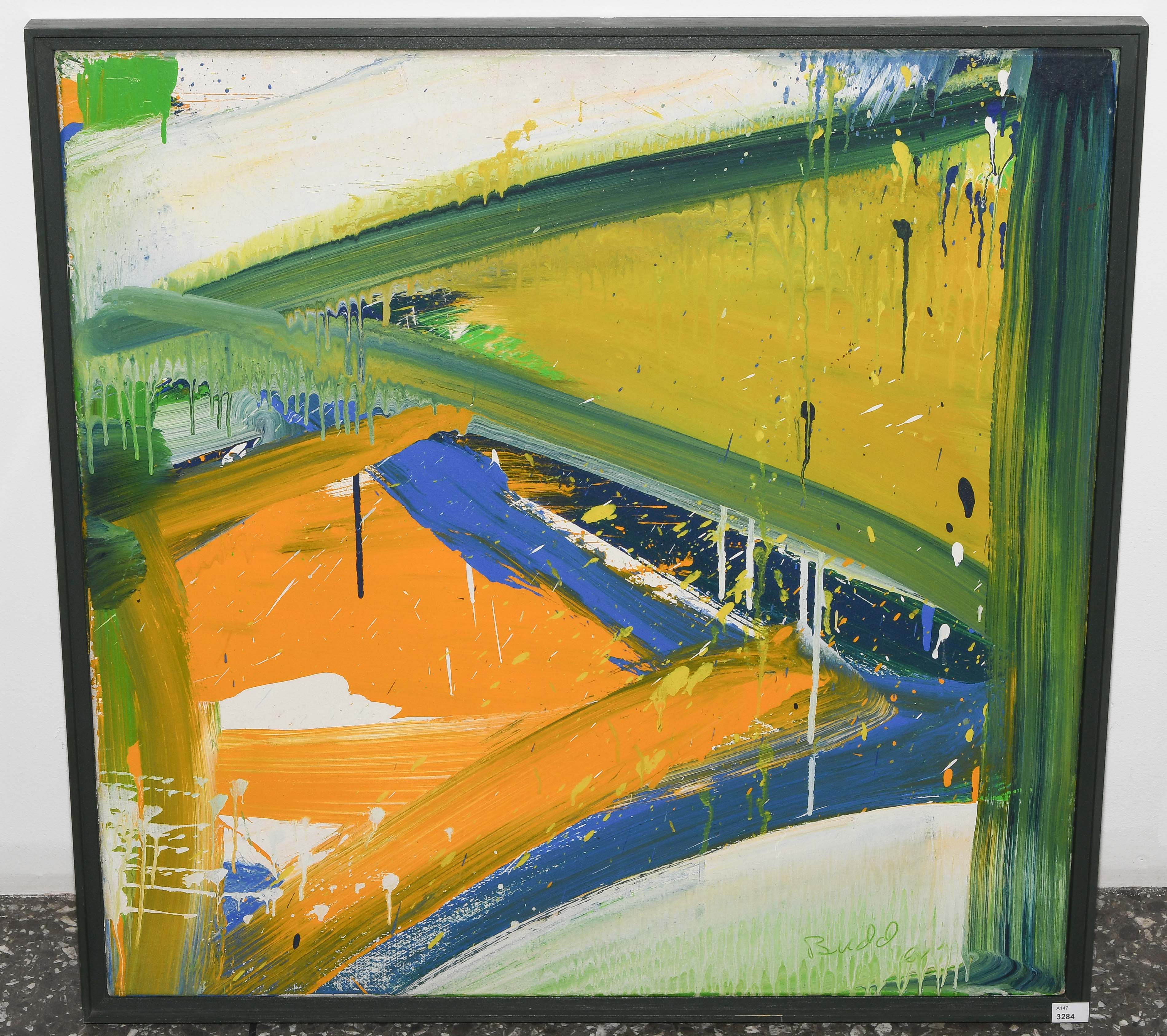 "Hotel III". 1961. Acryl auf Leinwand. Unten links signiert und datiert. 65x65 cm.