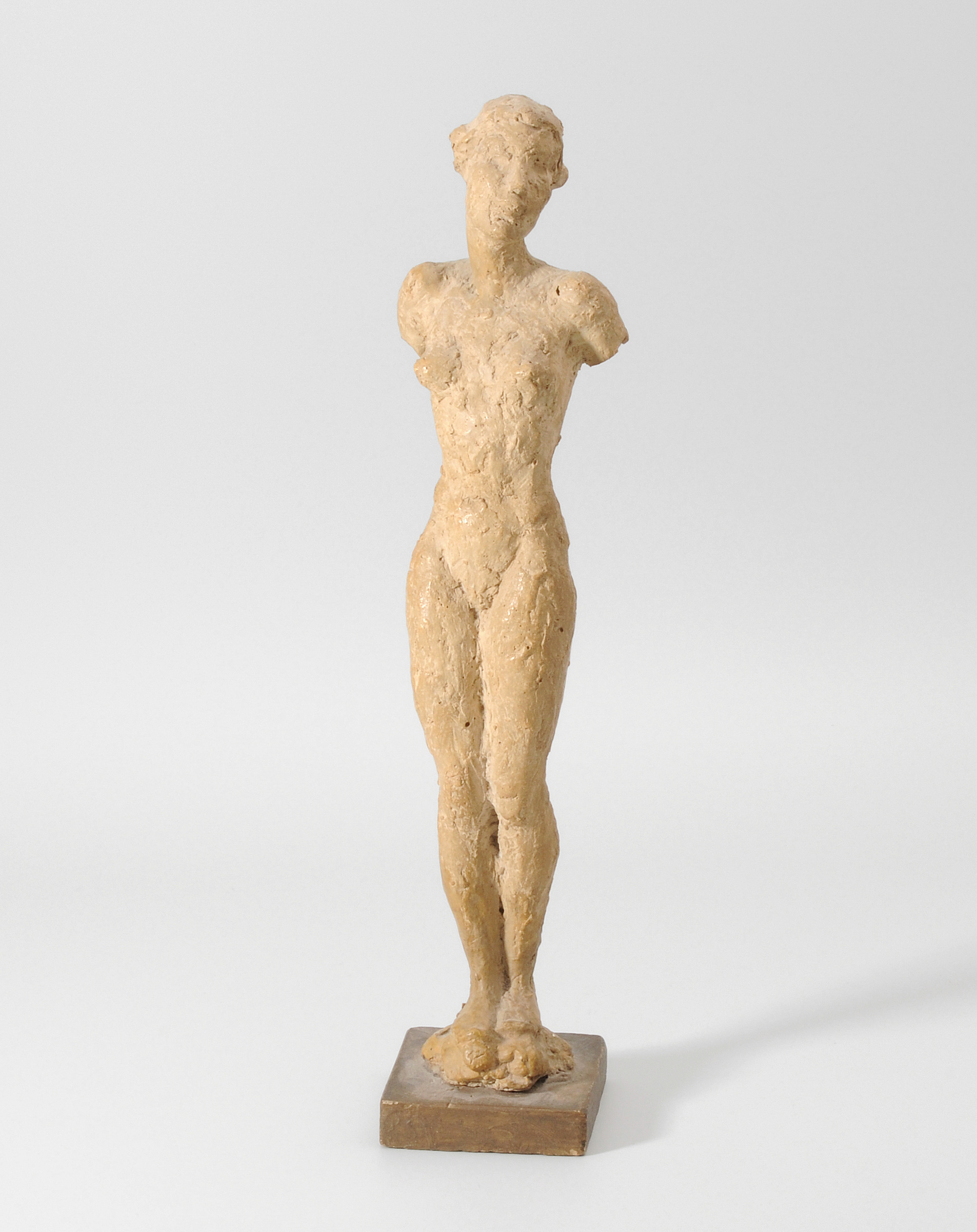 Stehender weiblicher Akt. Terracotta. H 38 auf Sockel 40 cm. -Leicht schmutzig. Wenige minimste Bestossungen.