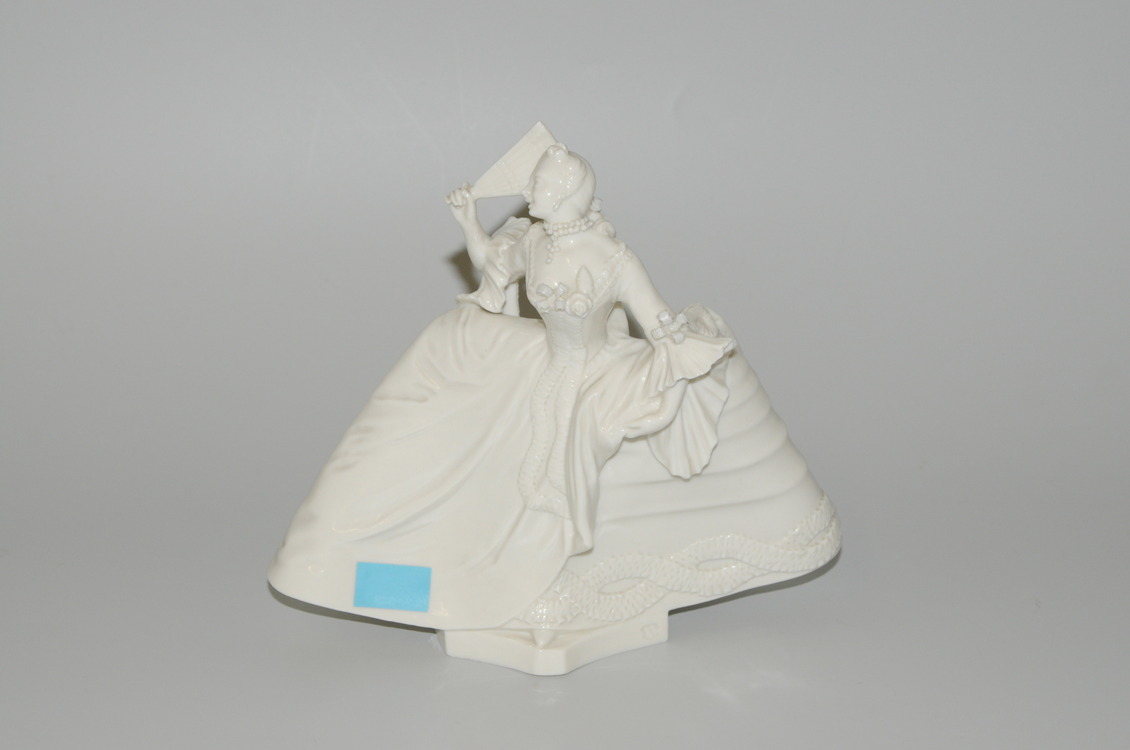 Nymphenburg, 20.Jh. Modell von Franz Anton Bustelli. Porzellan weiss, glasiert. Rokokodame mit Fächer. Modell-Nummer 7. Prägemarke "Rautenschild". H 18 cm.