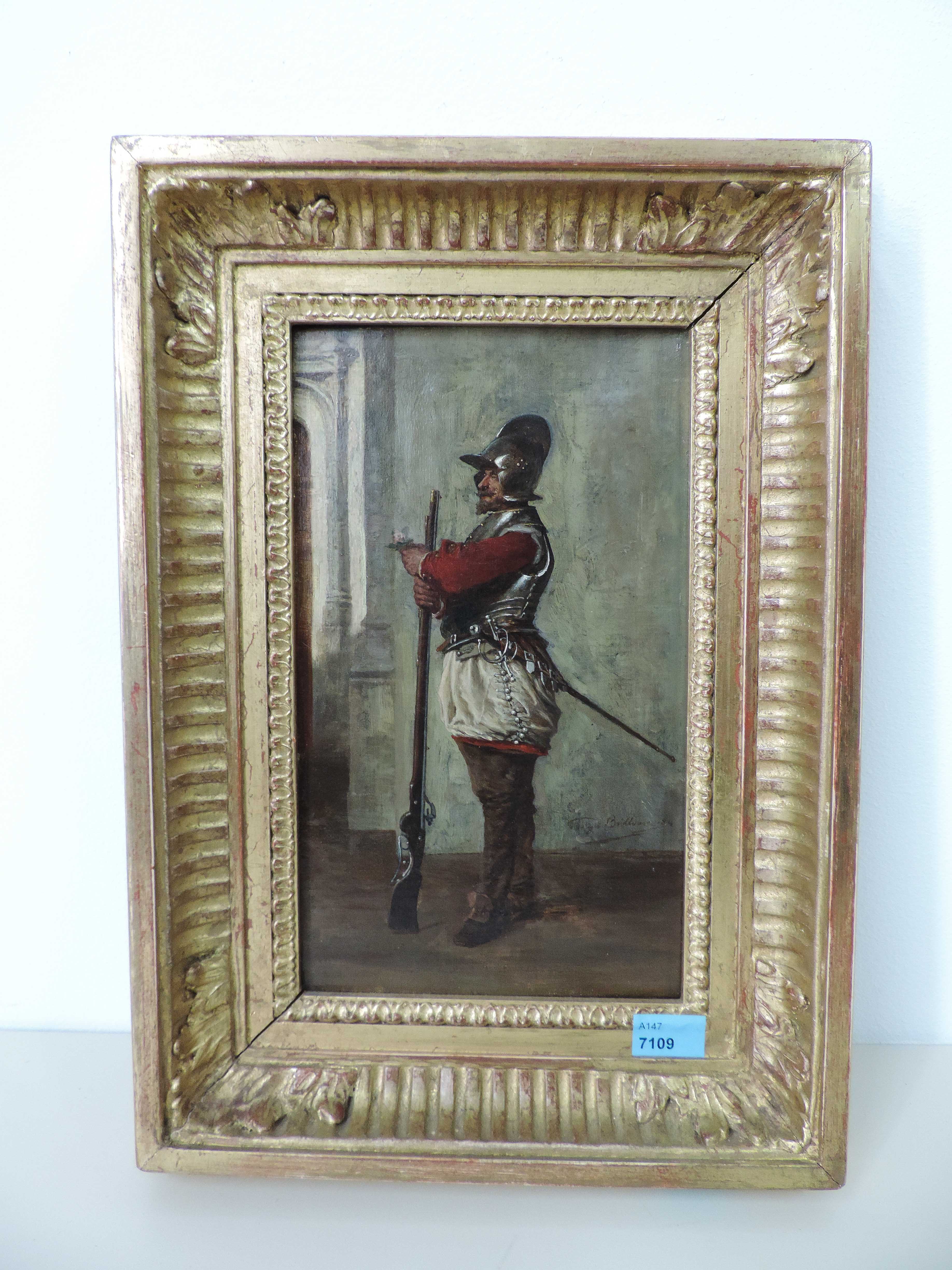 Die Wache. 1884. Öl auf Leinwand. Unten rechts signiert und datiert. 24x14,2 cm.