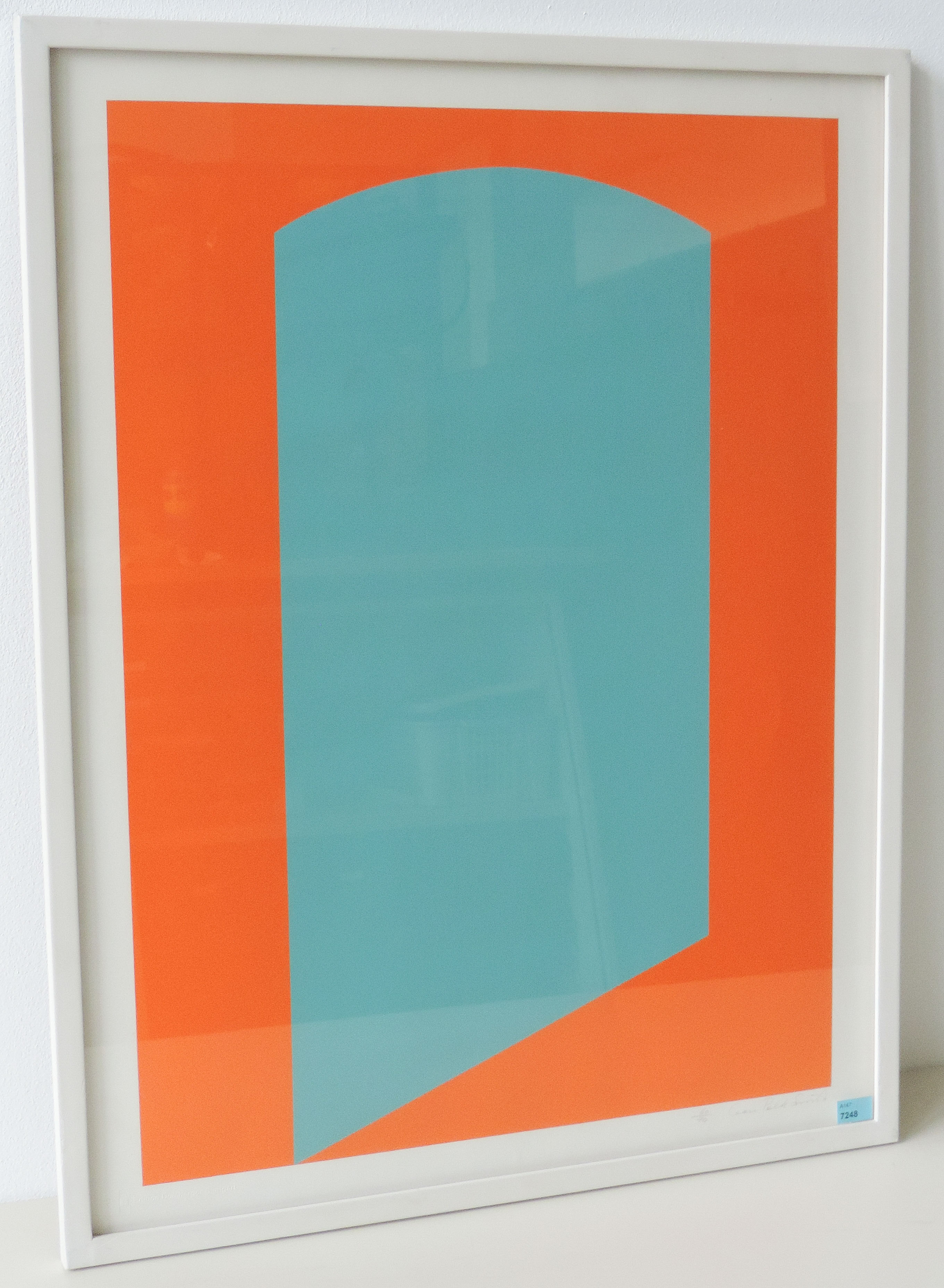 Konkrete Komposition in Grün und Orange. Farbserigraphie. 60/70. Unten rechts signiert. Lichtmass 64x49 cm. Gerahmt.