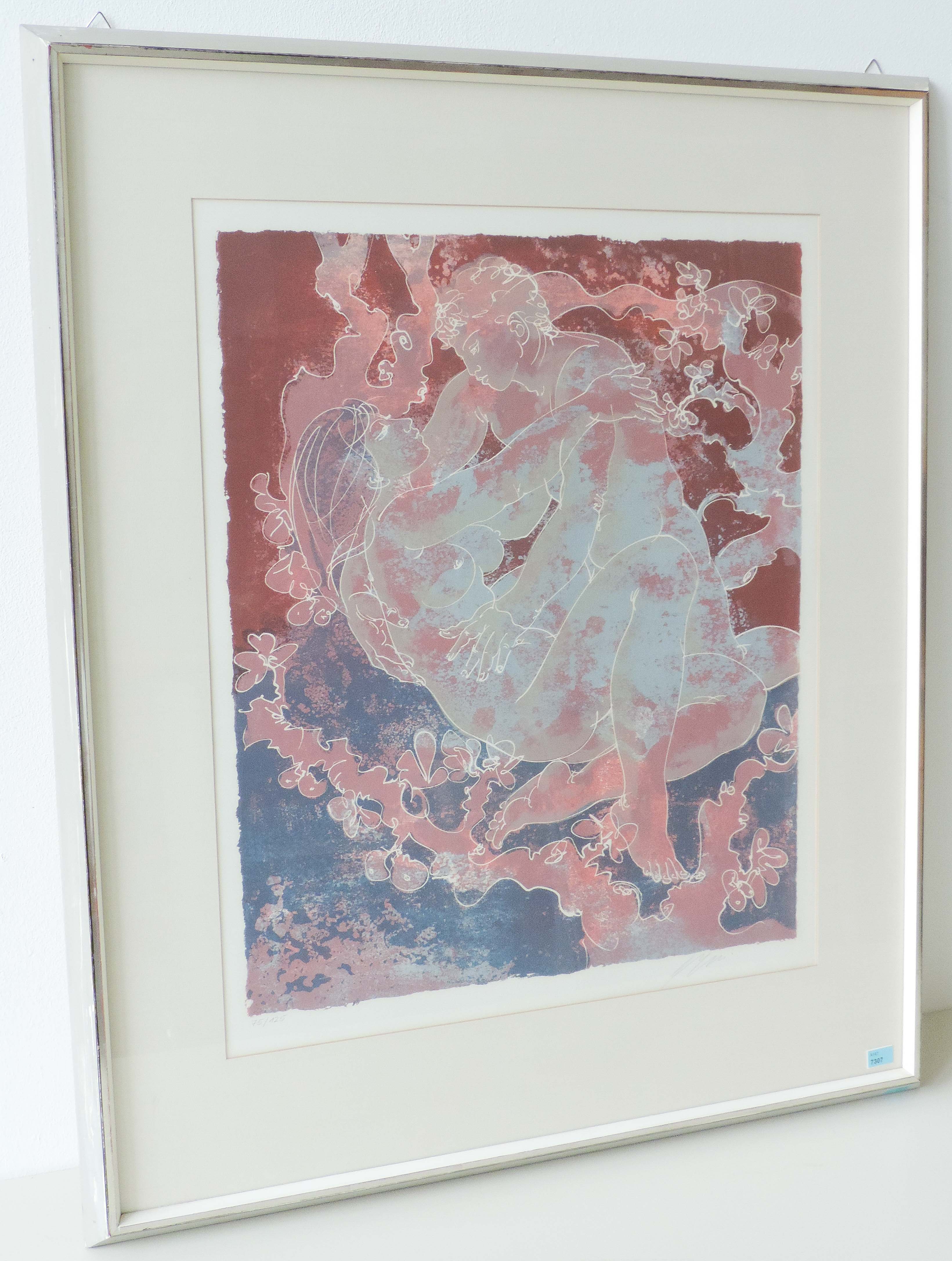 "Paar im Feigenhain". 1972. Farblithographie. 75/125. Unten rechts signiert. Lichtmass 60x49 cm. Gerahmt.