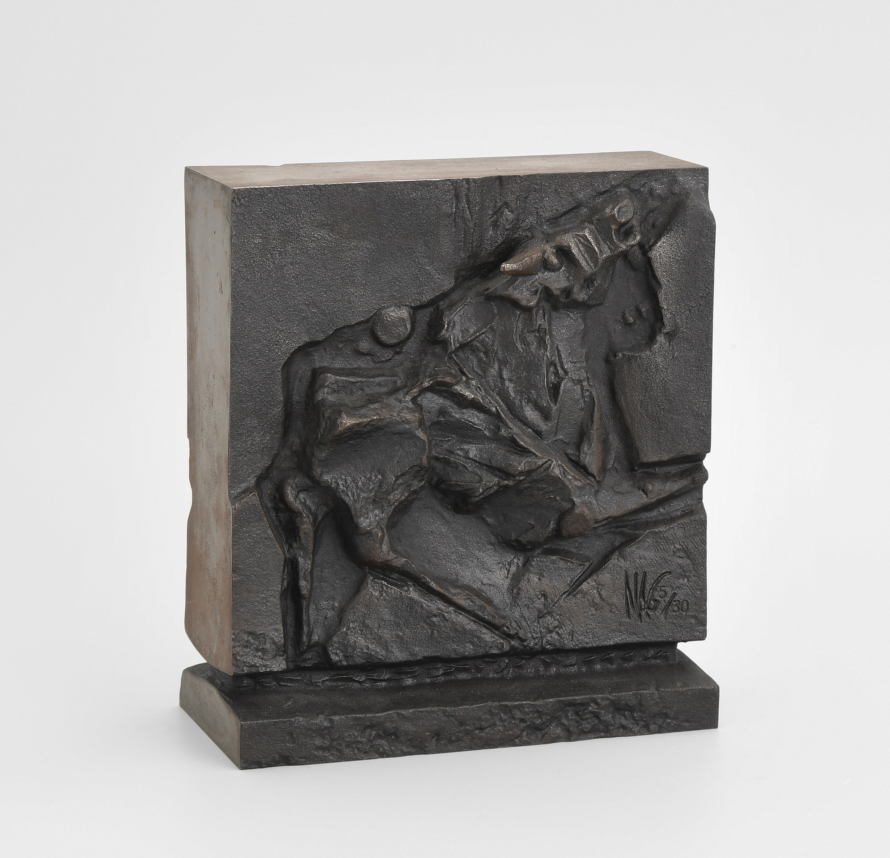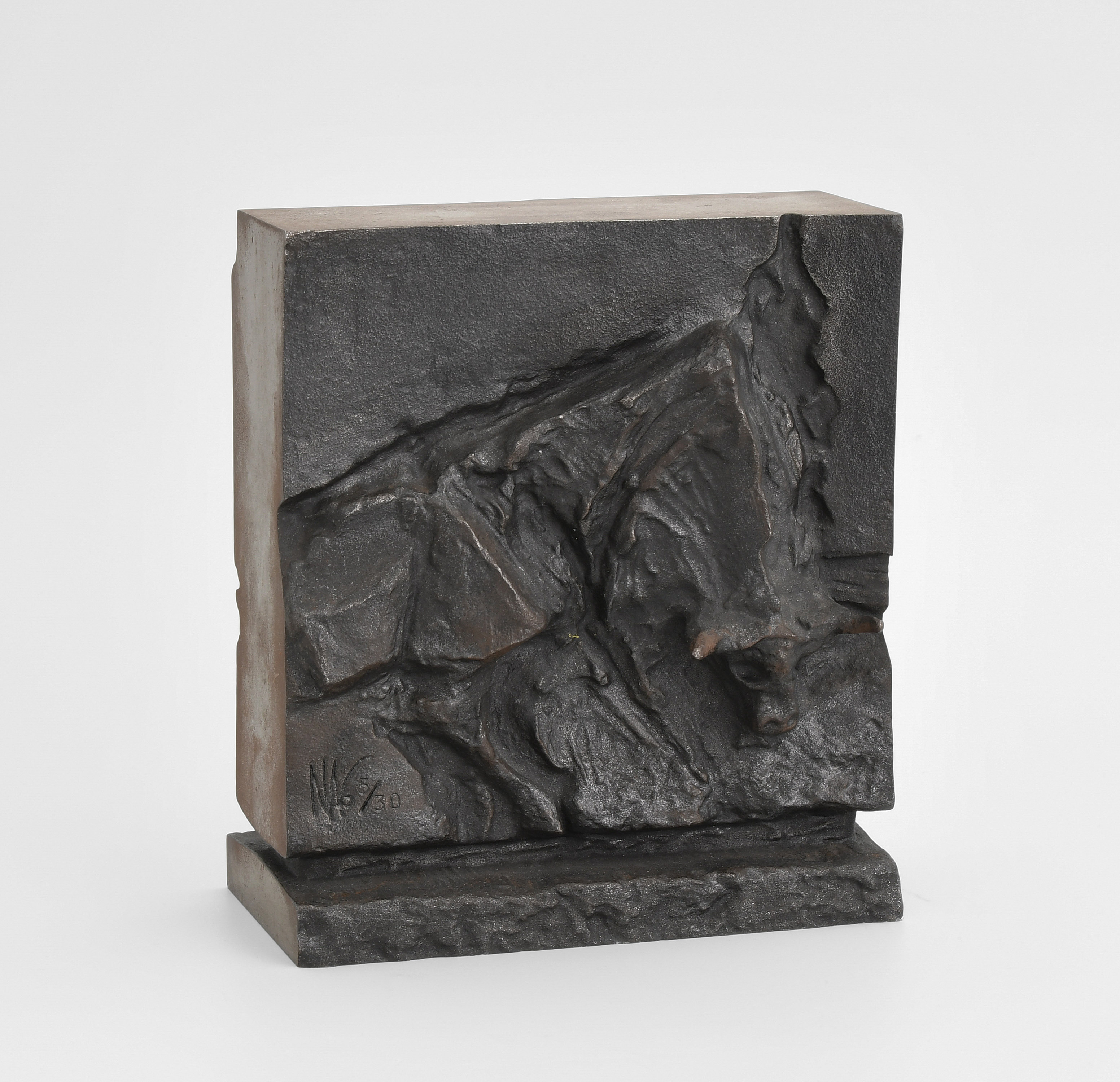 Stiere. Bronzerelief. 5/30. Auf beiden Seiten signiert und nummeriert. Auf dem Boden bezeichnet: "fuso specialmente dalla fondeca di cadenazzo nell'ottobre del 1981". H 20 cm. -Patina.