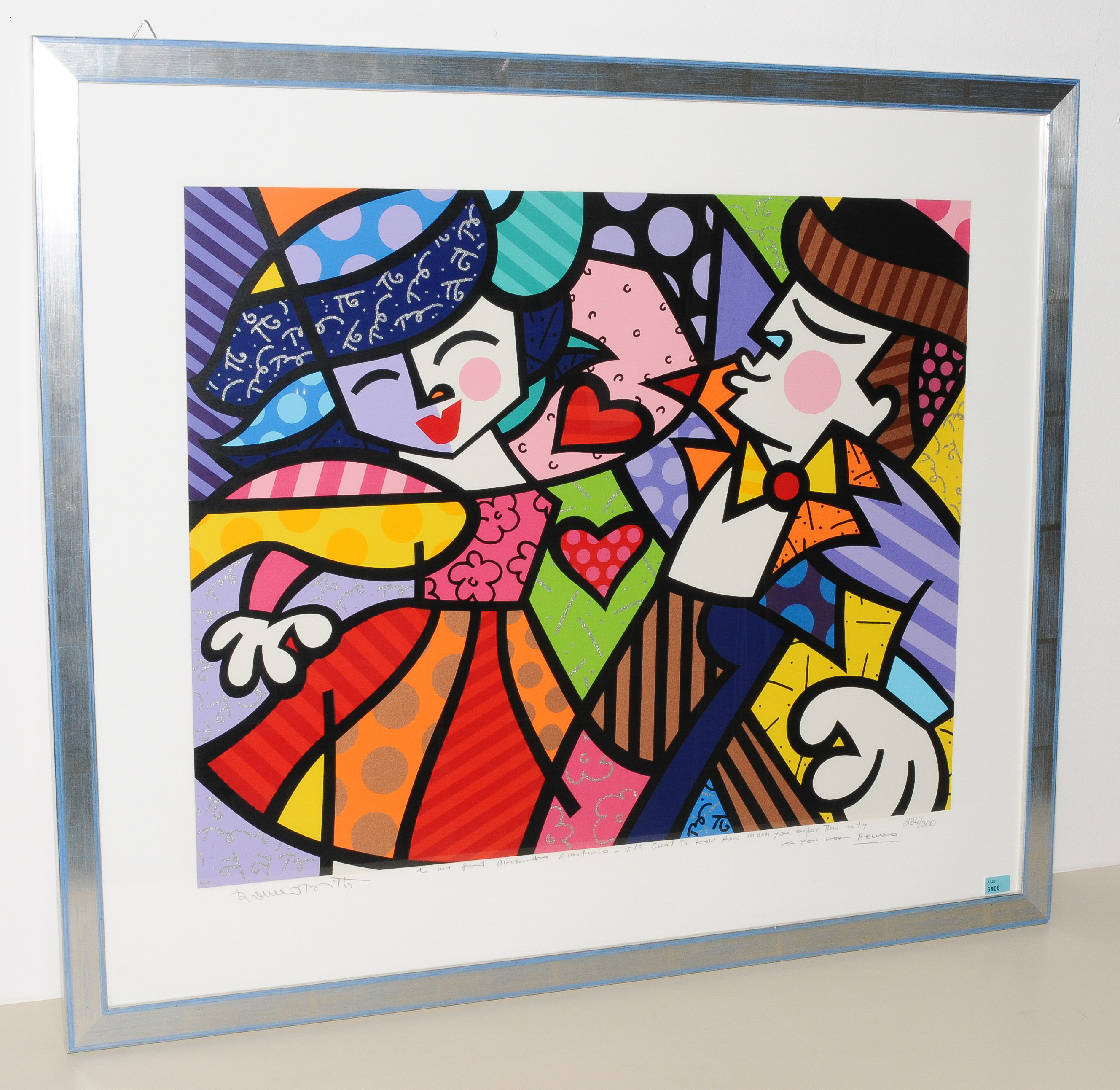 Liebespaar. Farbserigraphie. 234/300. Unten links signiert. Unten mittig mit Widmung. Lichtmass 66x77 cm. Gerahmt.
