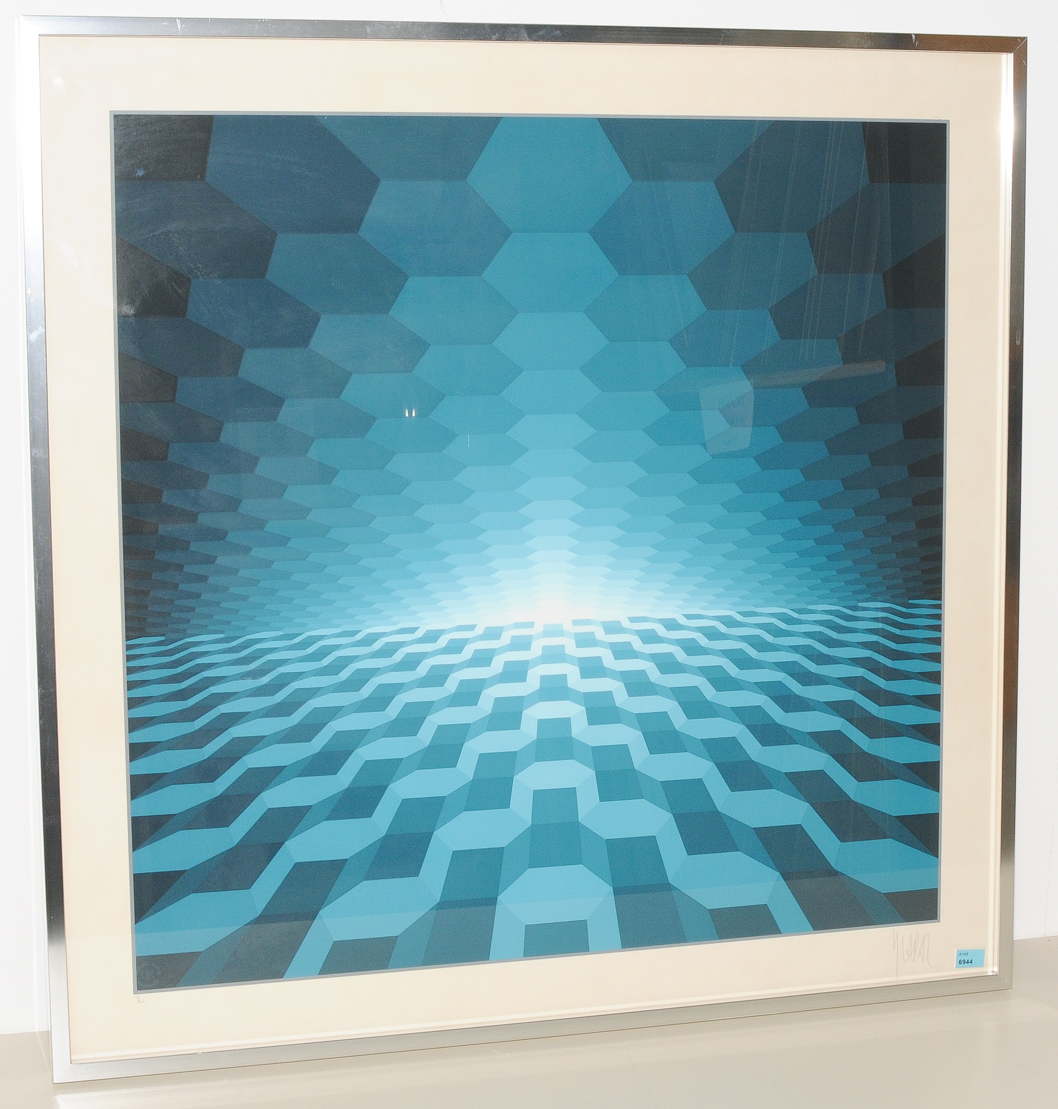 Meeresgrüne Sechsecke zu Horizont gerichtet. Farbserigraphie. 10/200. Unten rechts signiert. Lichtmass 73x73 cm. Gerahmt.