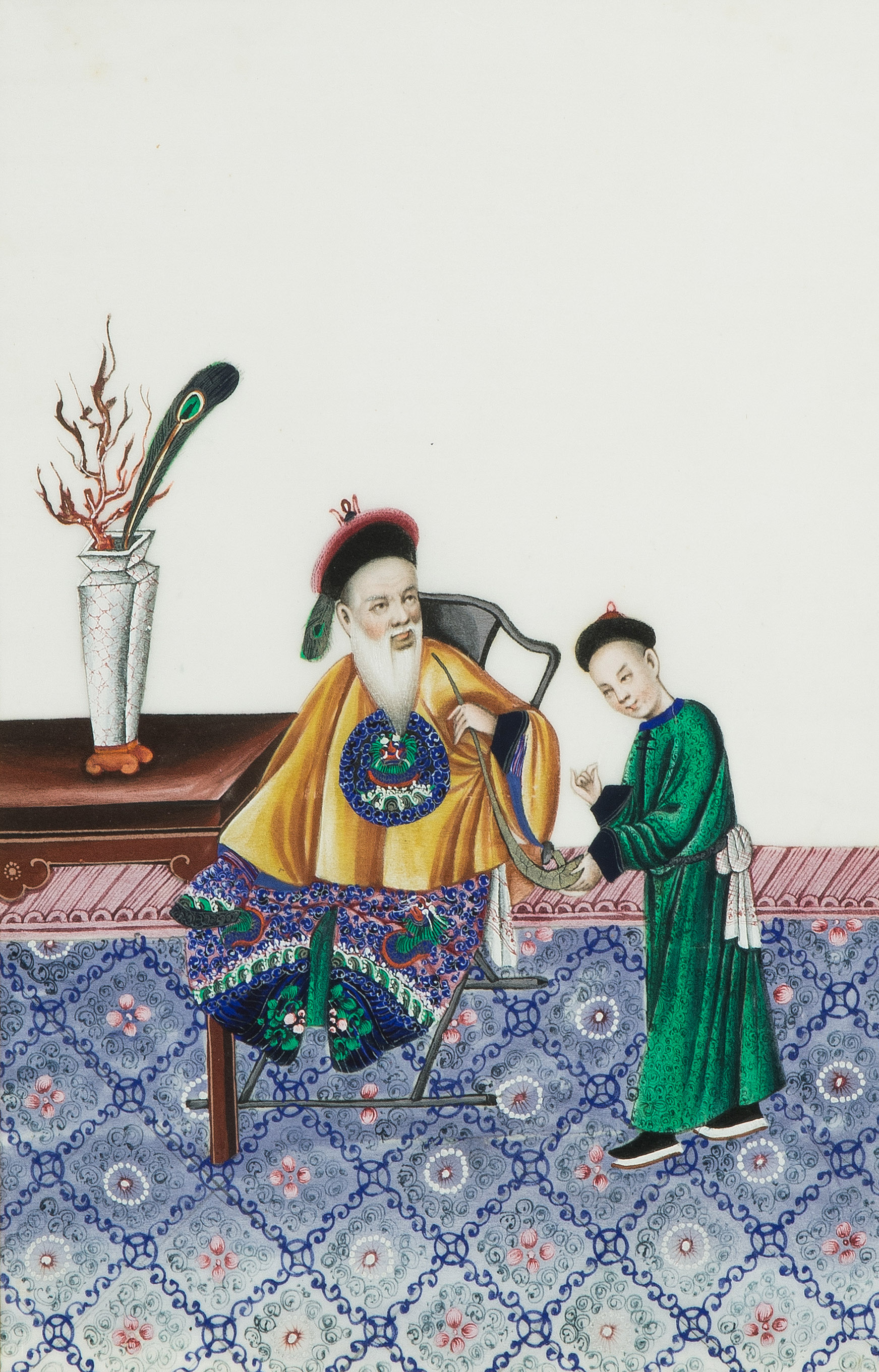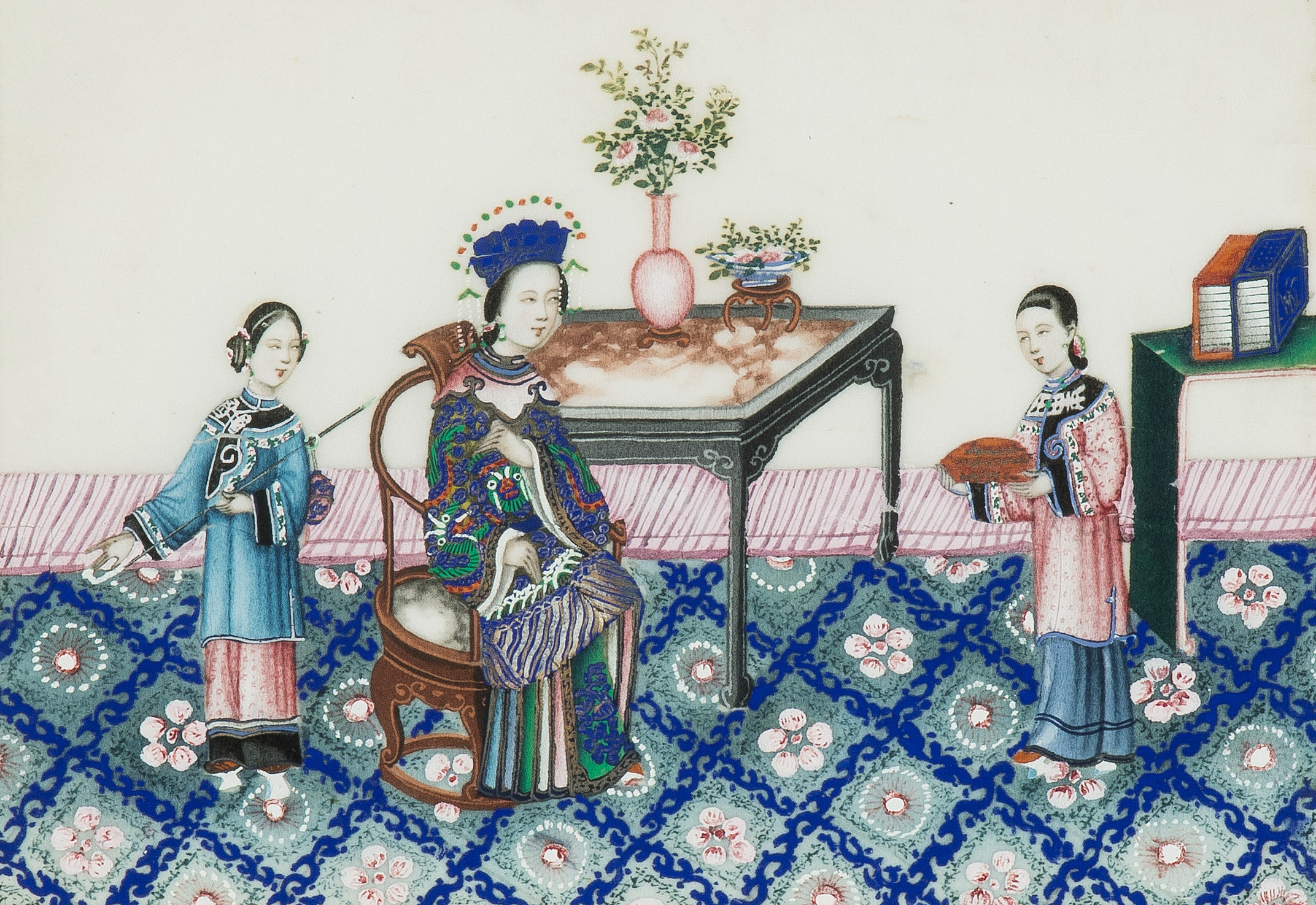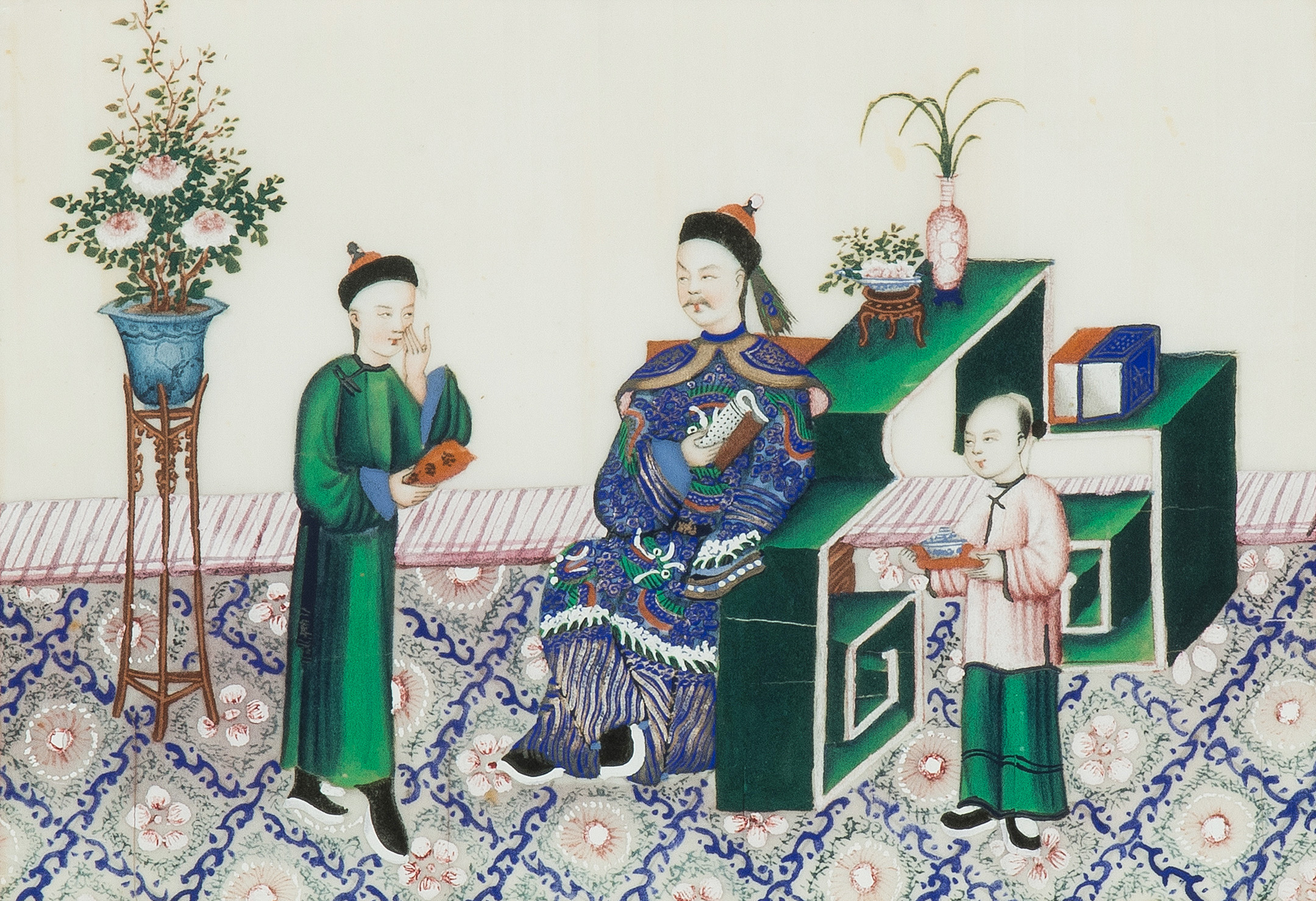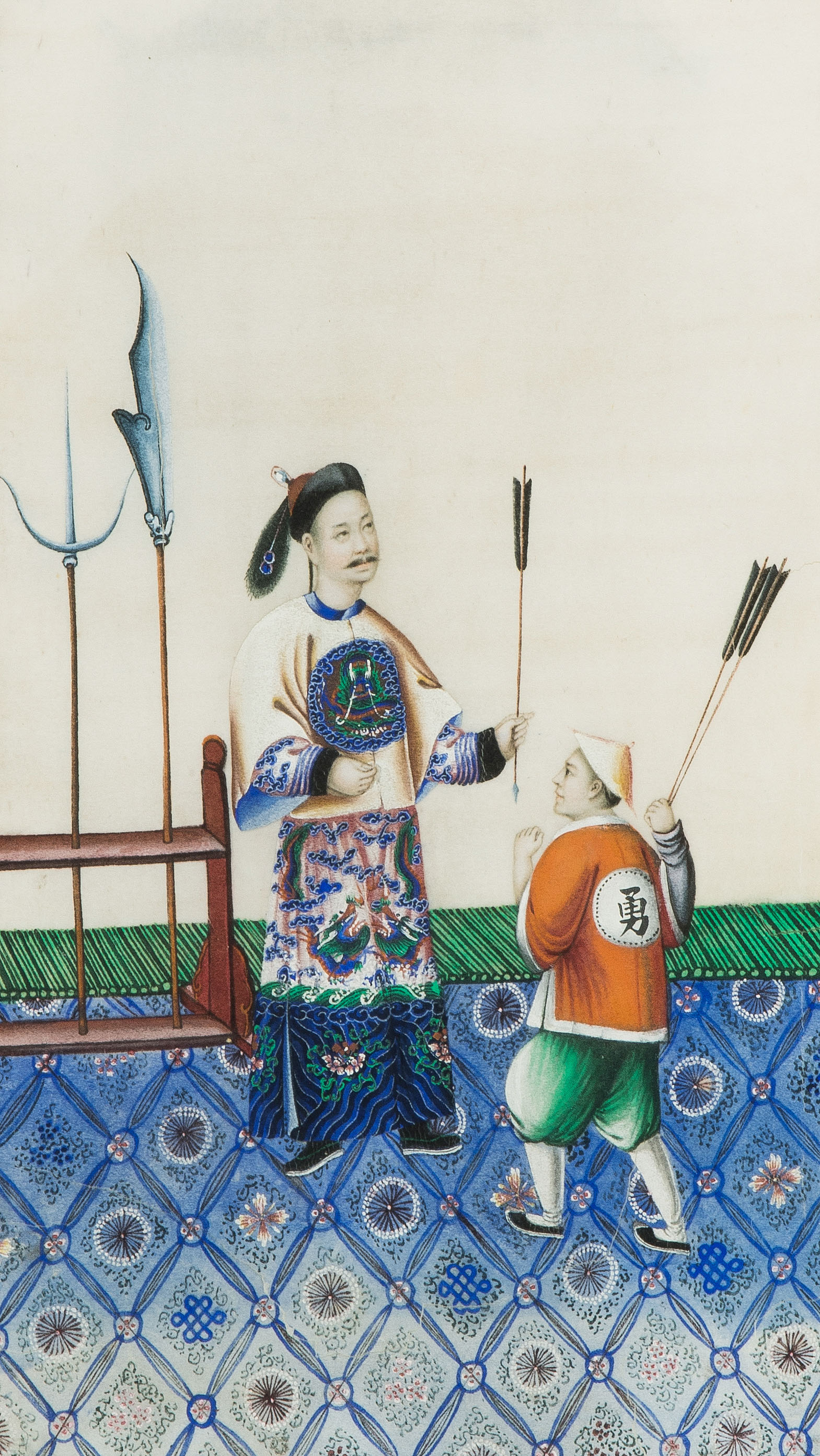 China, spätes 19.Jh. Kanton. Farbe auf Reispapier. Höfische Szenen. Tlw. beschädigt. Sechsmal 36x43,5 / zweimal 46,5x34,5 / zweimal 49,5x34,5 cm. Gerahmt.