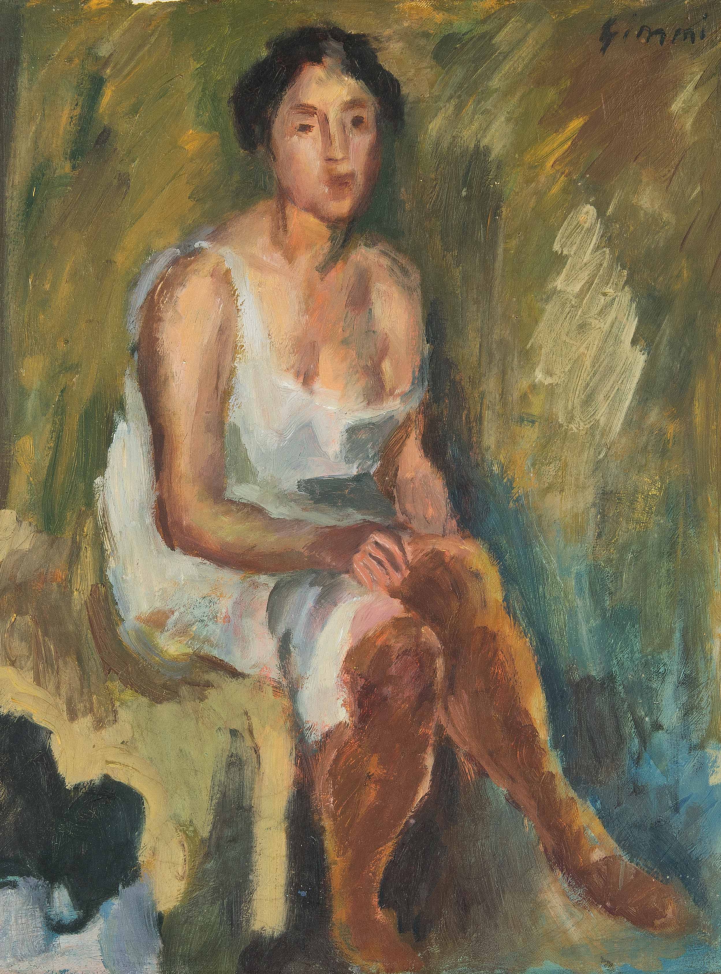 "Déshabillé", 1916. Öl auf Leinwand. Oben rechts signiert. 41x33 cm.