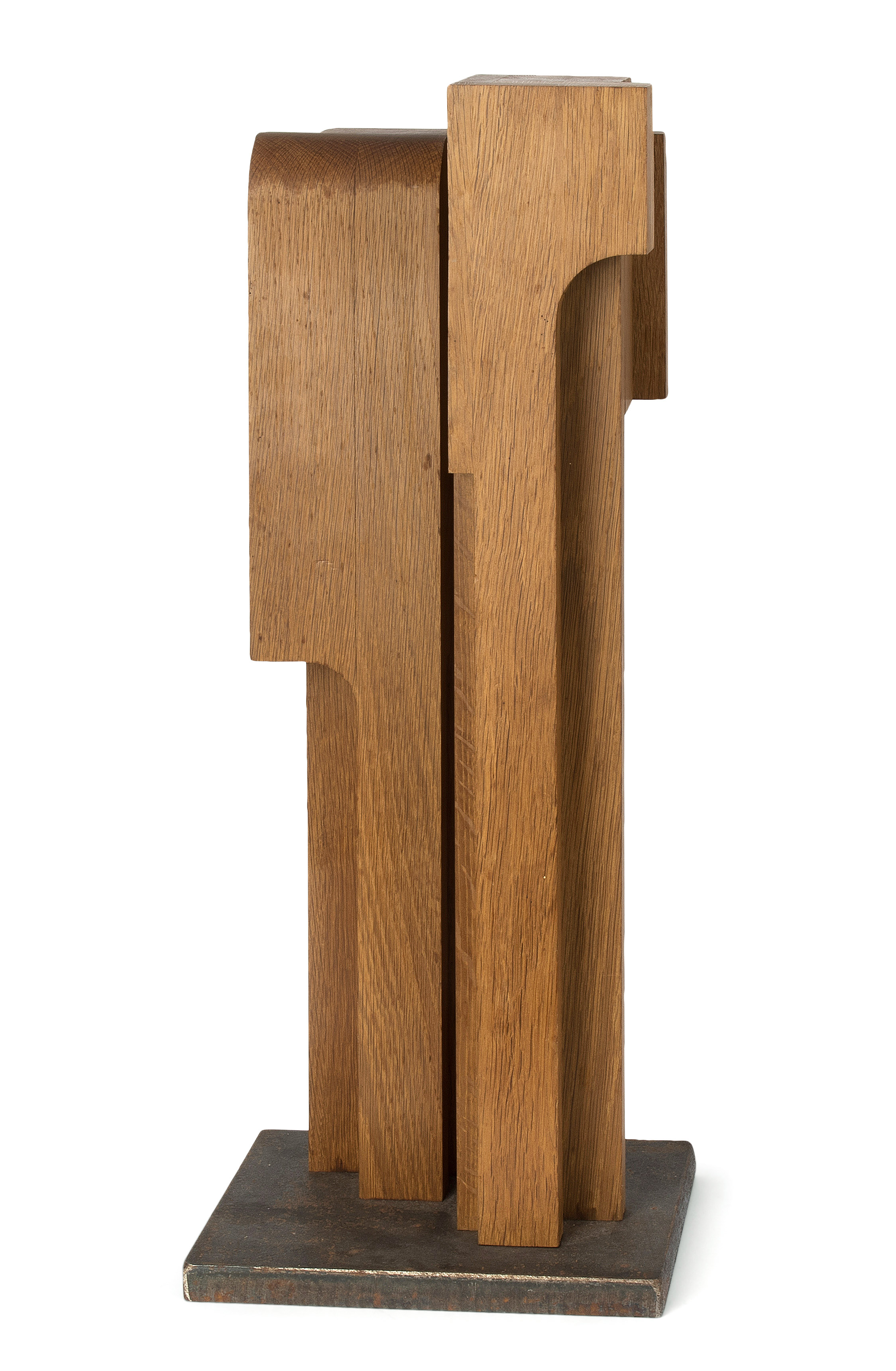 Stele. Um 1975. Eichenholz. H 61,5 auf Metallsockel 63,5 cm. -Patina. Leicht schmutzig.