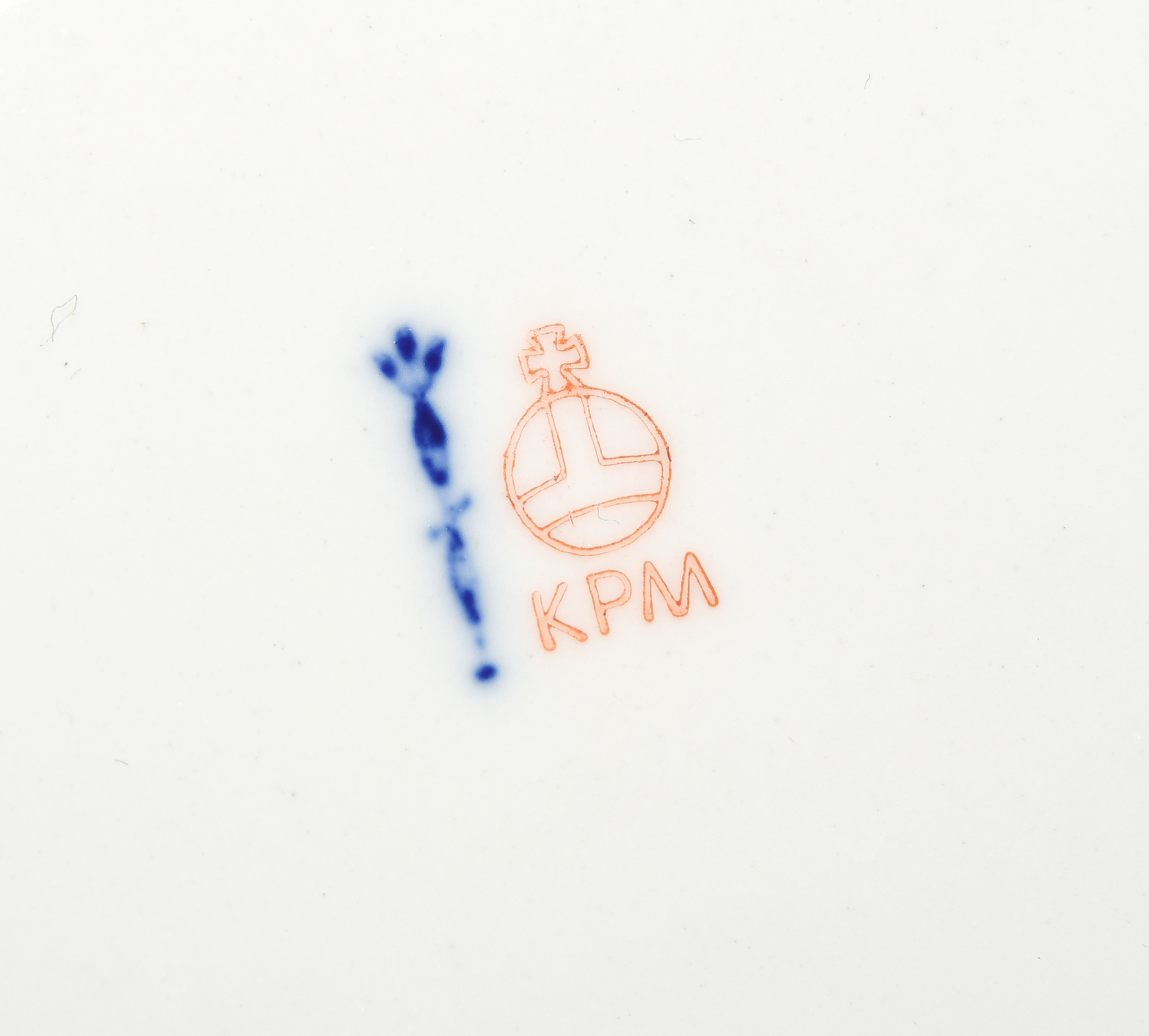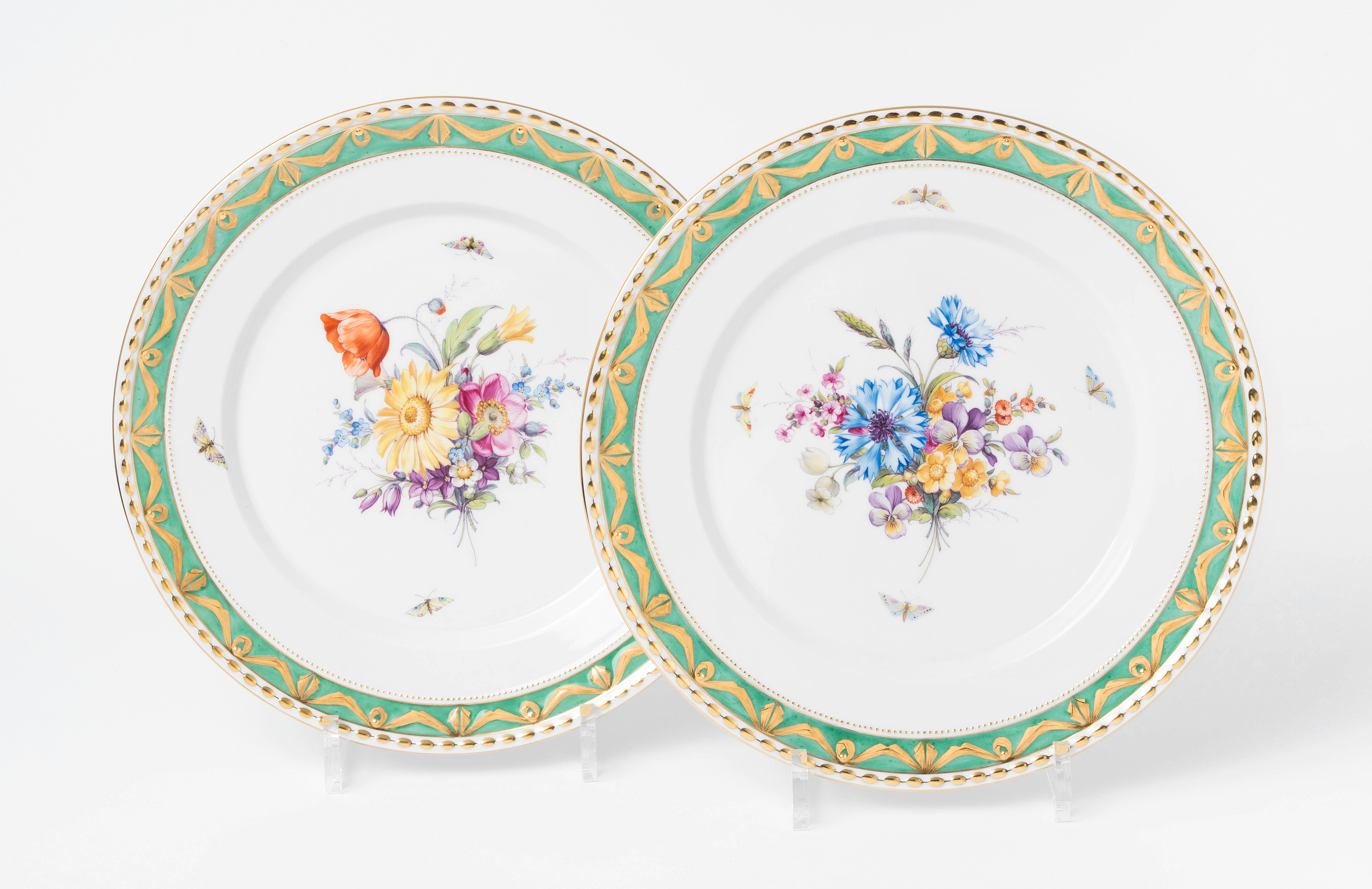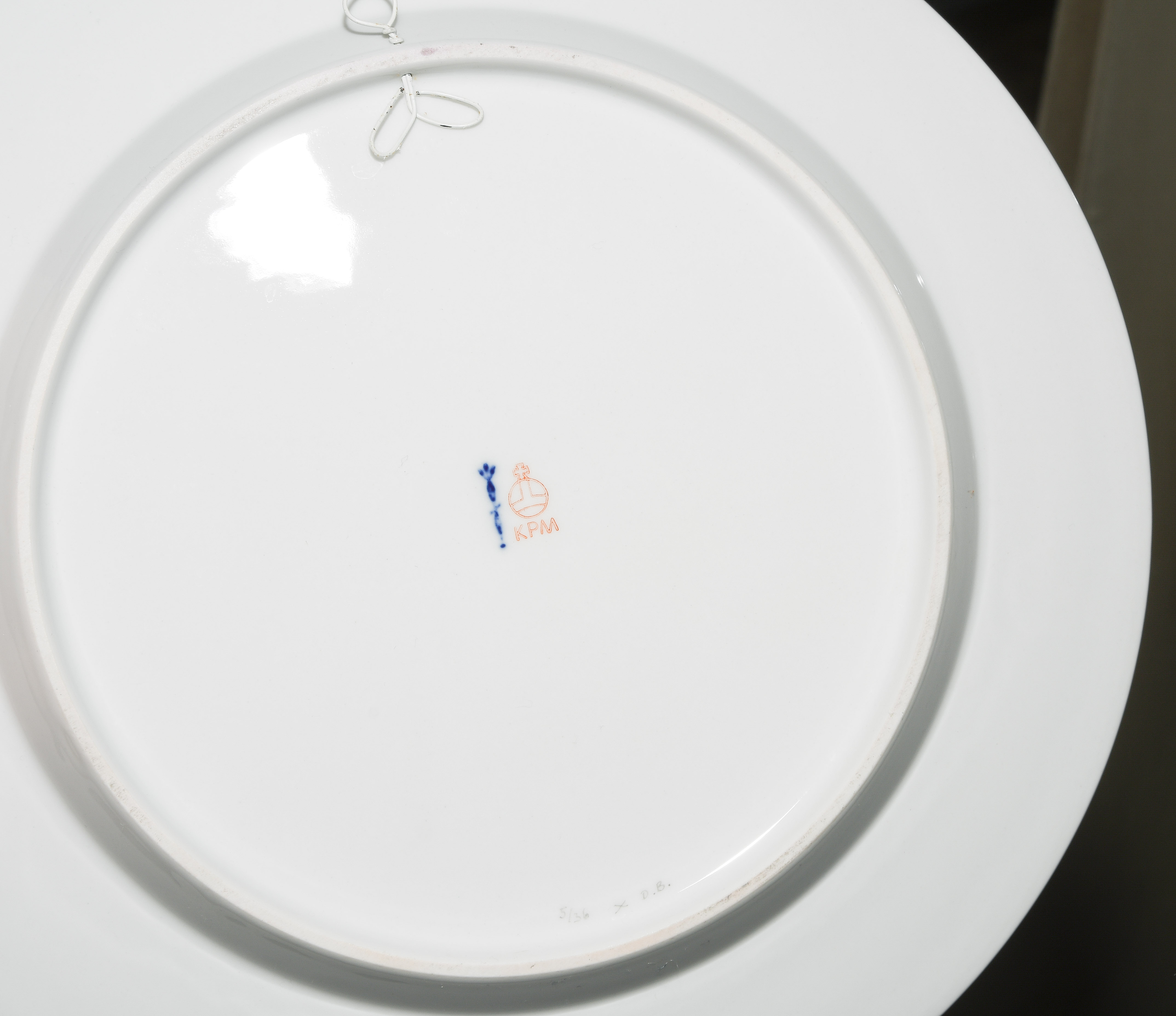 Um/nach 1900. Porzellan, Kurland Dekor 41 (Feldblumenstrauss mit Malve und Schmetterlingen). D 26 cm.