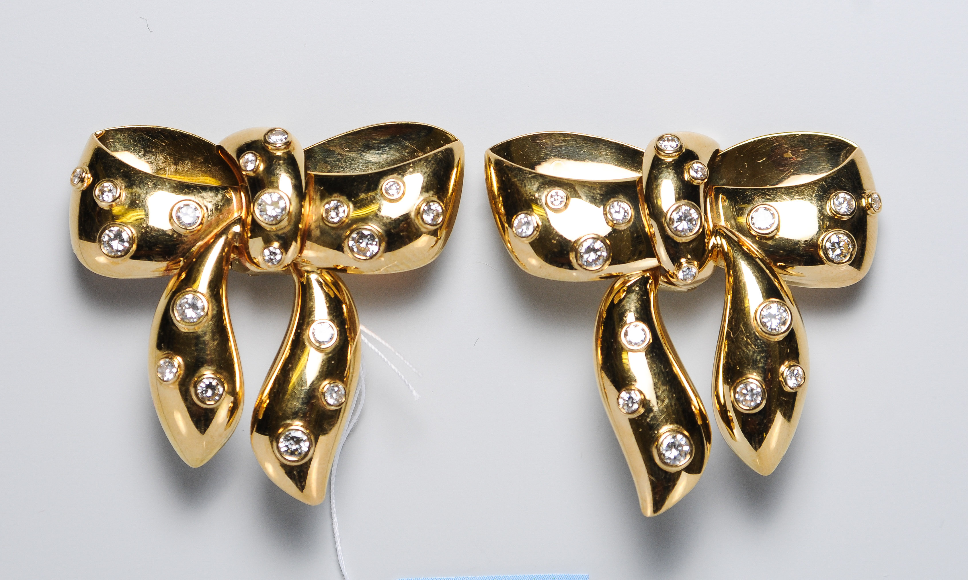 750 Gelbgold. 36 Brillanten zus. ca. 1.50 ct. 4x4 cm, 27,9 g.