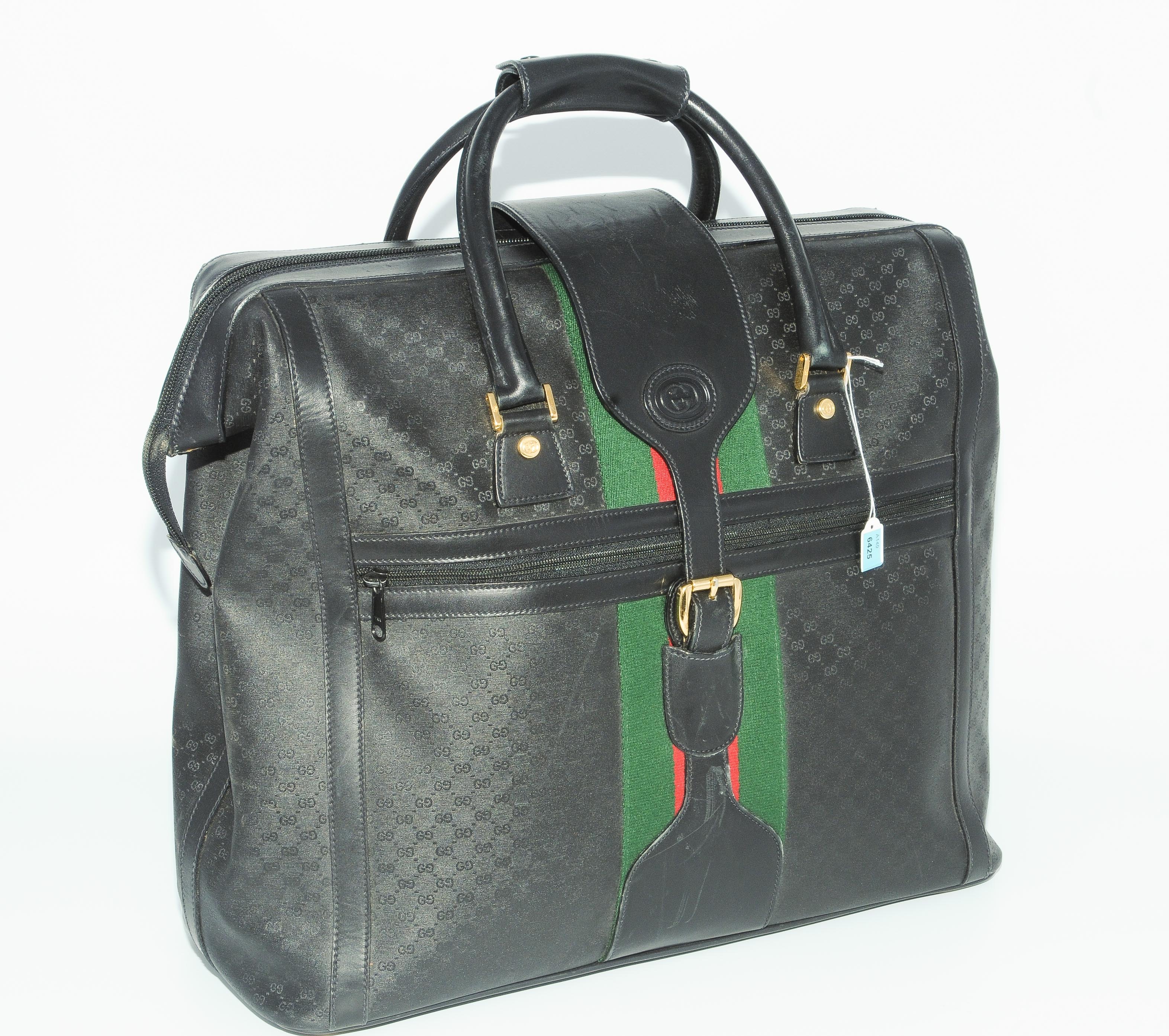 Aus schwarzem Monogramm-Stoff und Leder. Zwei Henkel. Reissverschluss. 45x38x18 cm. Gebrauchsspuren.