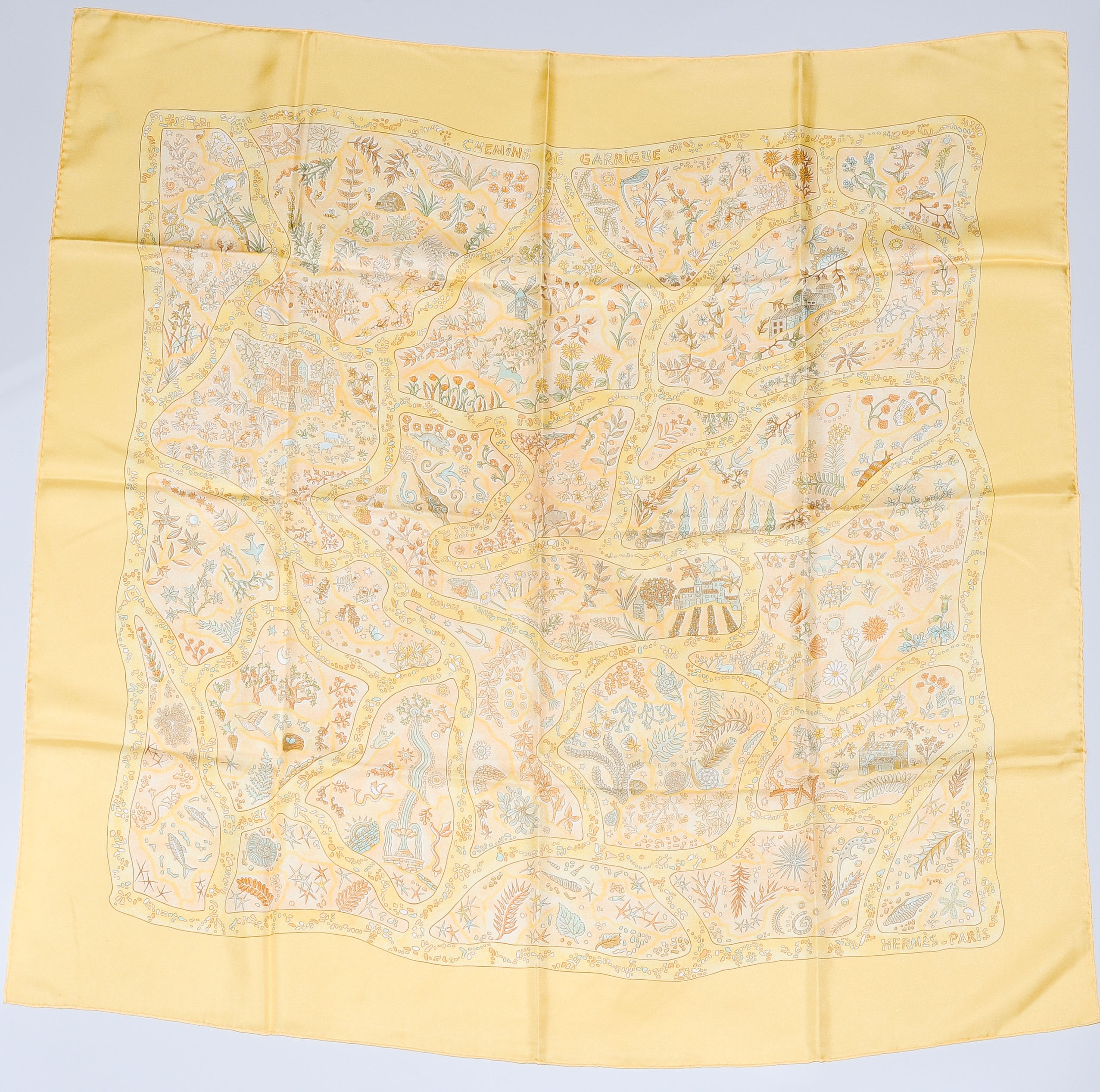 Seide. In Gelb. 89x89 cm. Etwas fleckig, sonst guter Zustand.