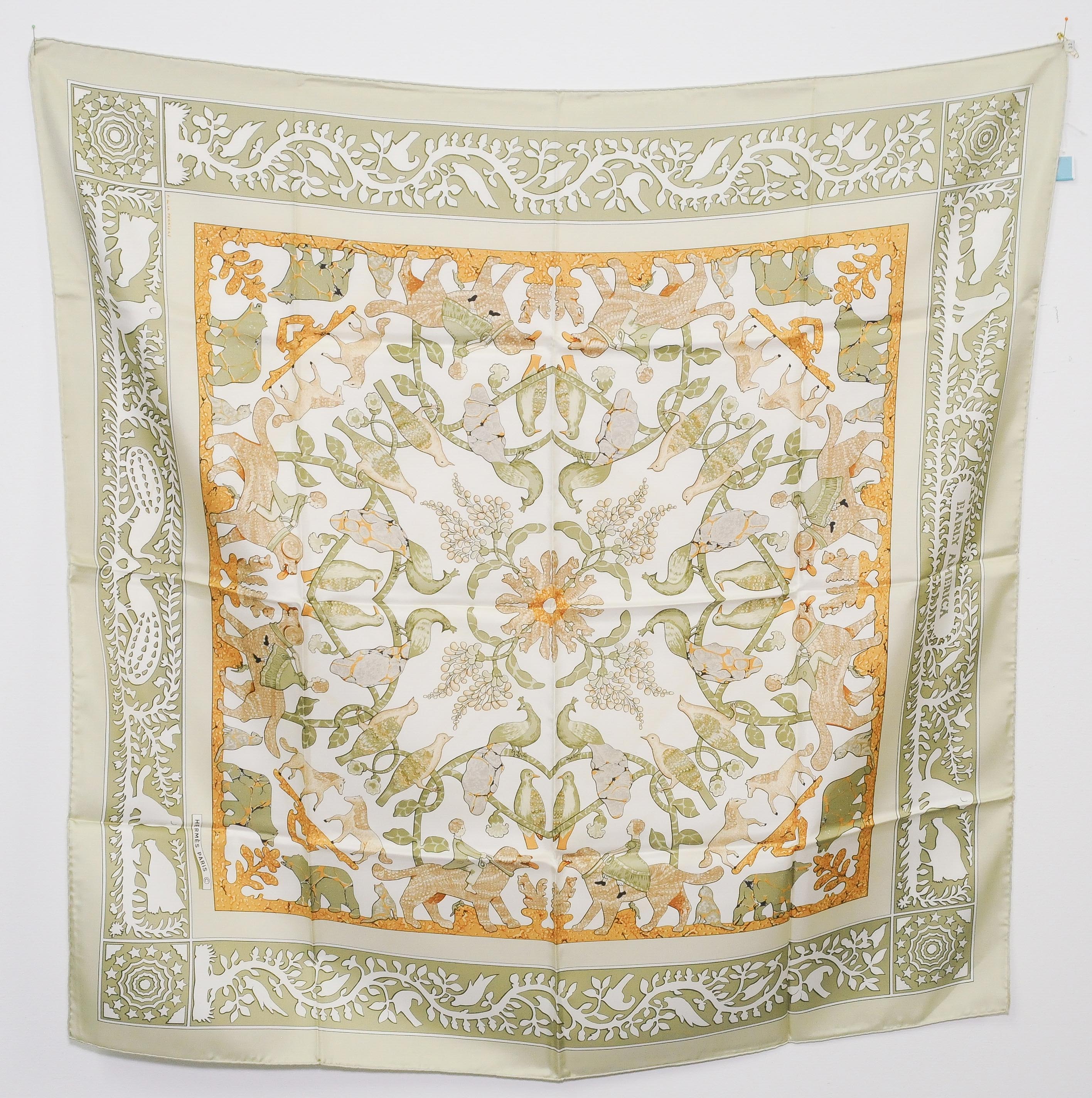 Seide. In Weissgrün. 89x89 cm. Guter Zustand.
