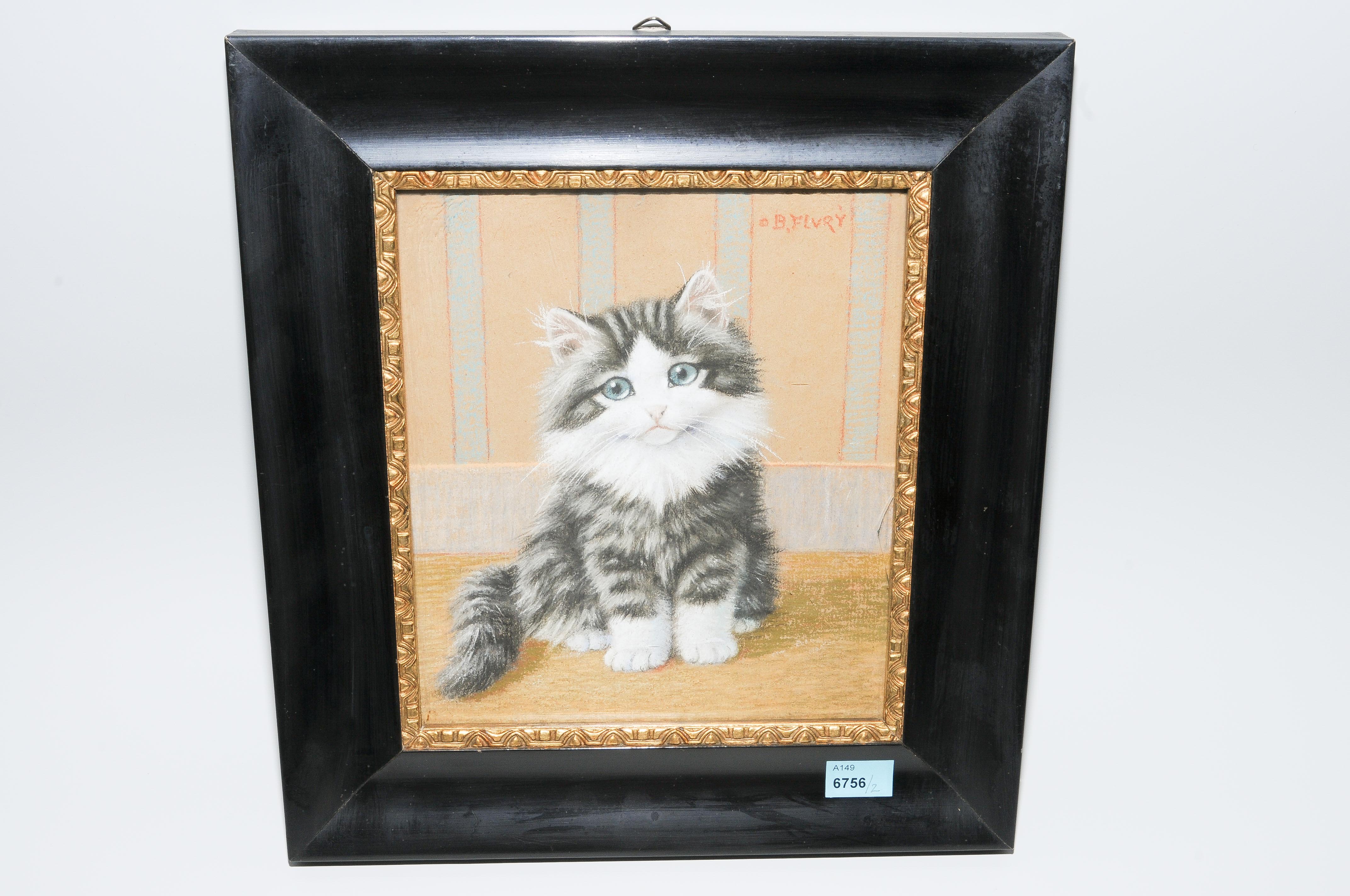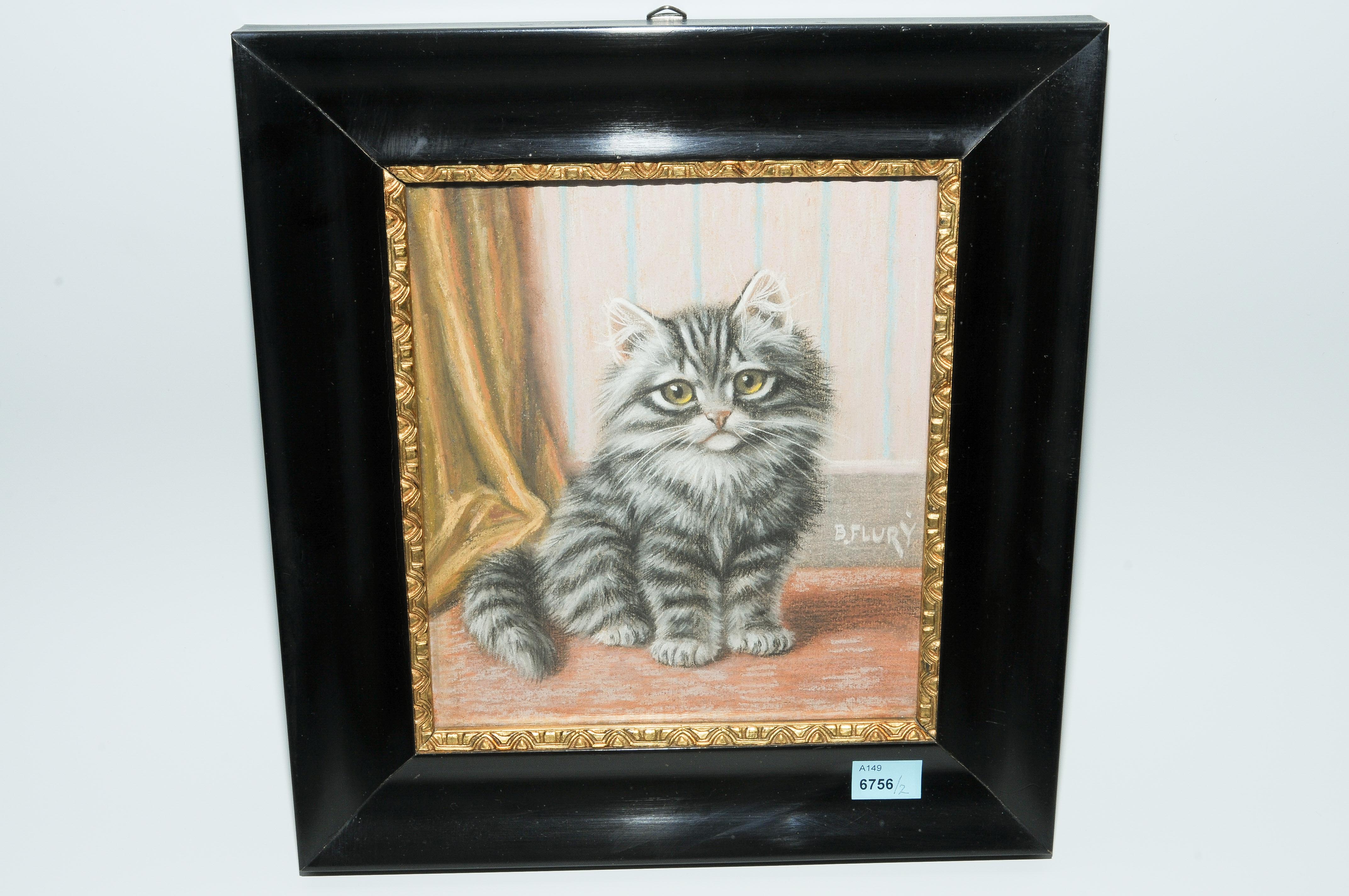 Gegenstücke. Zwei junge Tigerkatzen. 2 Aquarelle (mit Pastell) auf Karton, beide signiert "B.FLURY". Je ca. 19,5x17,5 cm. Beide gerahmt.
