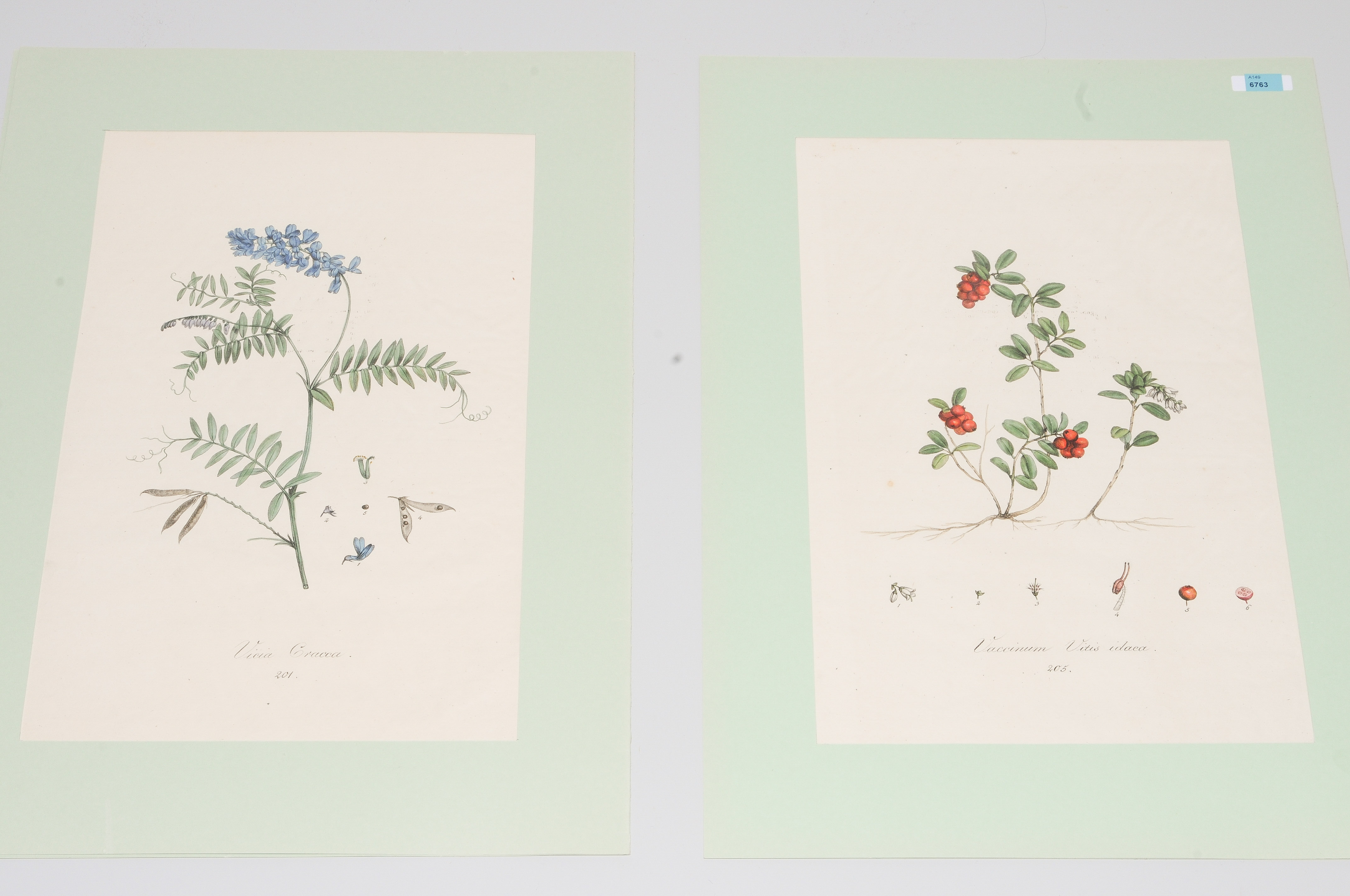 96 kolor. Lithographien aus: Franz.de P. von Schrank. Flora Monacensis seu plantae sponte circa Monachium nascentes. Bd., München: Joh.Nep. Mayrhofer, 1816. Alle Bll. ca. 50x38 cm (Blatt). Alle Bildbll. mit zugehörigen Textseiten, 53 Bll. unter Passepartouts. - Fragment der seltenen botanischen Prachtpublikation aus der Frühzeit der Lithographie mit Abbildungen der Pflanzen des süddeutschen Raums, insbesondere von München und Umgebung, die im Botanischen Garten München von v. Schrank seit 1809 zusammengetragen wurden.