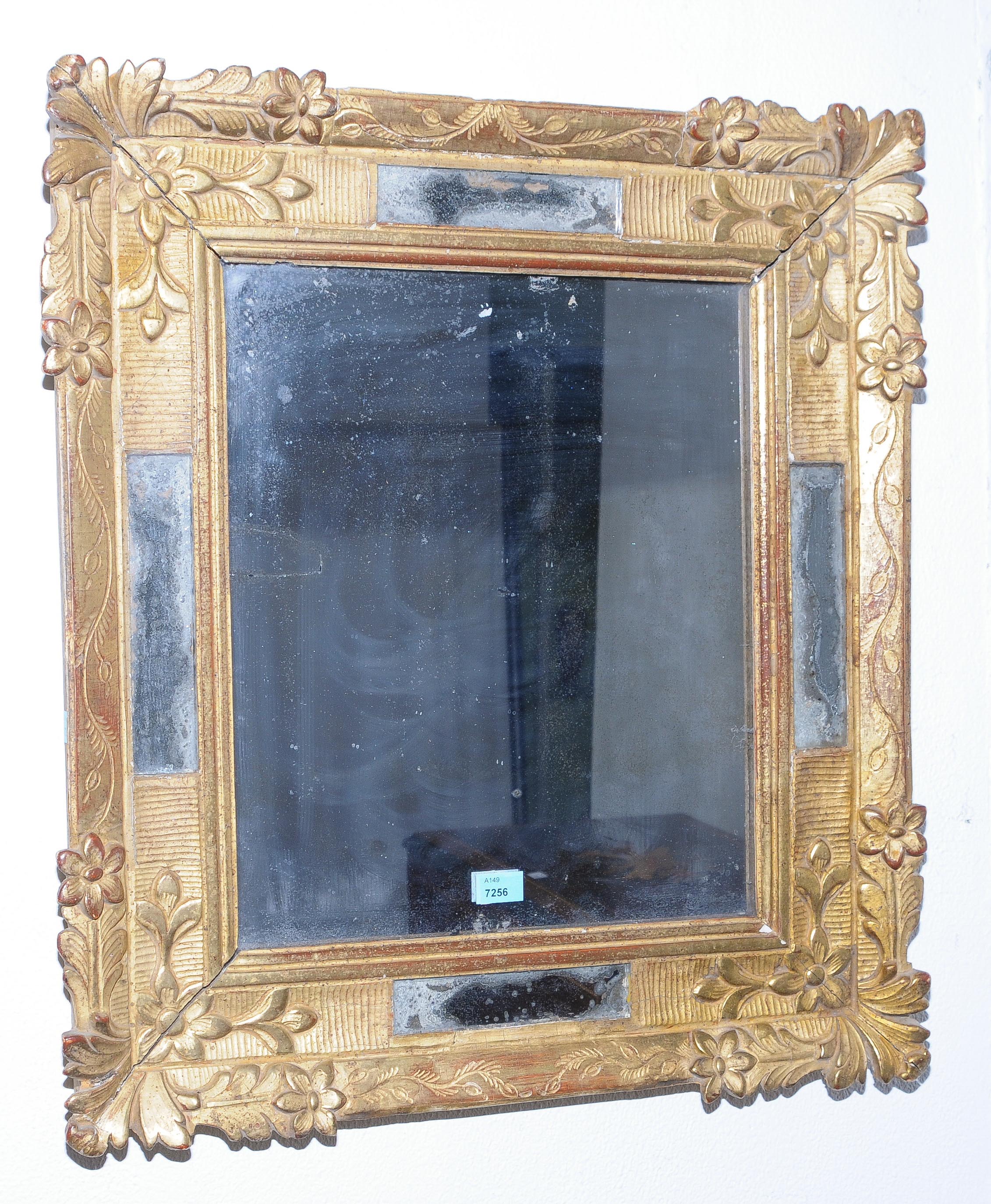 Barock 18/19. Jh. Holz, vergoldeter Fassung. Fassonierter Rahmen mit floralen Eckkartuschen. Gebrauchsspuren. 46x51 cm.