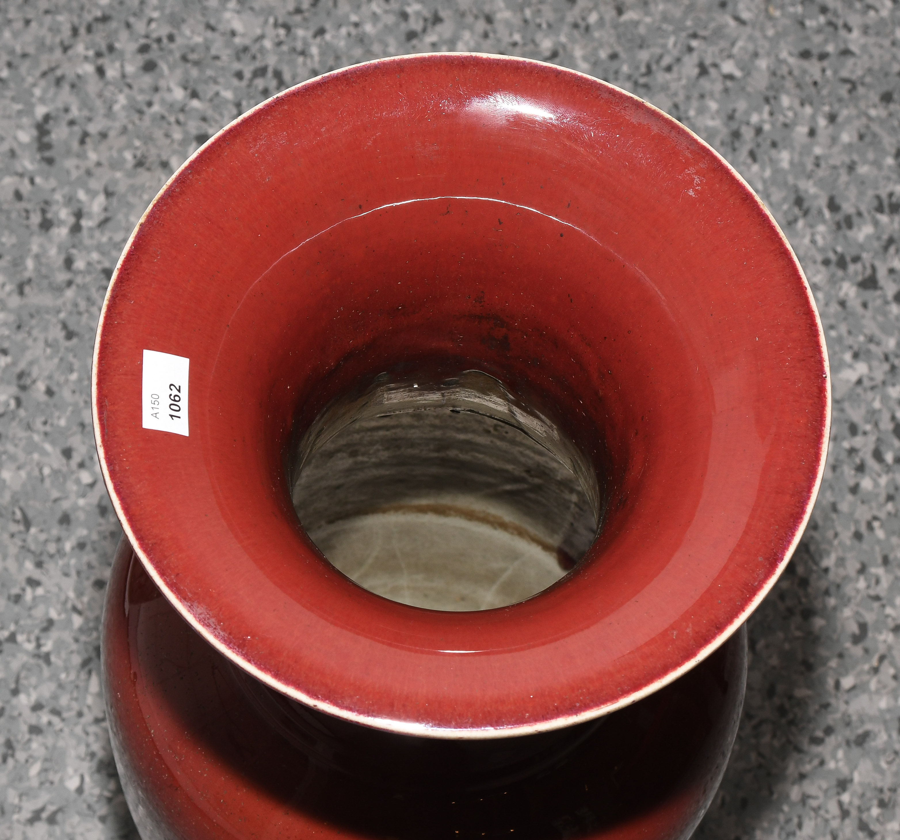 China, 19.Jh. Steinzeug. Sang-de-Boeuf-Glasur. Balusterform. H 58 cm. - Haarrisse am Boden.