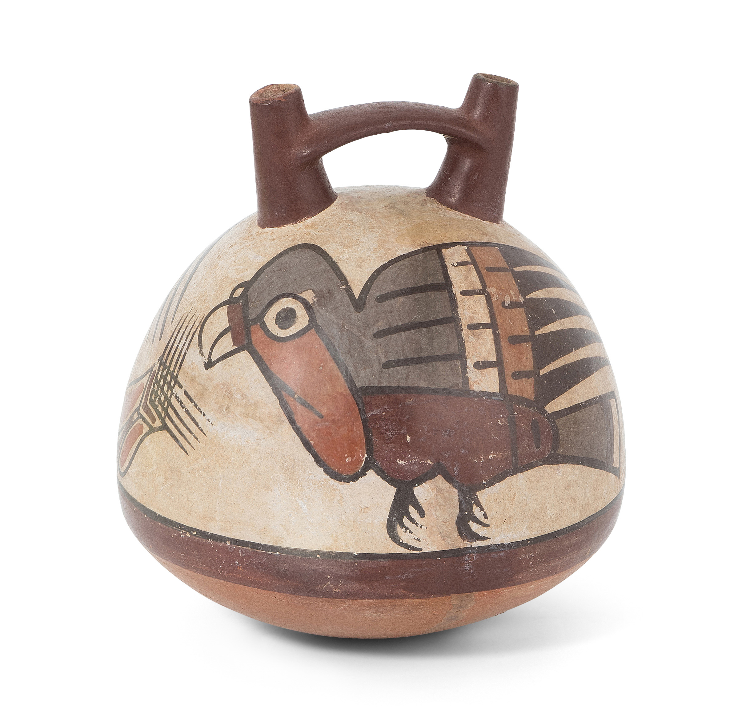 Nazca, Peru, um 350–600. Rötlicher Ton mit polychromer Bemalung. Zwei Vögel. H 15 cm. - Fachmännisch restauriert.