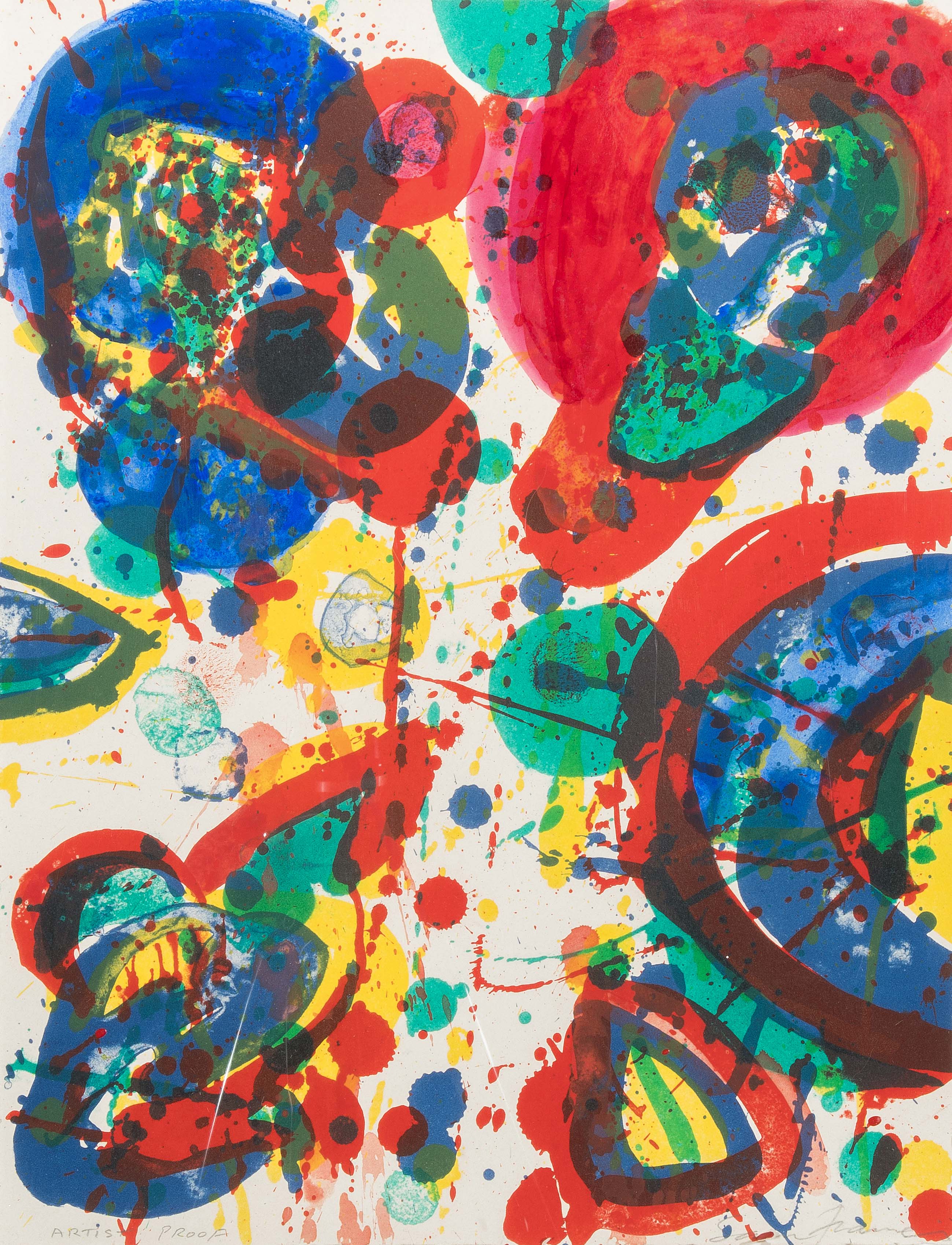 "Firework". 1963. Farblithographie mit Gouache. Artist Proof. Unten rechts in Bleistift signiert. Blattgrösse 34x26,2 cm. Gerahmt. -Blatt minimst gebräunt. Ränder und Ecken bestossen mit kleinem Einriss am unteren Rand. Verso partiell an Rückplatte montiert.