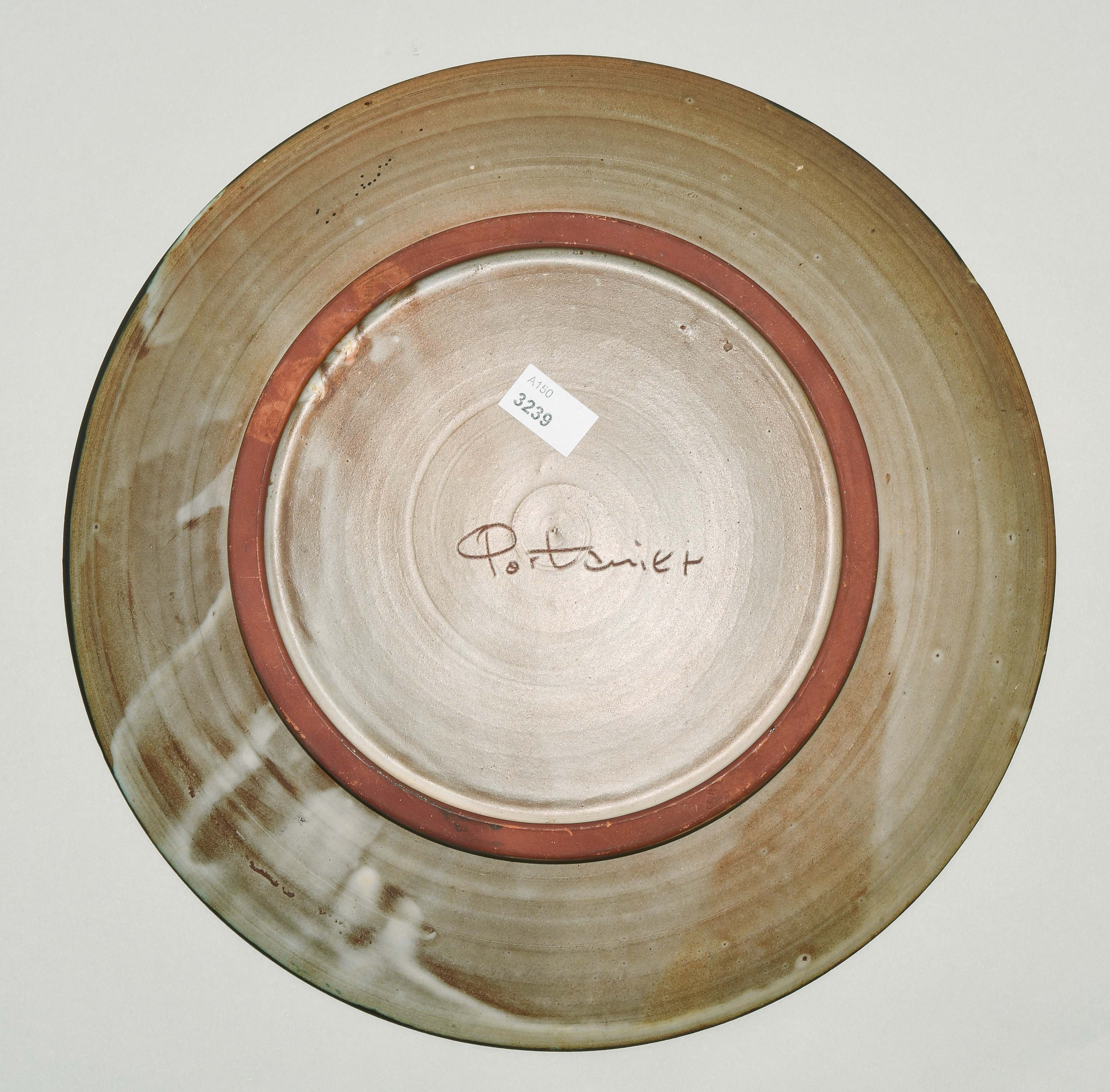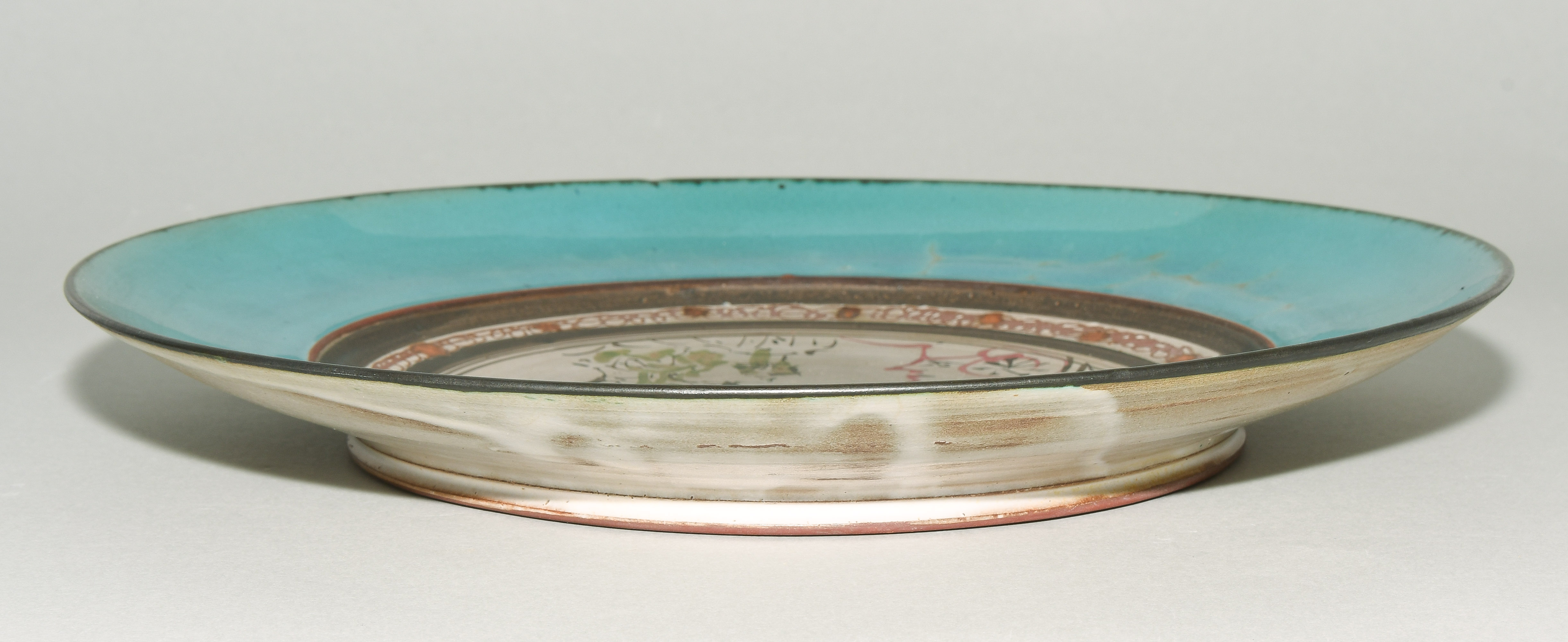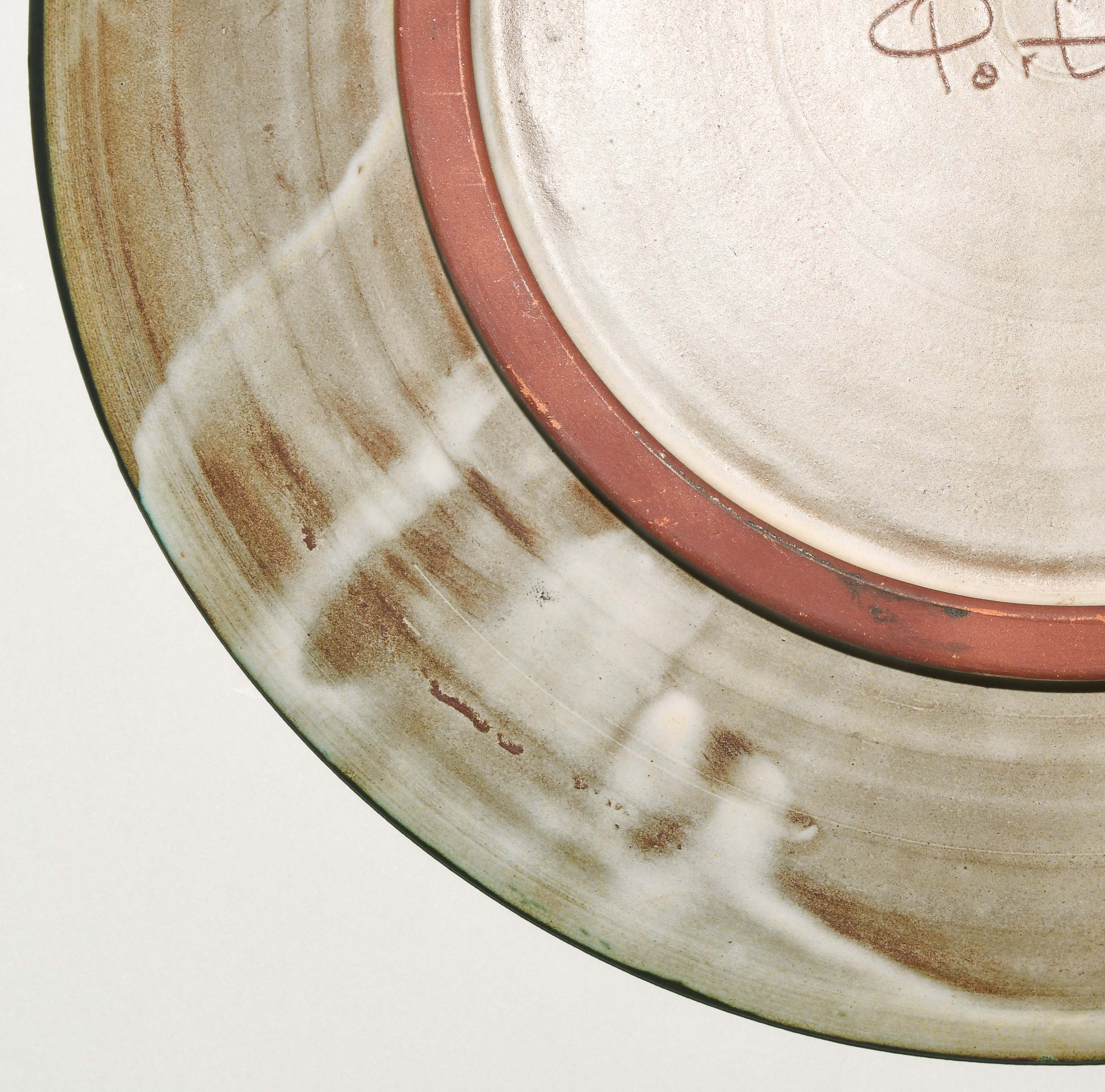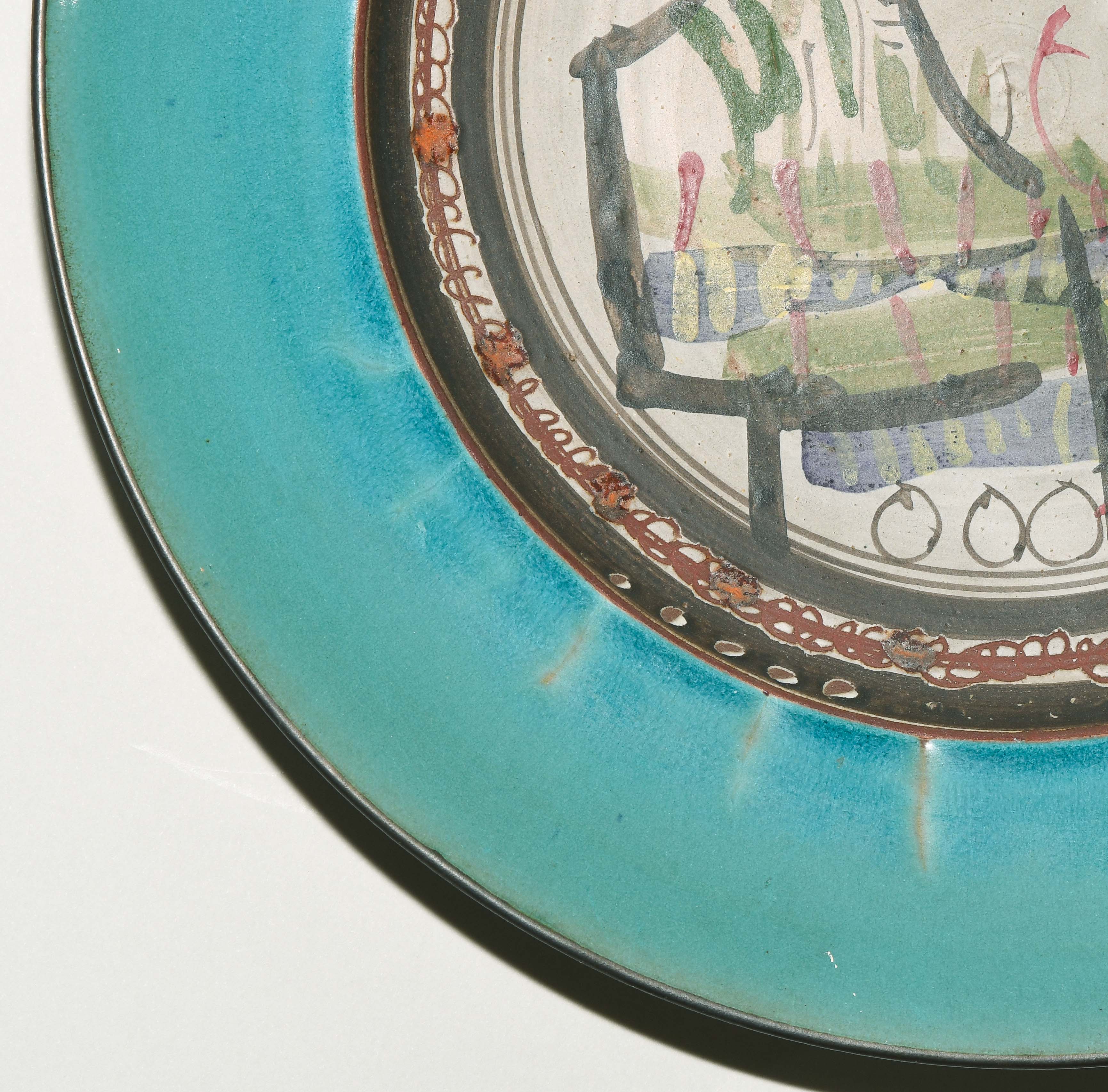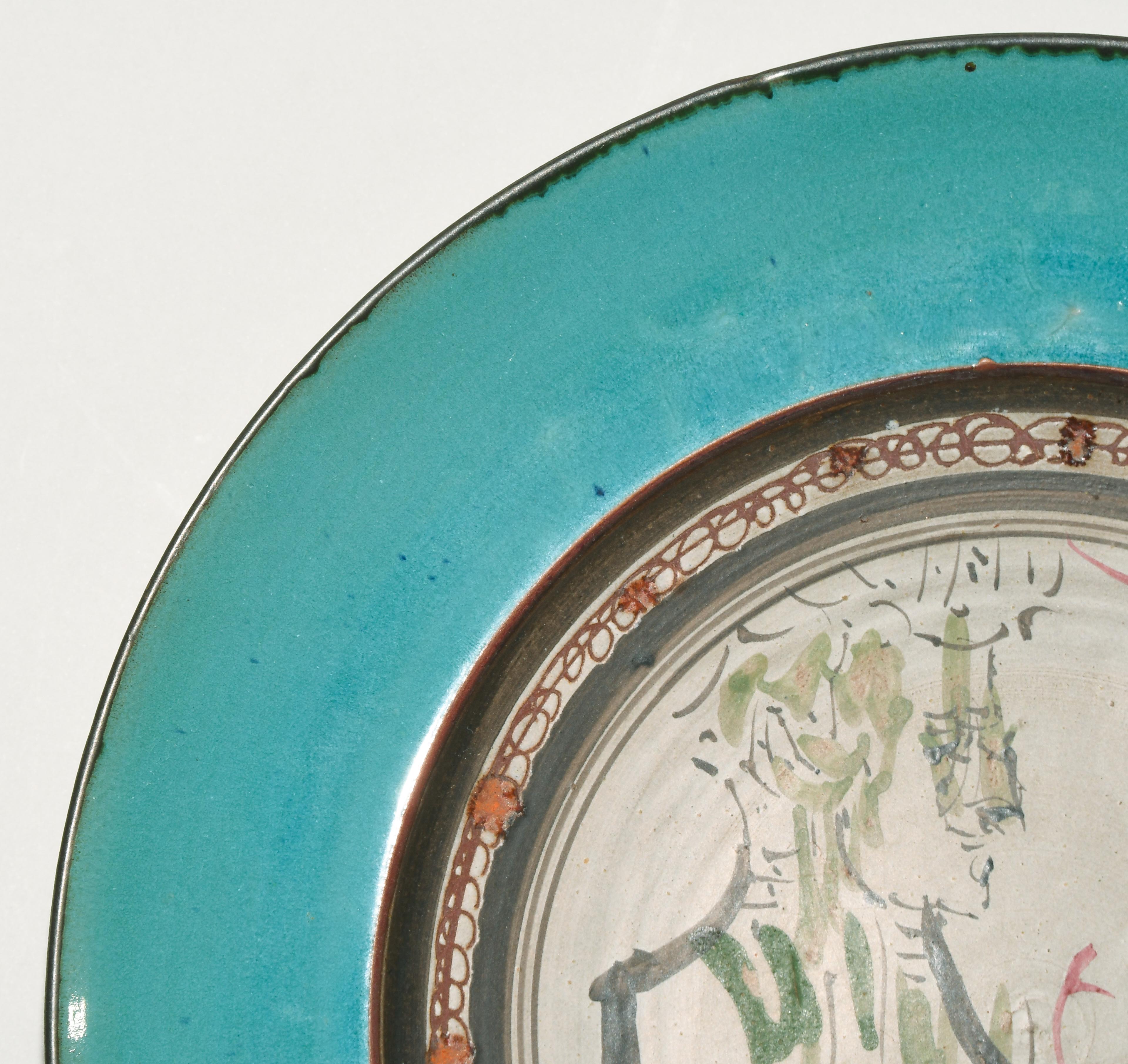 Frau vor einer Büste. Keramikteller, bemalt und glasiert. D 29 cm. -Minimst berieben.