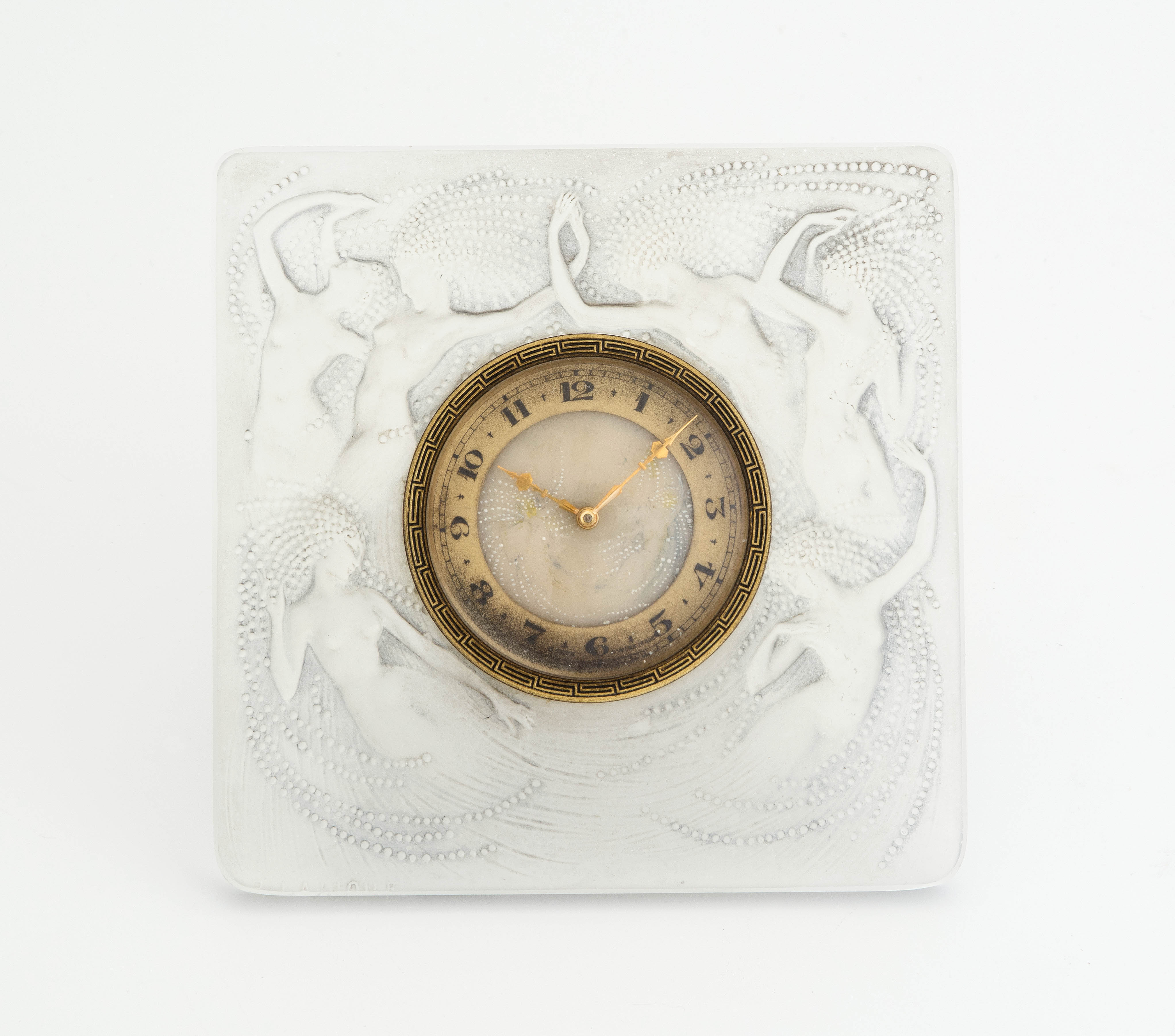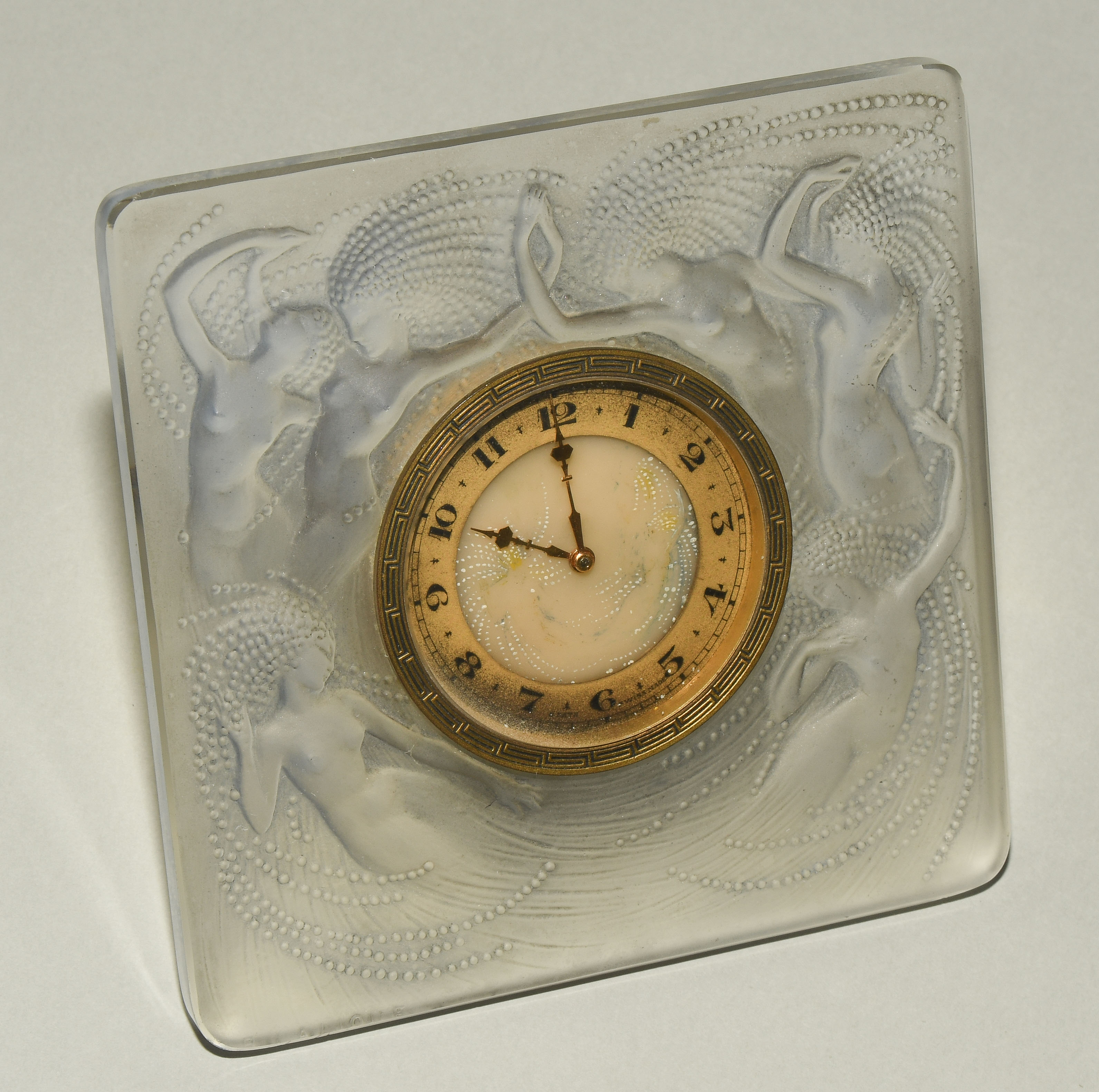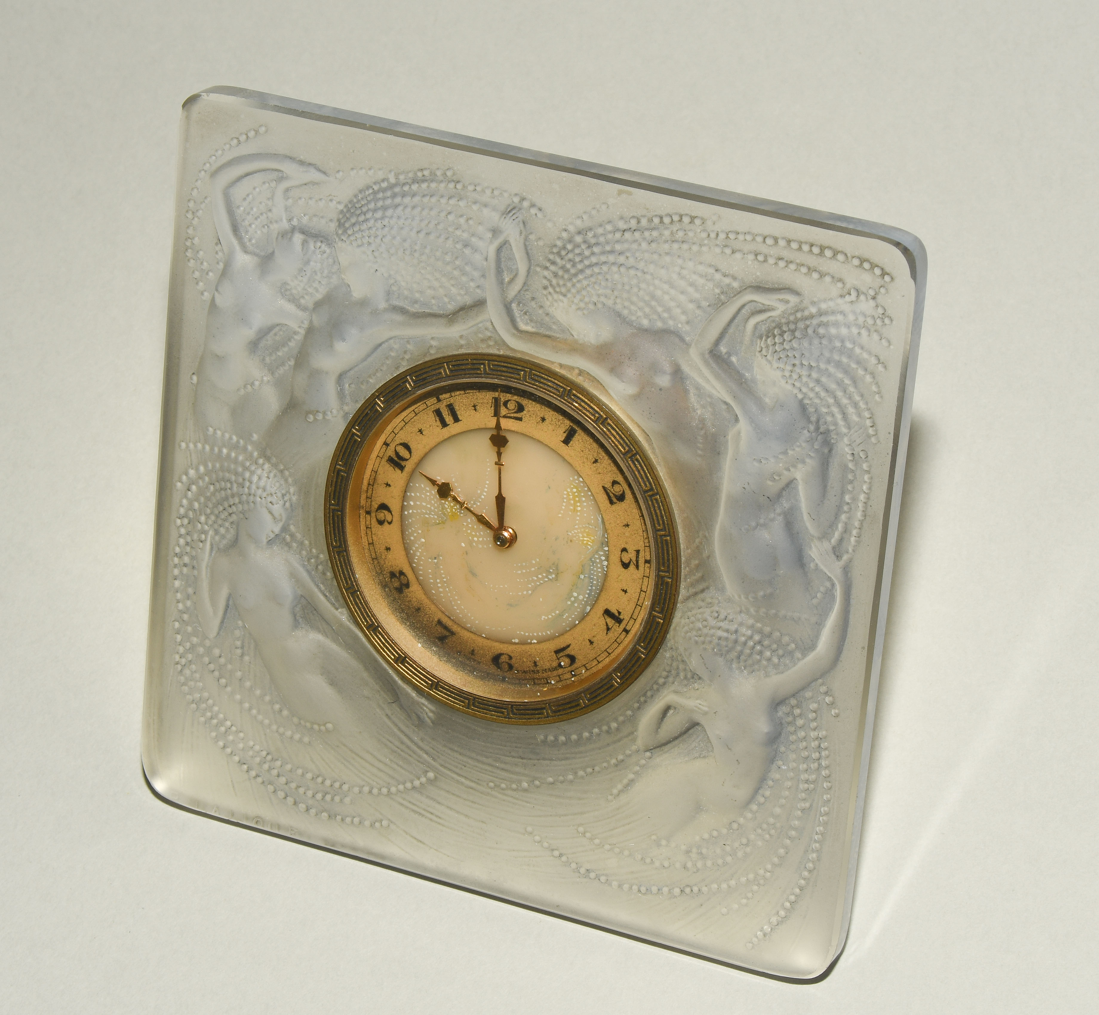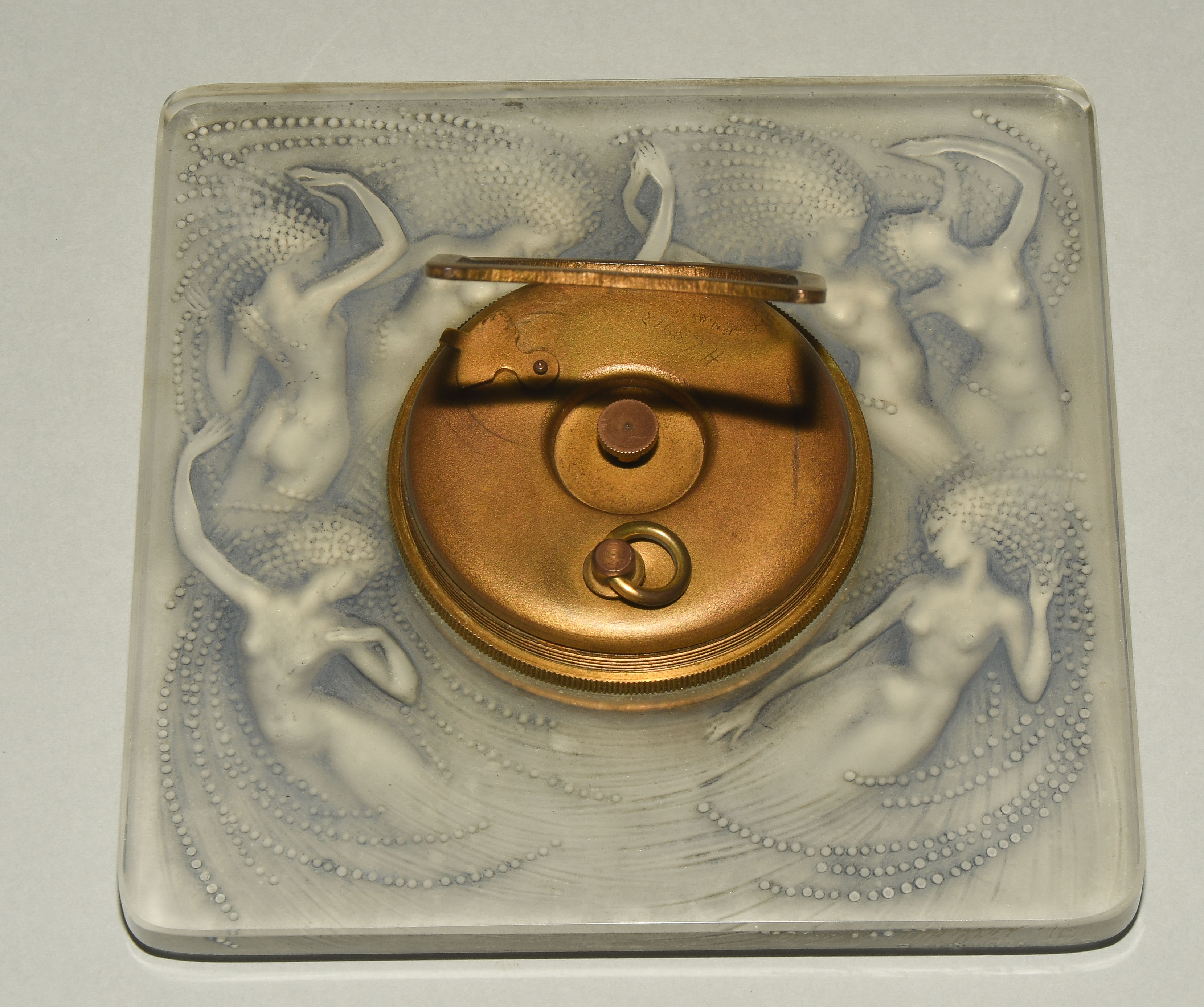 Entwurf: 1926; Ausführung bis 1947. Wingen-sur-Moder. Dekor "Naiades". Farbloses opalescentes Glas, formgepresst, Reliefdekor mit Najaden. Bezeichnet: R. LALIQUE. H 11,3 cm.