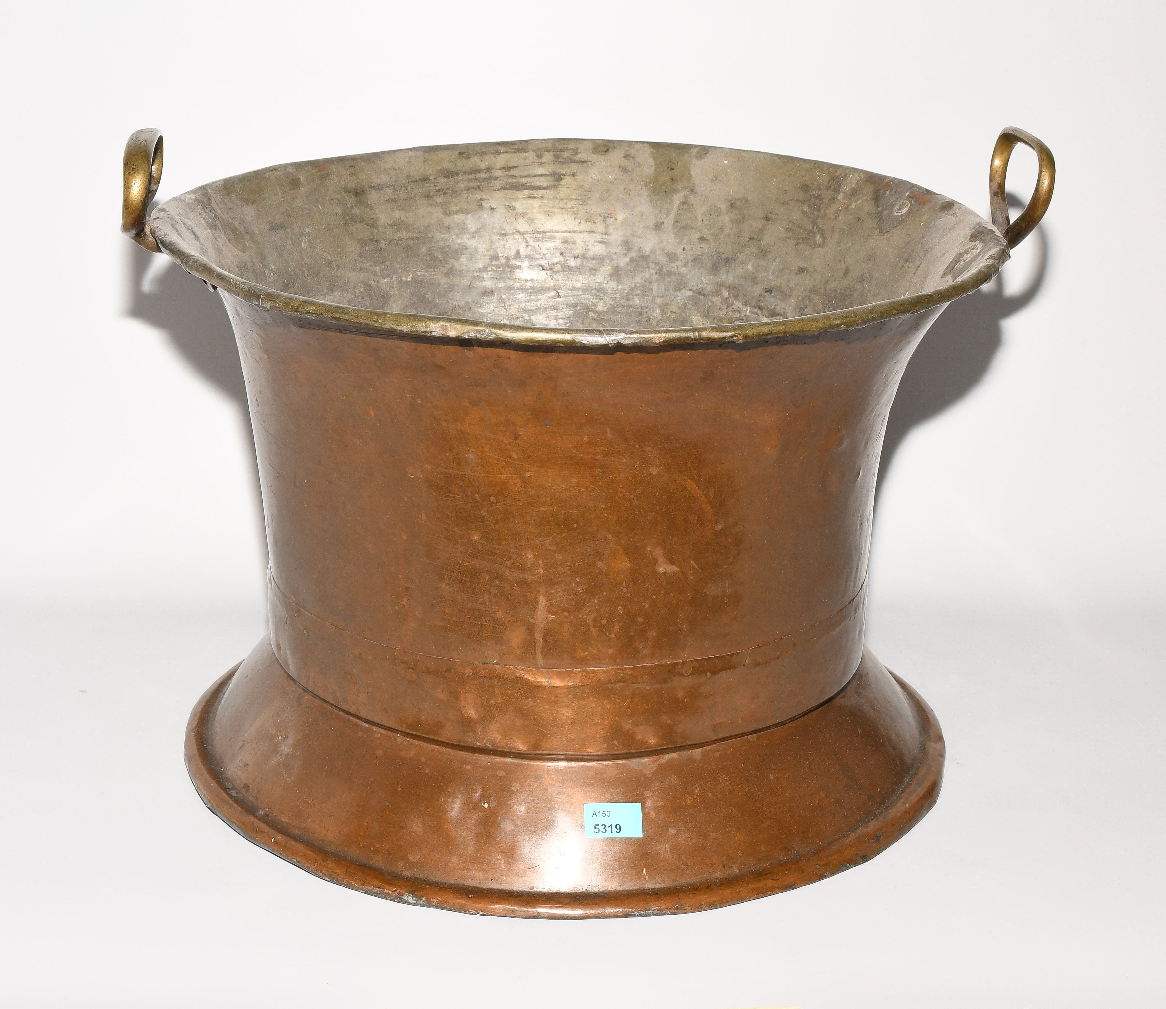 19.Jh. Kupfer, innen verzinnt. Rundform mit 2 seitlichen Henkeln. D 39 cm.