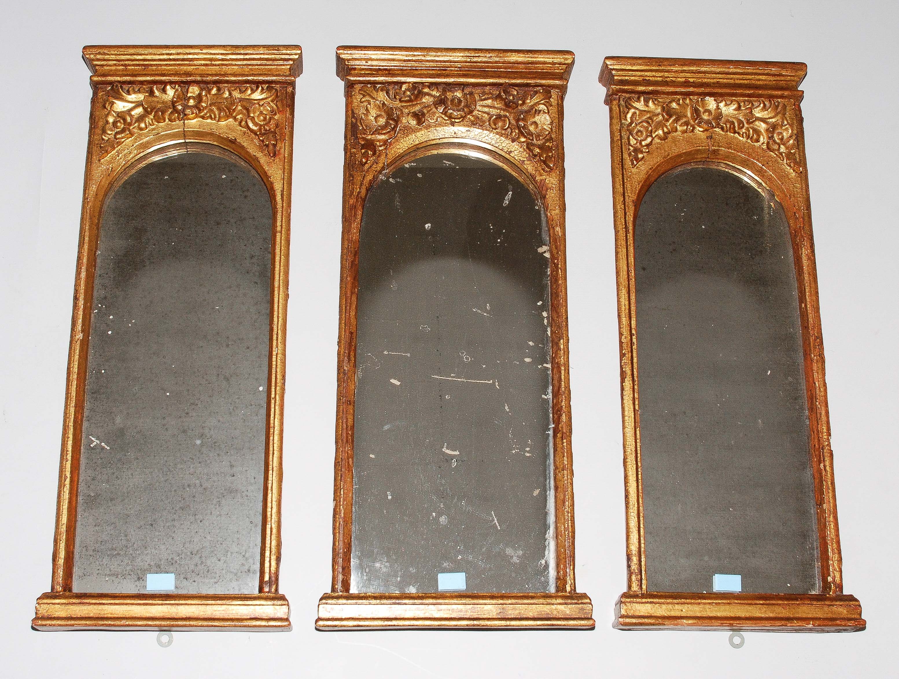 Um 1900. Holz, geschnitzt und vergoldet. Hochrechteckform mit reliefiertem Blütendekor. H 61,5 cm.