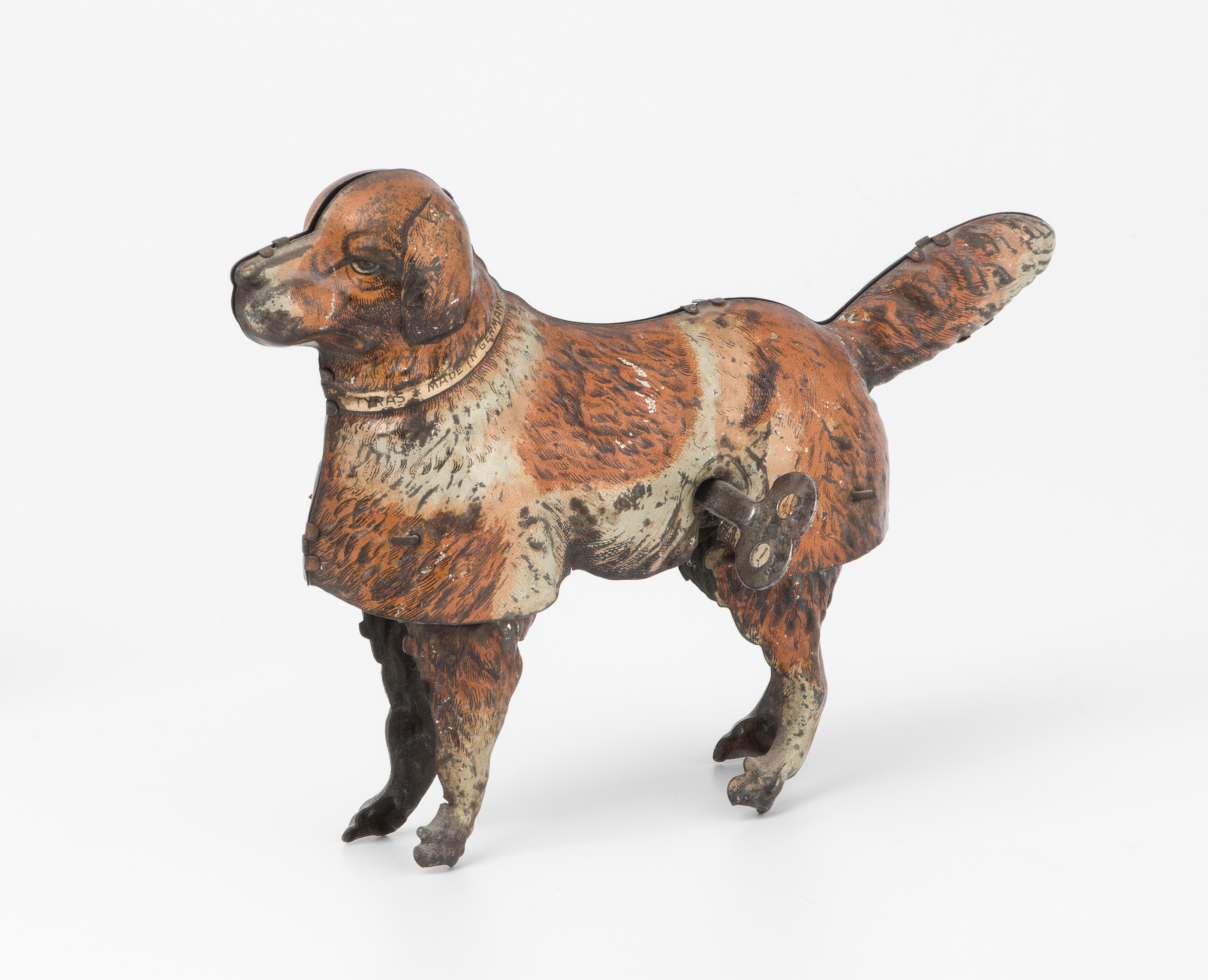 Deutschland, um 1910. Blech, farbig lithographiert. EPL 432. Schreitender "Leonberger". Uhrwerkantrieb. L 16,5 cm.