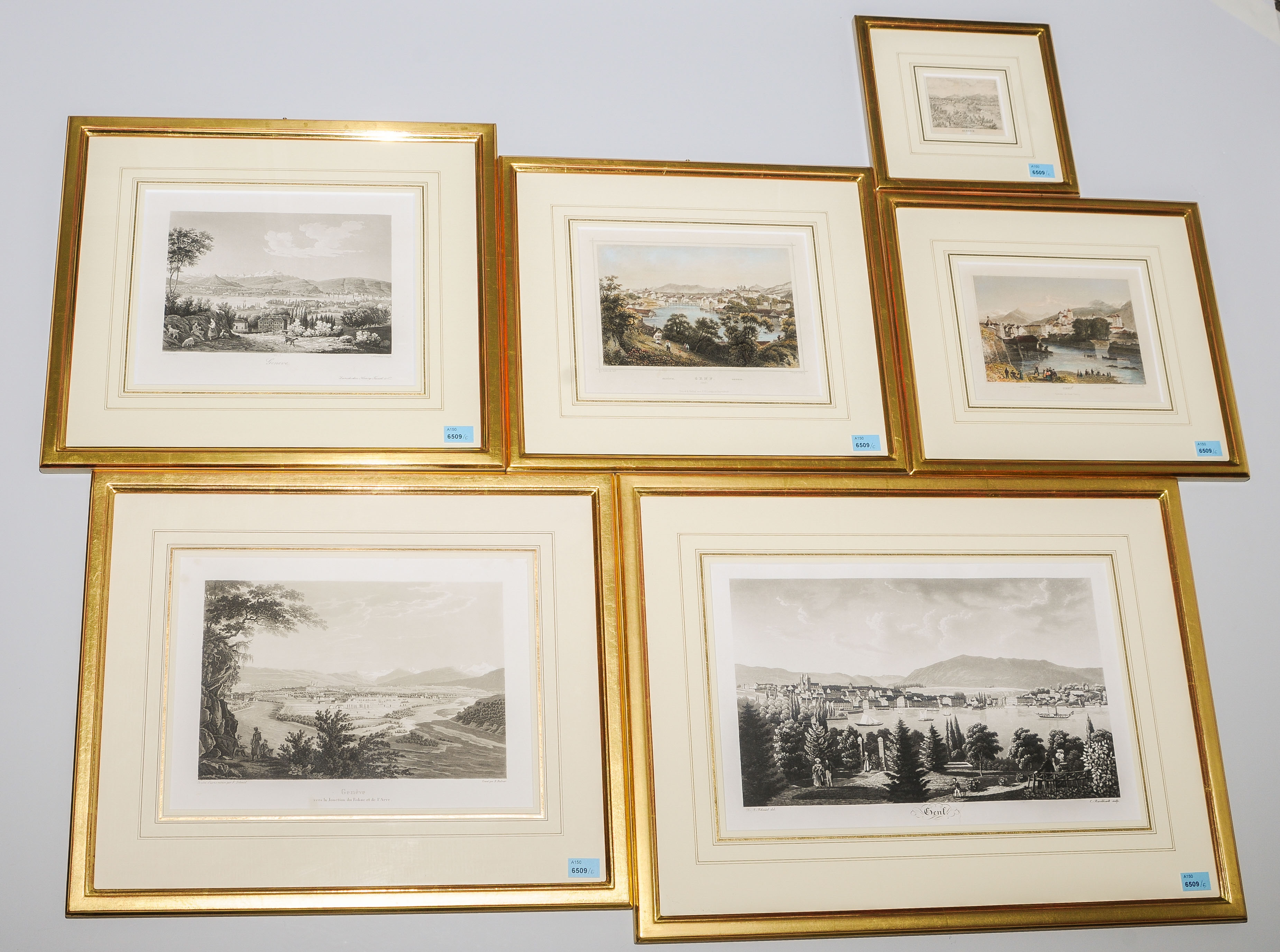 Sammelnummer mit 3 Aquatintas, 2 kol. Stahstichen u. 1 Federlithographie v. J.B. Isenring, R. Bodmer, P.J. Arter, L. Rohbock, H. Winkles u. R. Nick, um 1835/65. 5,5x7 cm bis 19,2x32 cm. Zus. 6 Bll. Alle Bll. gerahmt.