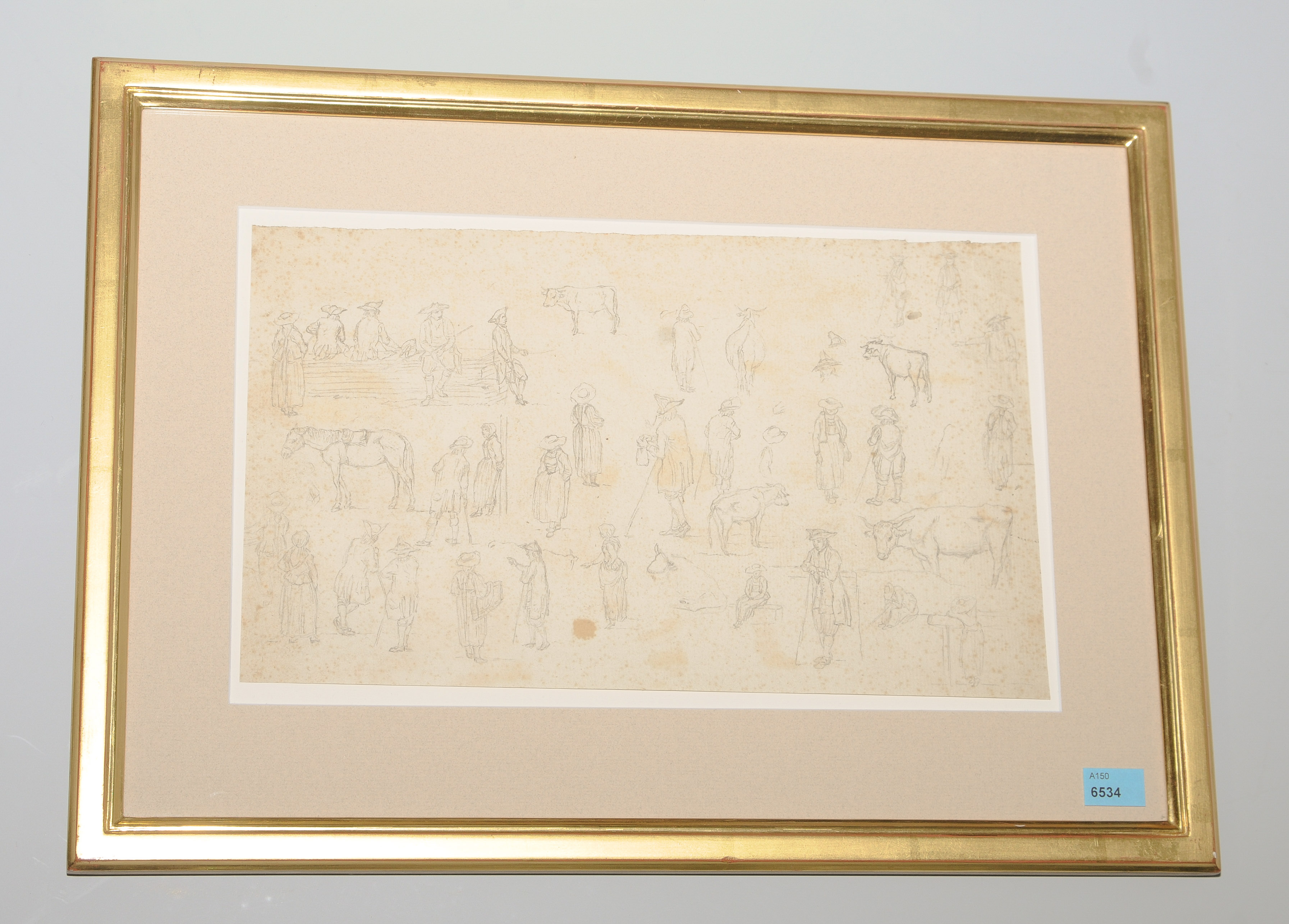 Figurenstudie. Bleistiftzeichnung von Johann Joseph Hartmann (1753–1830), um 1800. 19x32 cm. Gerahmt.