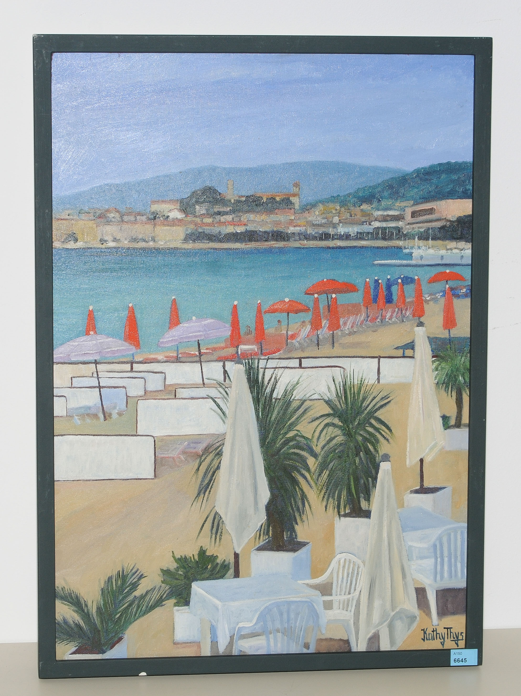 Am Strand. Öl auf Leinwand. Unten rechts signiert. 55x38,5 cm.